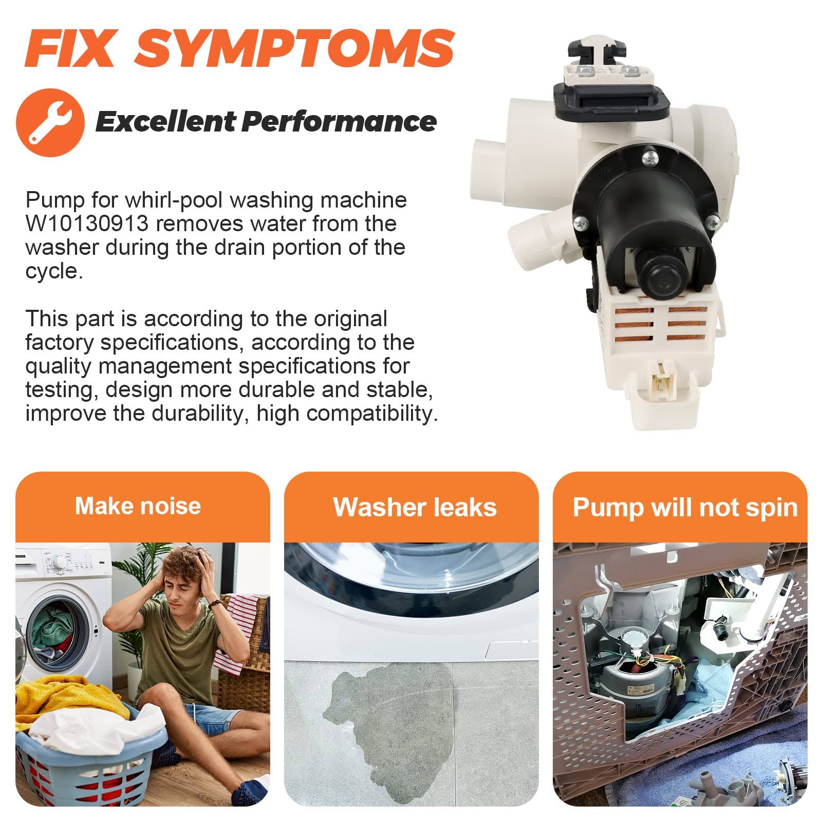Beaquicy W10130913 Washer Drain Pump Assembly OEM replaces Washing Machine 8540024, W10183434, Wpw10730972, PS1960402 for Whirlpool