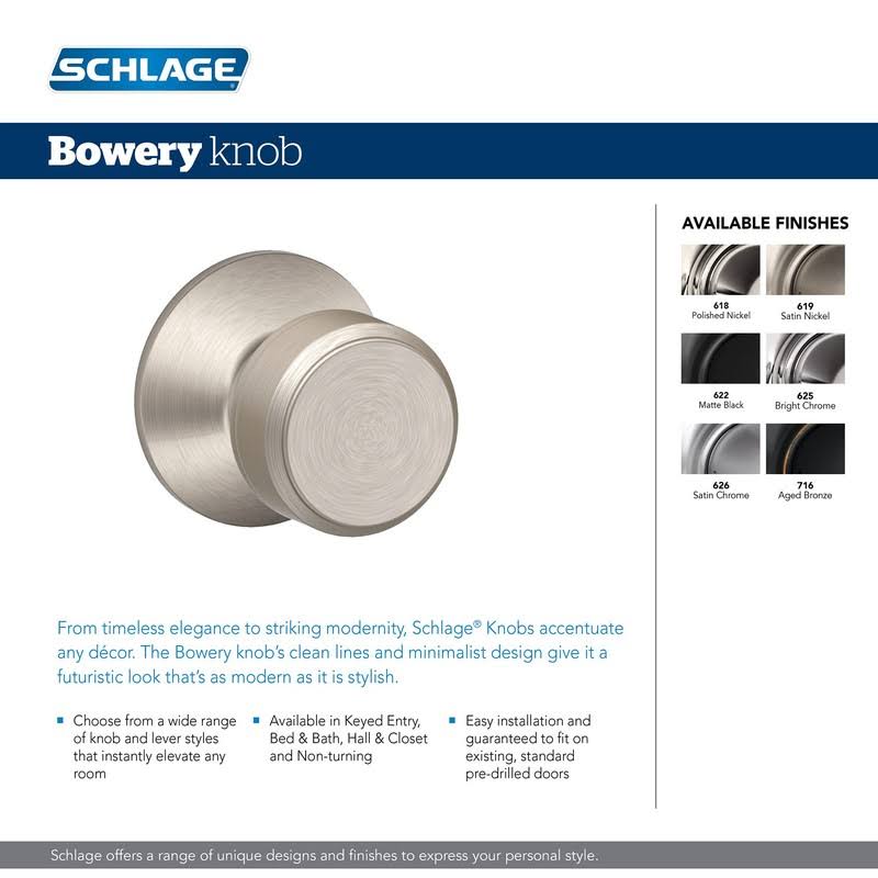 Schlage F40-BWE Bowery Privacy Door Knob Set- Matte Black
