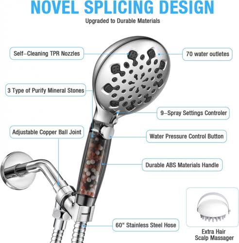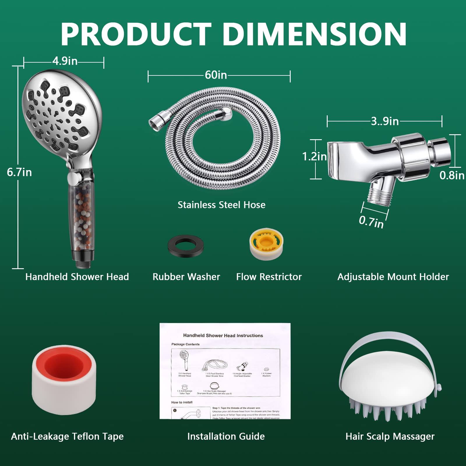 lhdzga Filtered Shower Head,11 Functions High Pressure Shower Head with handheld,detachable Filtered Showerhead for Hard Wate