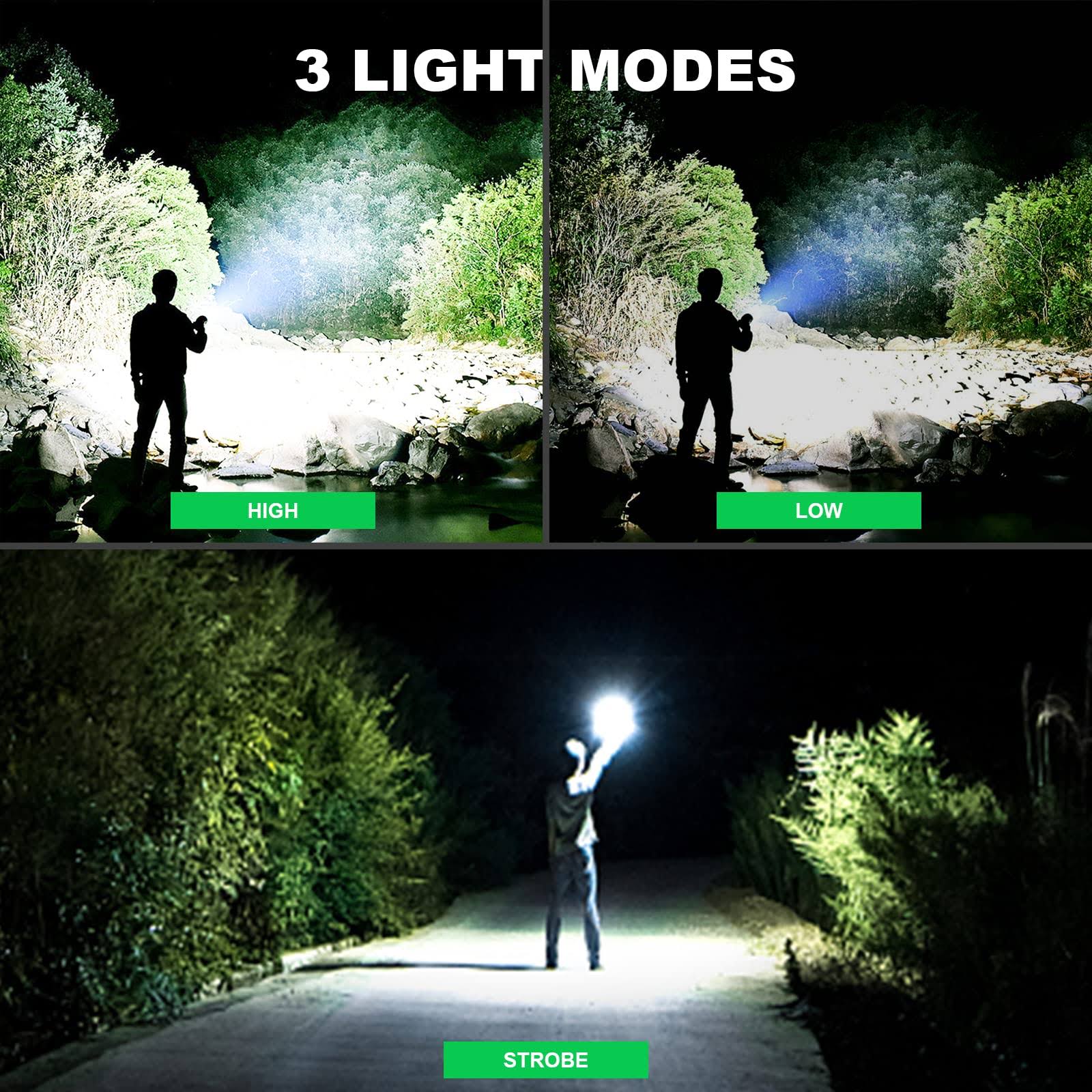 Rechargeable Flashlights 900,000 High Lumens- 2 Pack, 12 Hours Powerful LED Flash Light with 3 Modes, Super Bright & Ipx5 Waterproof Torch for
