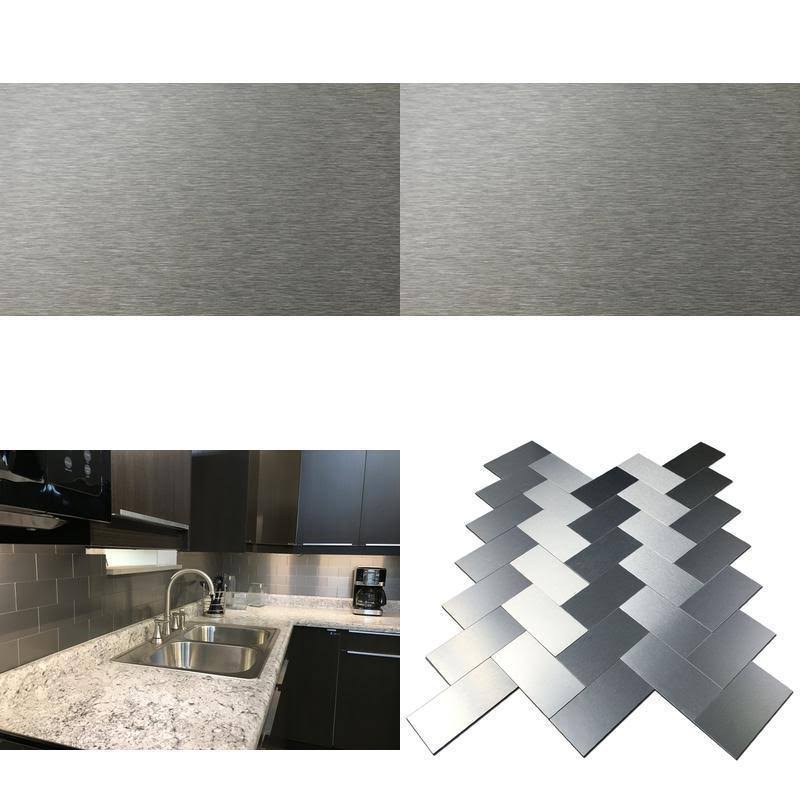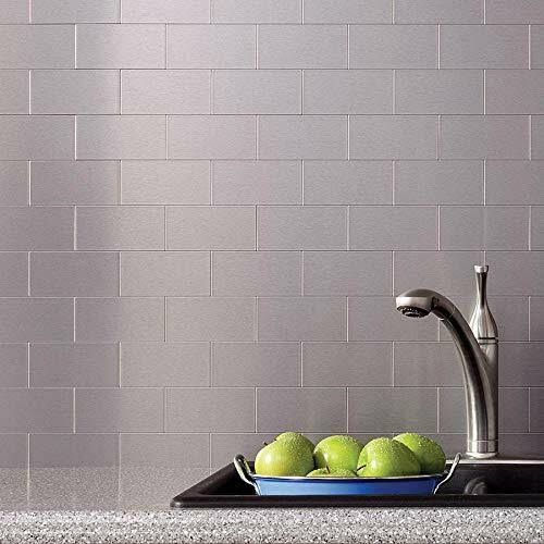 Art3d 32-Piece Peel and Stick Backsplash Tiles Brushed Metal Subway