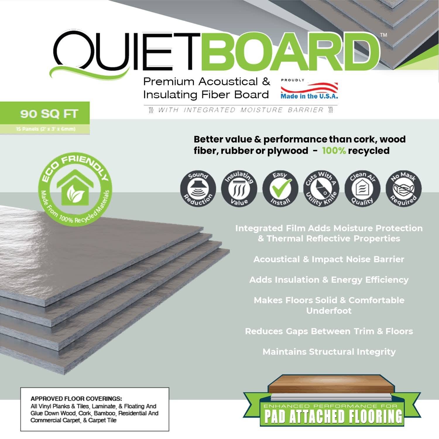 QuietBoard 90 Sq. ft. 2 ft. x 3 ft. Premium Acoustical and Insulating Fiber Floor Underlayment with Integrated Moisture Barrier
