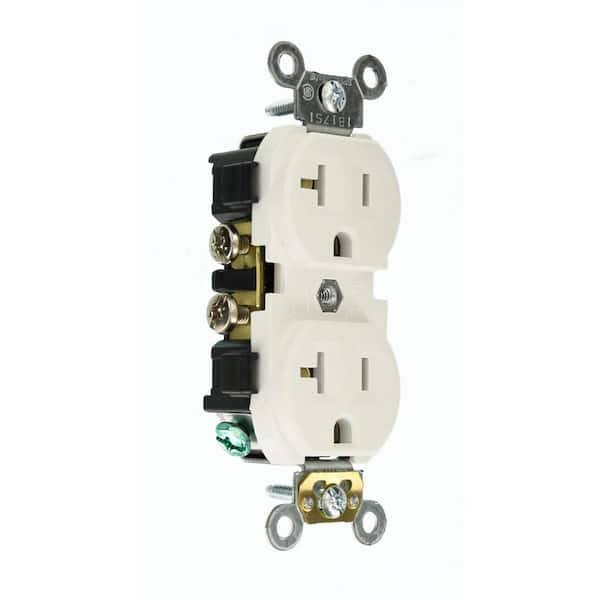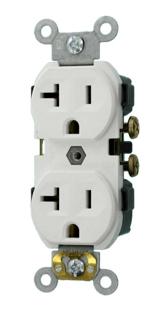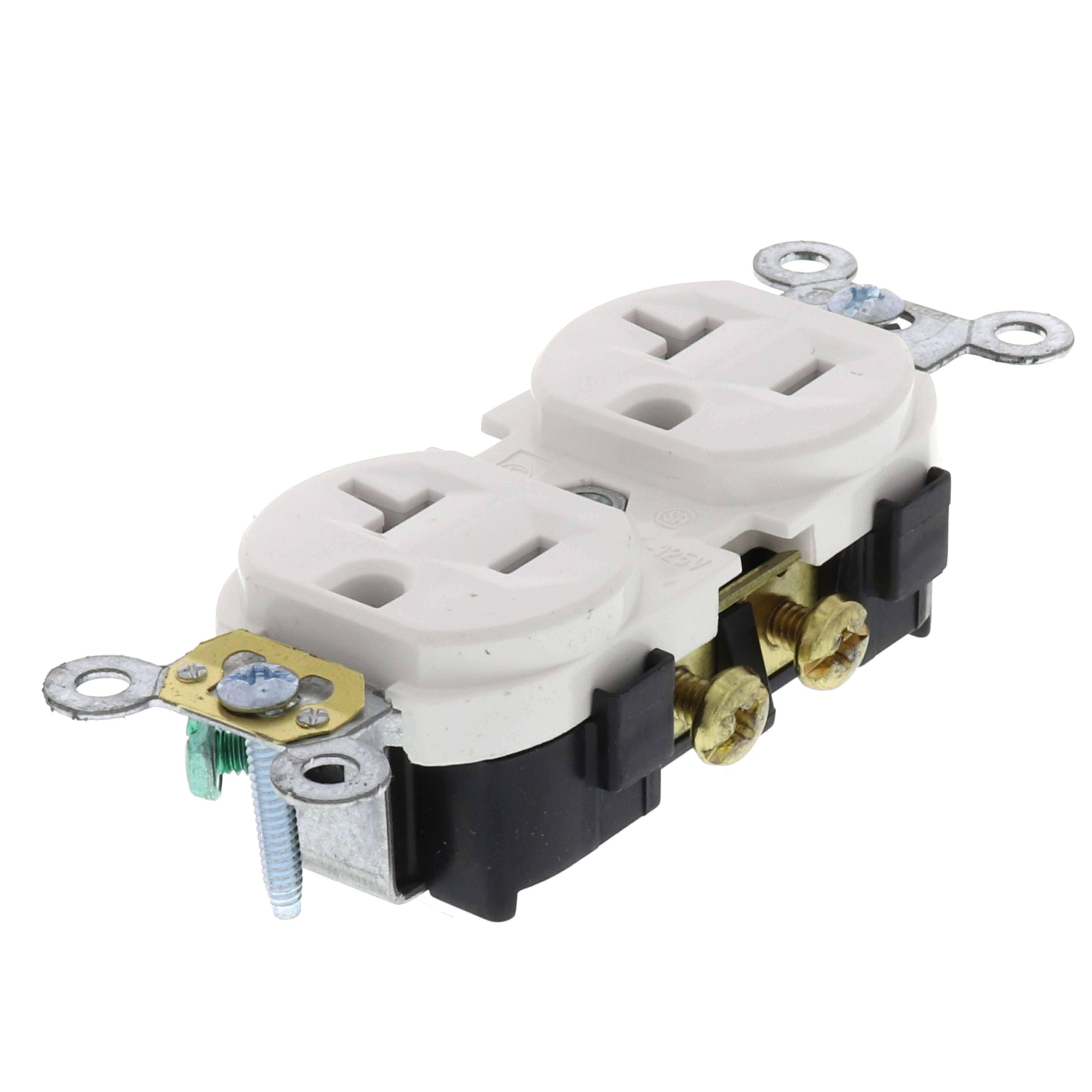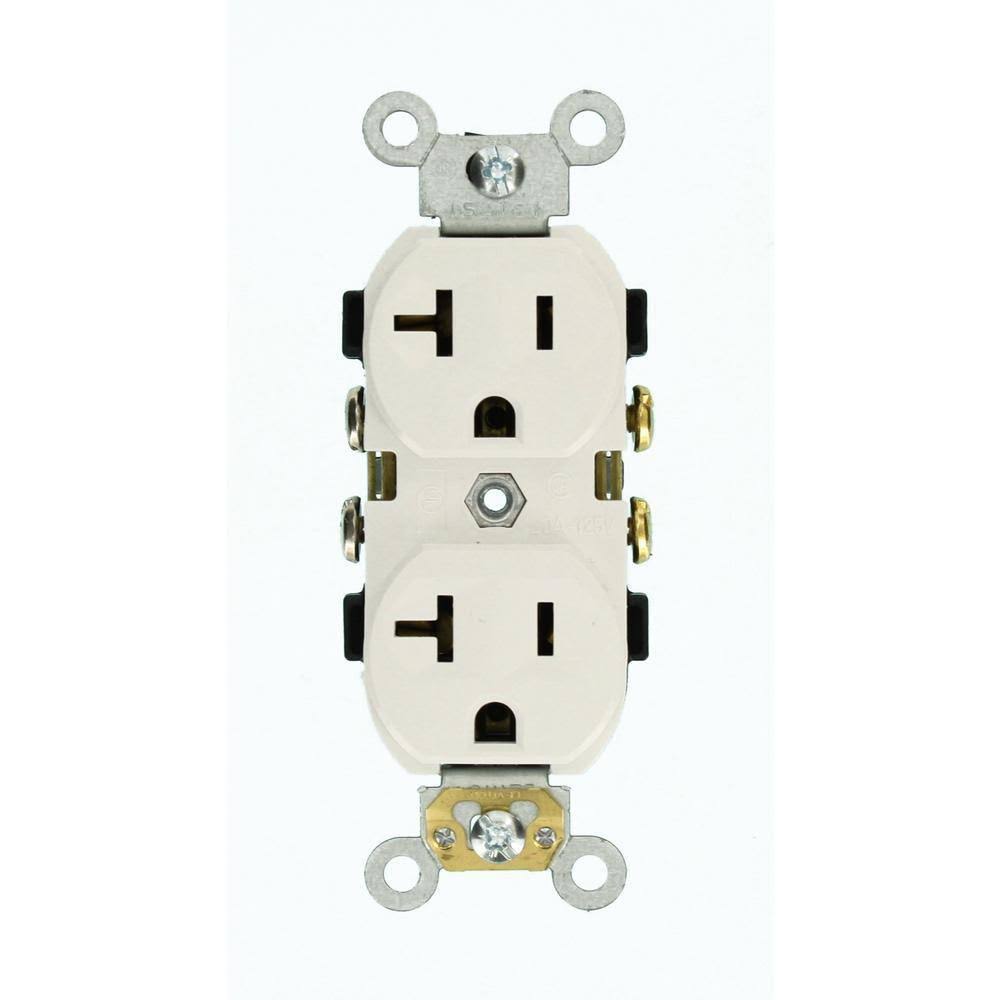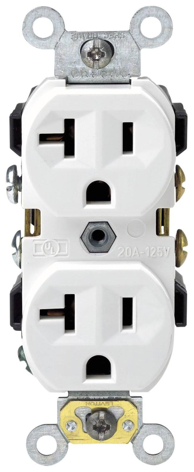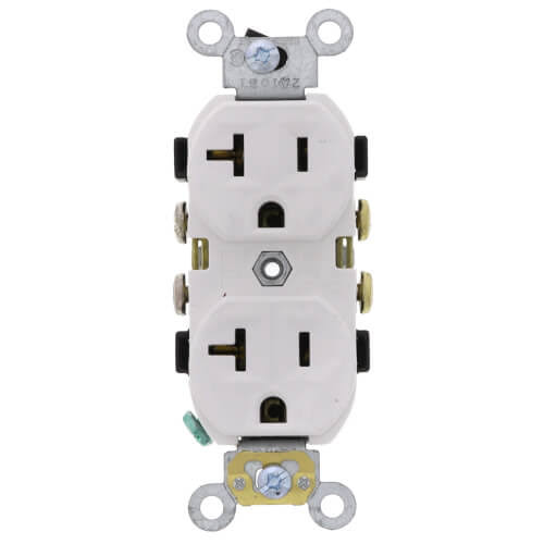Leviton CR20-W 20-Amp, 125-Volt, Narrow Body Duplex Receptacle, Straight Blade, Commercial Grade, Self Grounding, 10-Pack, White, 10 Piece