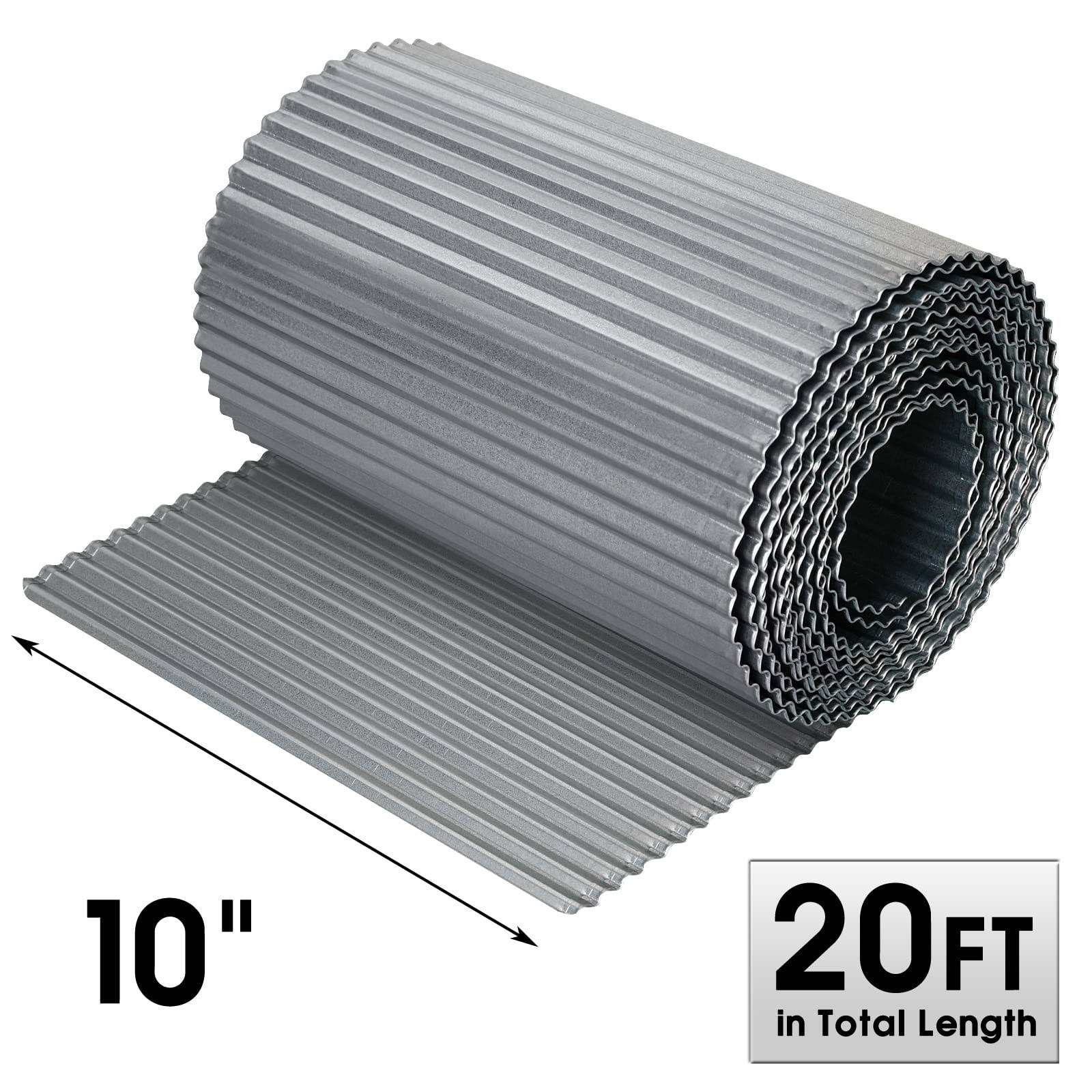 Worth Garden 20 ft. x 10 in. Galvanized Steel Landscape Lawn Corrugated Edging, Silver