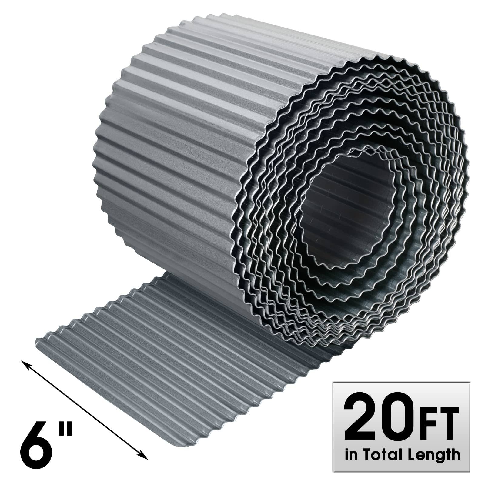 Worth Garden 20 ft. x 6 in. Galvanized Steel Landscape Lawn Corrugated Edging, Silver