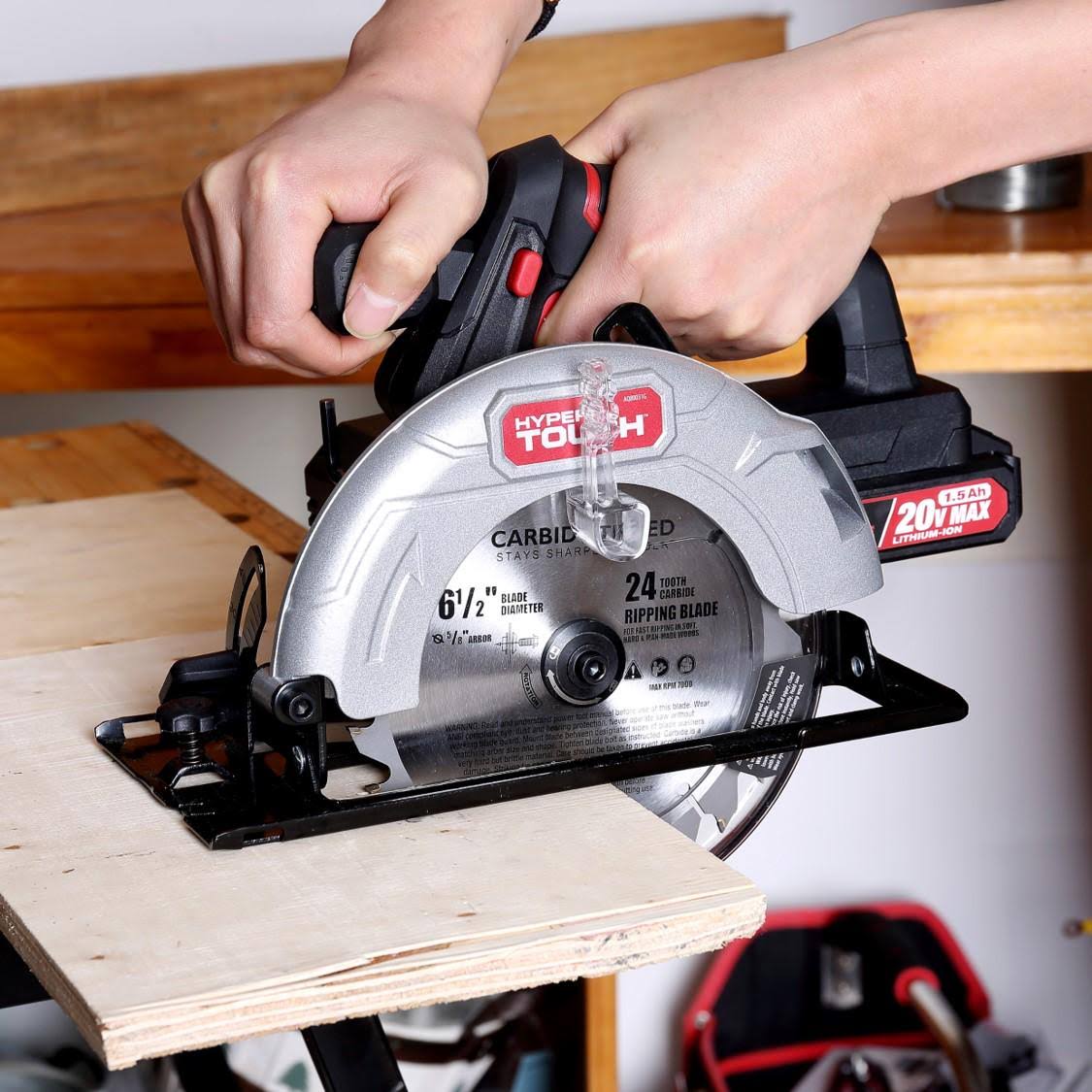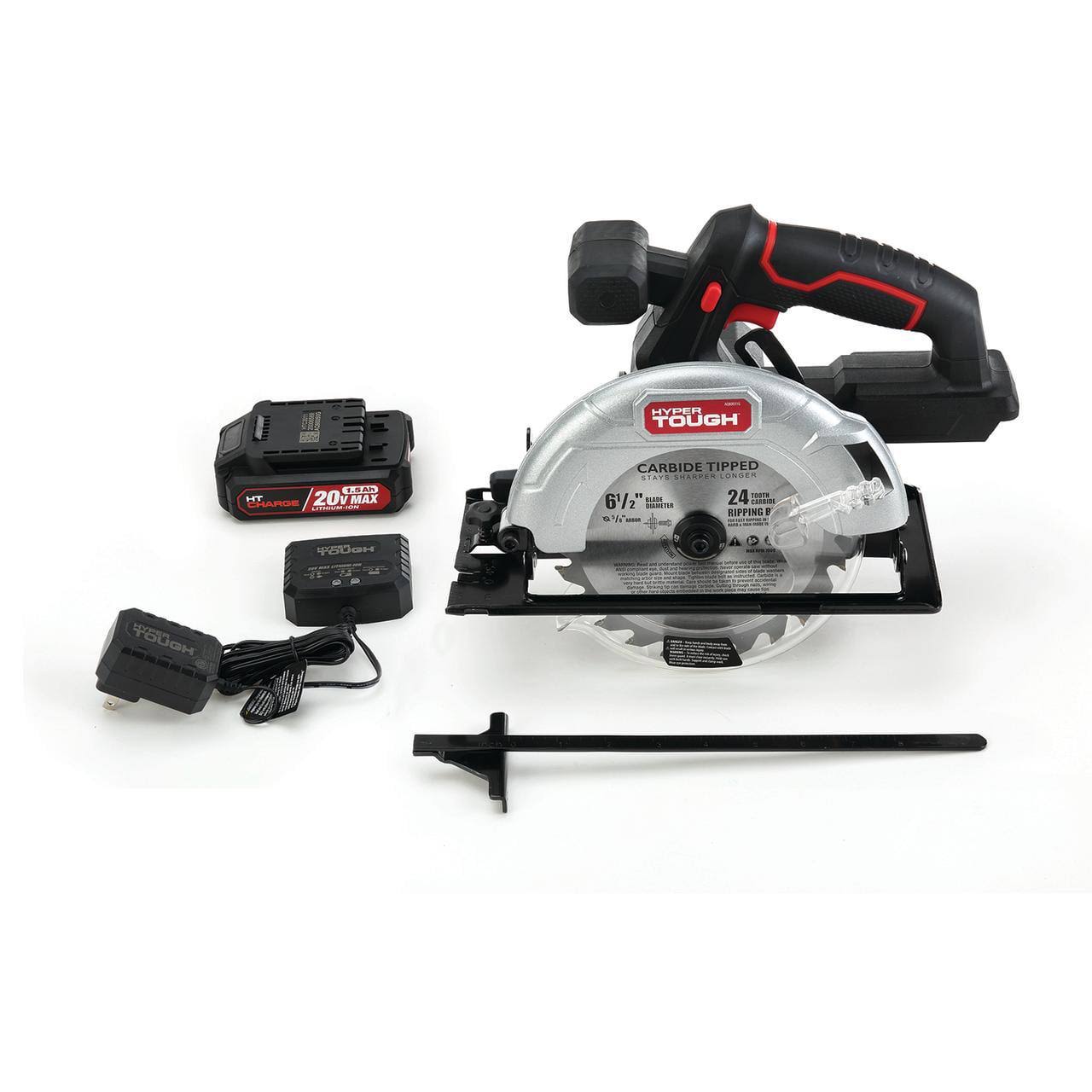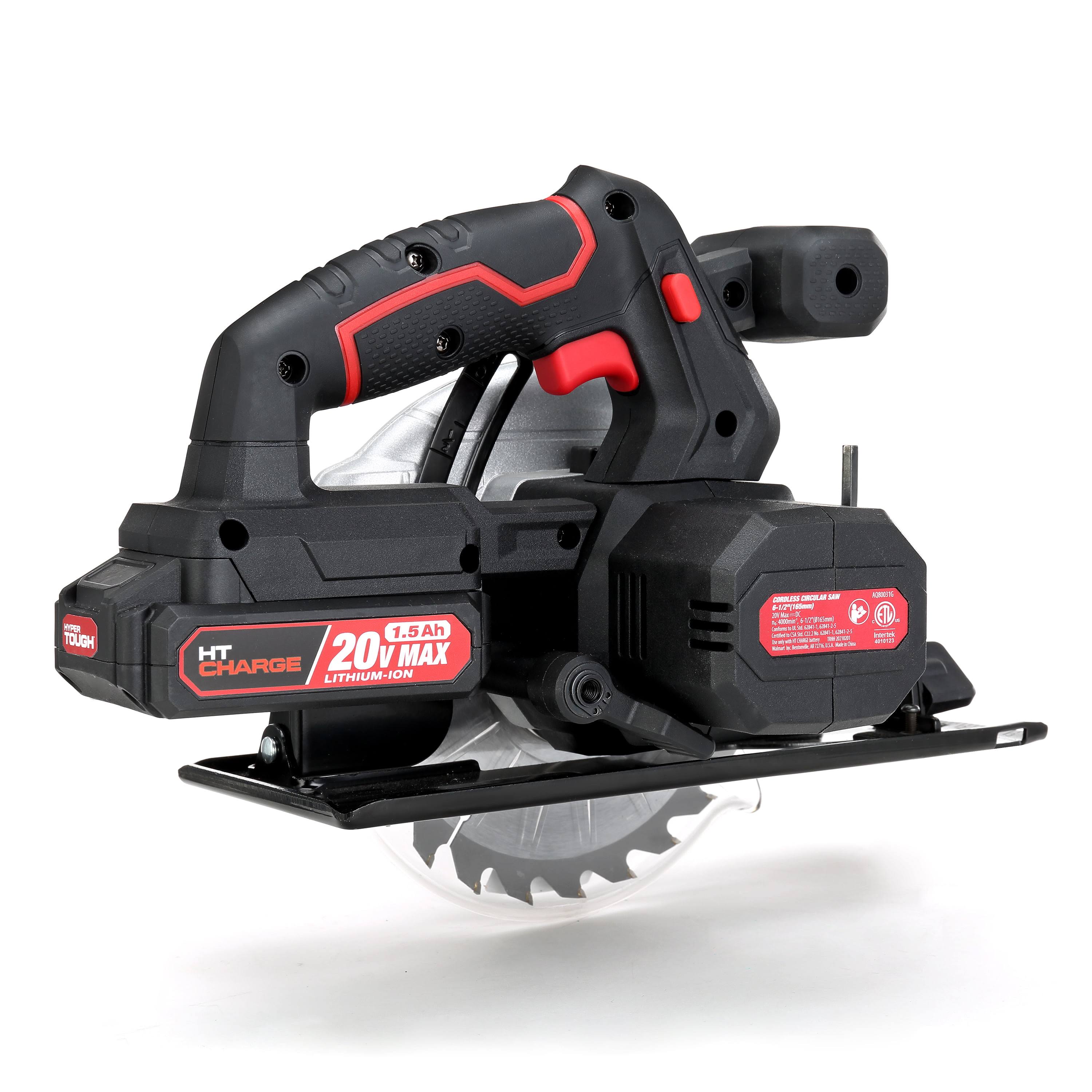 Hyper Tough 20V Max Lithium Ion Cordless 6-1/2 inch Circular Saw with 1.5Ah Lithium-Ion Battery, Charger, Blade & Rip Fence