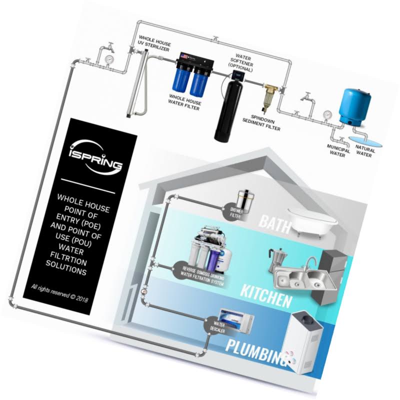 iSpring WGB21B 2-Stage Whole House Water Filtration System w/ 4.5"x10" Sediment