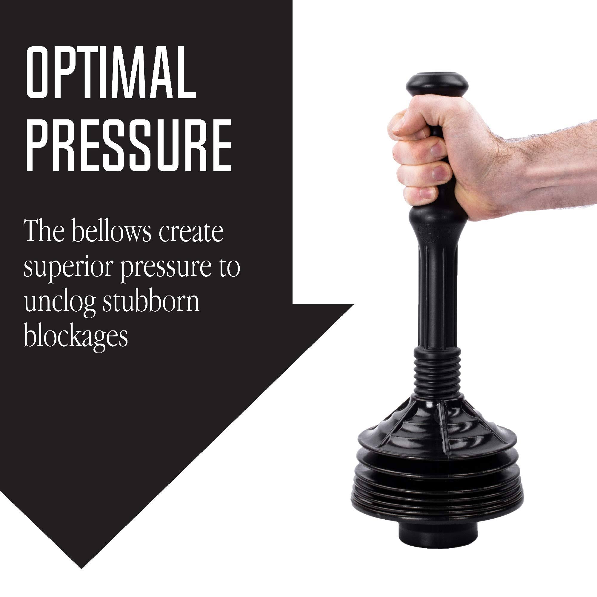 JS Jackson Supplies Professional Bellows Accordion Toilet Plunger, High Pressure Thrust Plunge Removes Heavy Duty Clogs from Clogged Bathroom