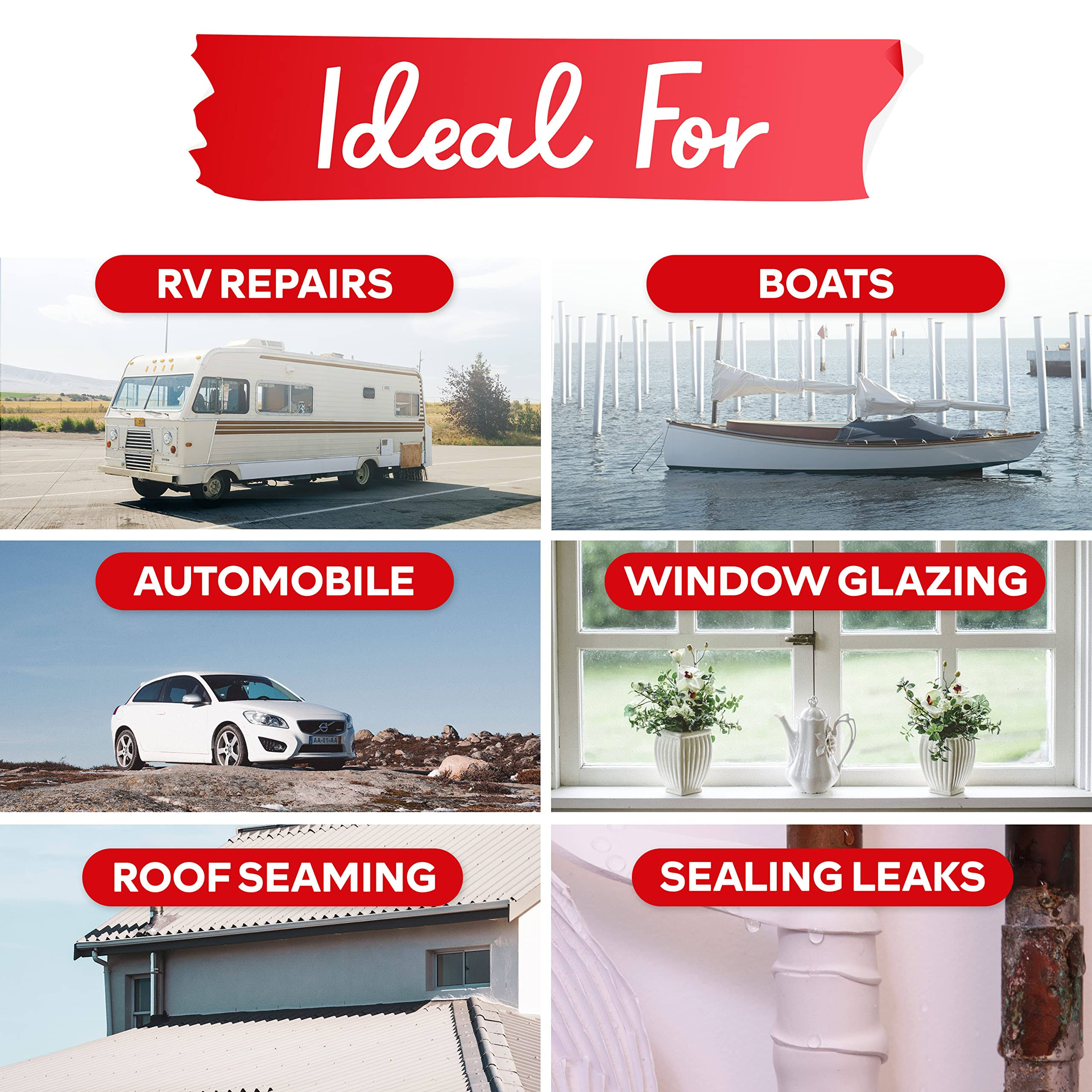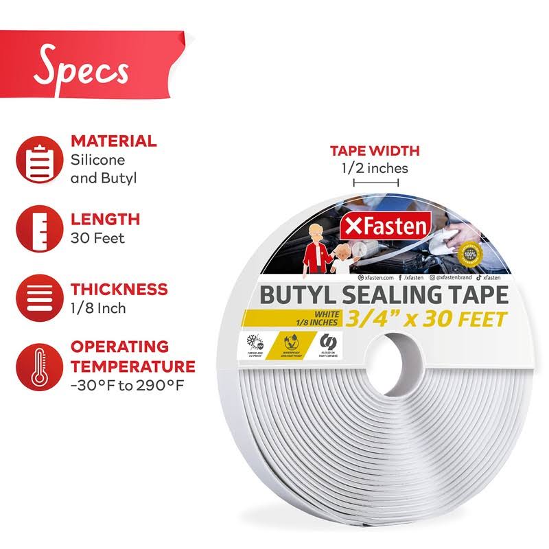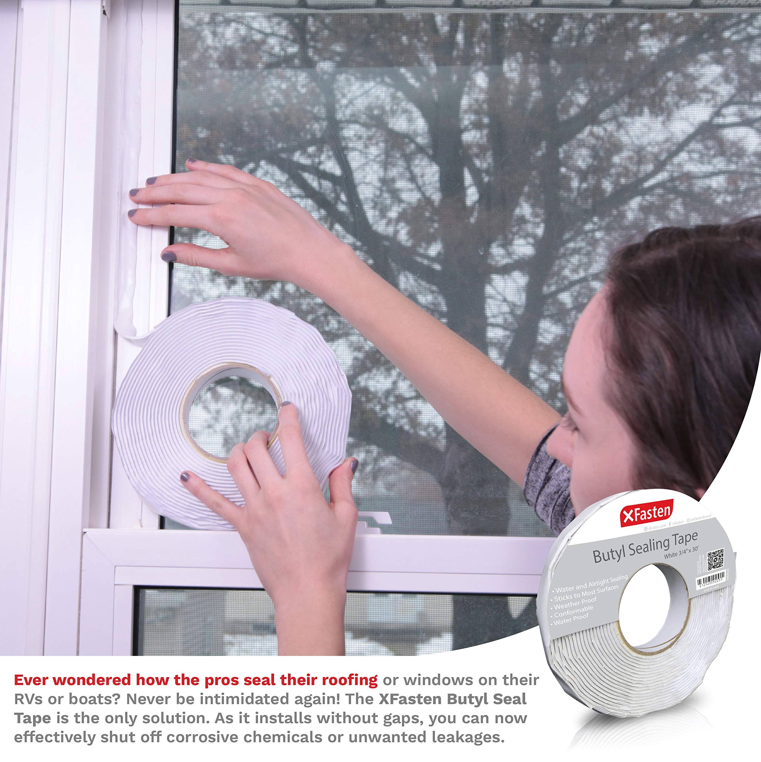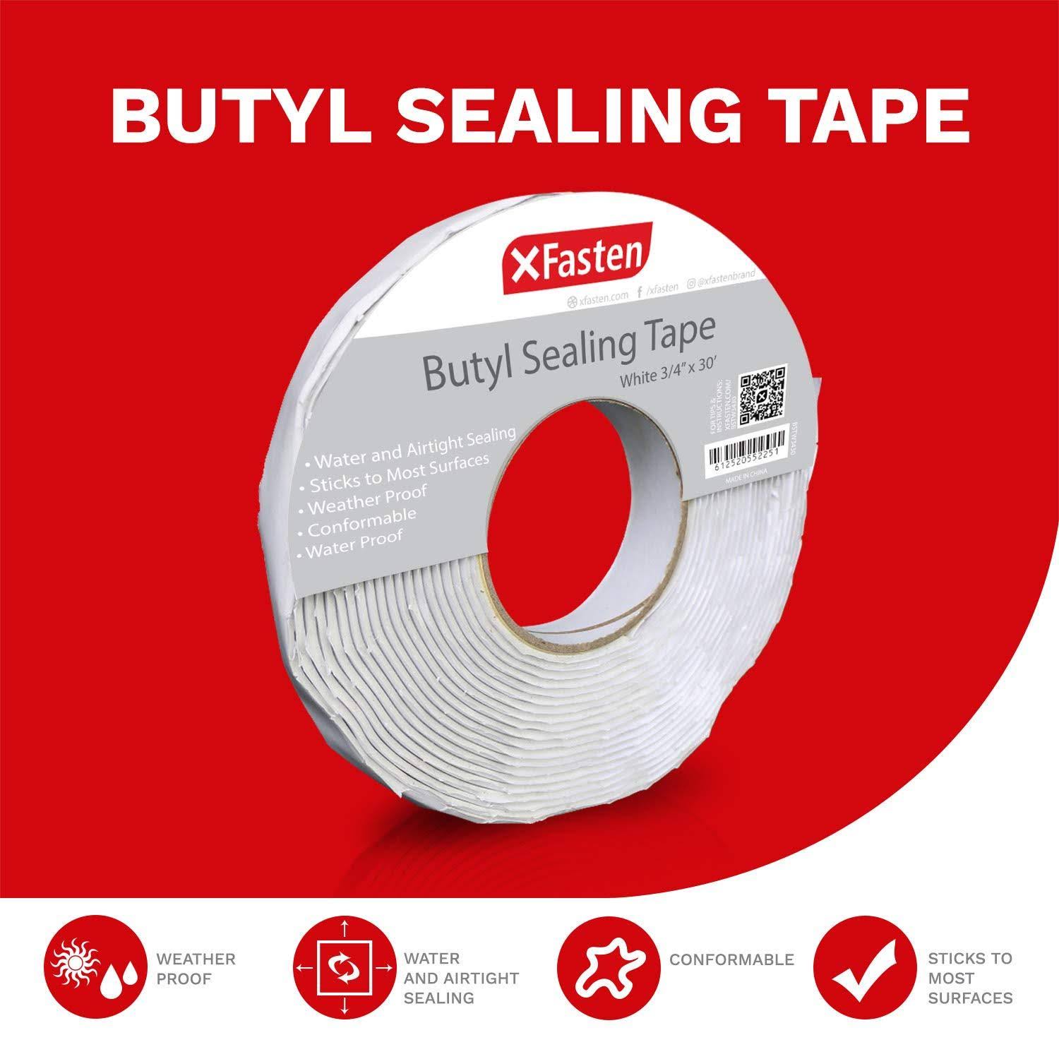 XFasten Butyl Seal Tape, White, 1/8-Inch x 3/4-Inch x 30-Foot, Leak Proof Putty Tape for RV Repair, Window, Boat Sealing, Glass and EDPM Rubber Roof