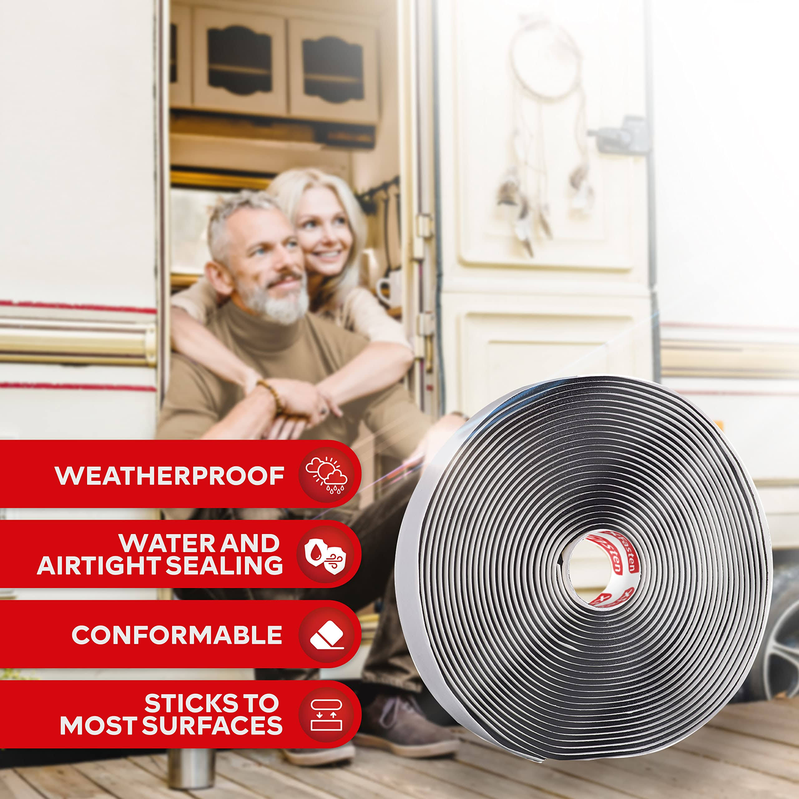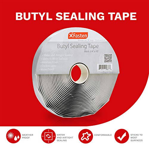 XFasten Black Butyl Seal Tape, 3/4 inch x 45 Feet, 1/8 inch Thick, Leak Proof Putty Tape for RV Repair, Window, Boat Sealing, Glass and EDPM Rubber