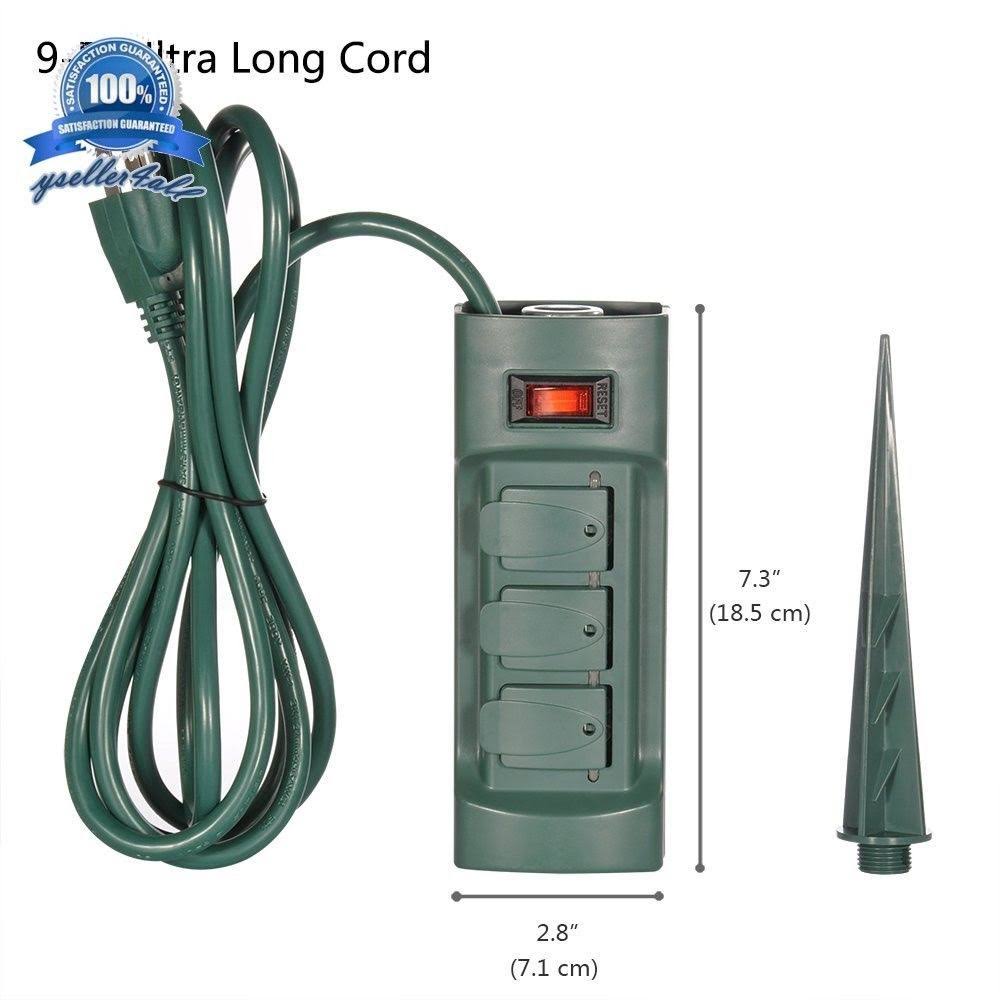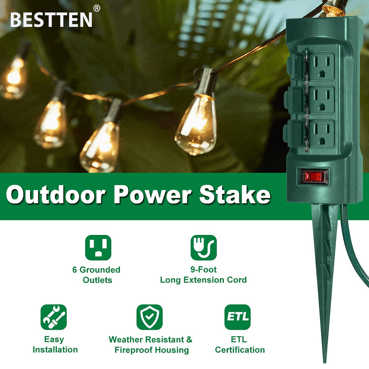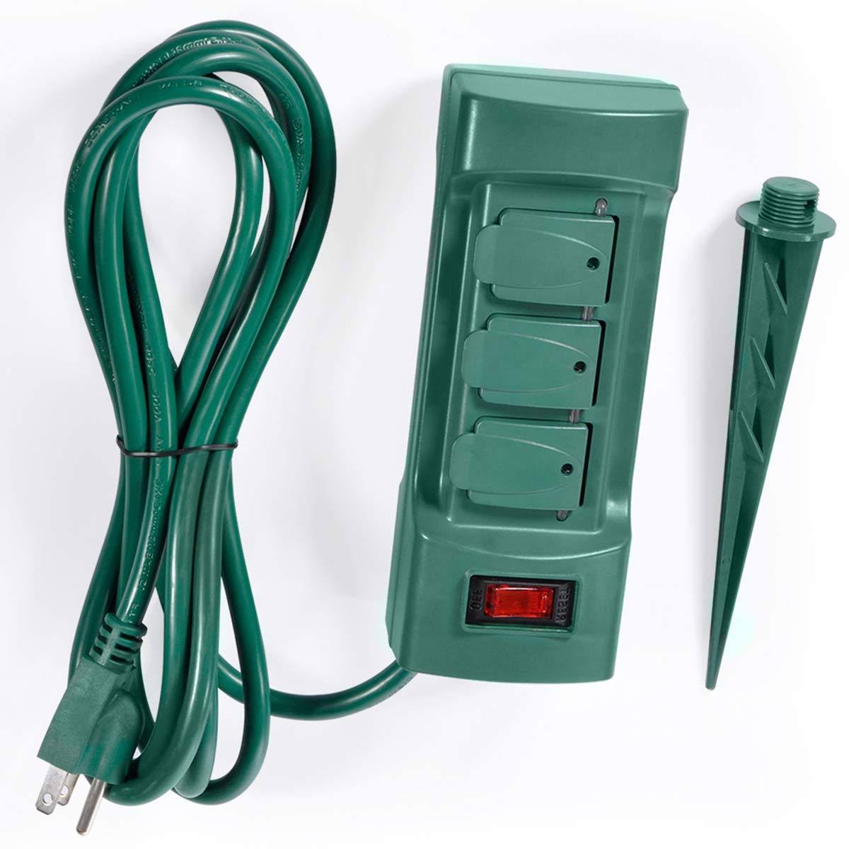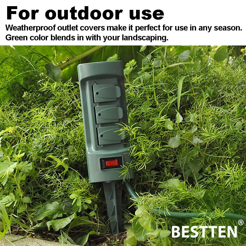 BESTTEN 6 Outlet Outdoor Yard Power Stake with Cover and on Off Switch, 9 Foot