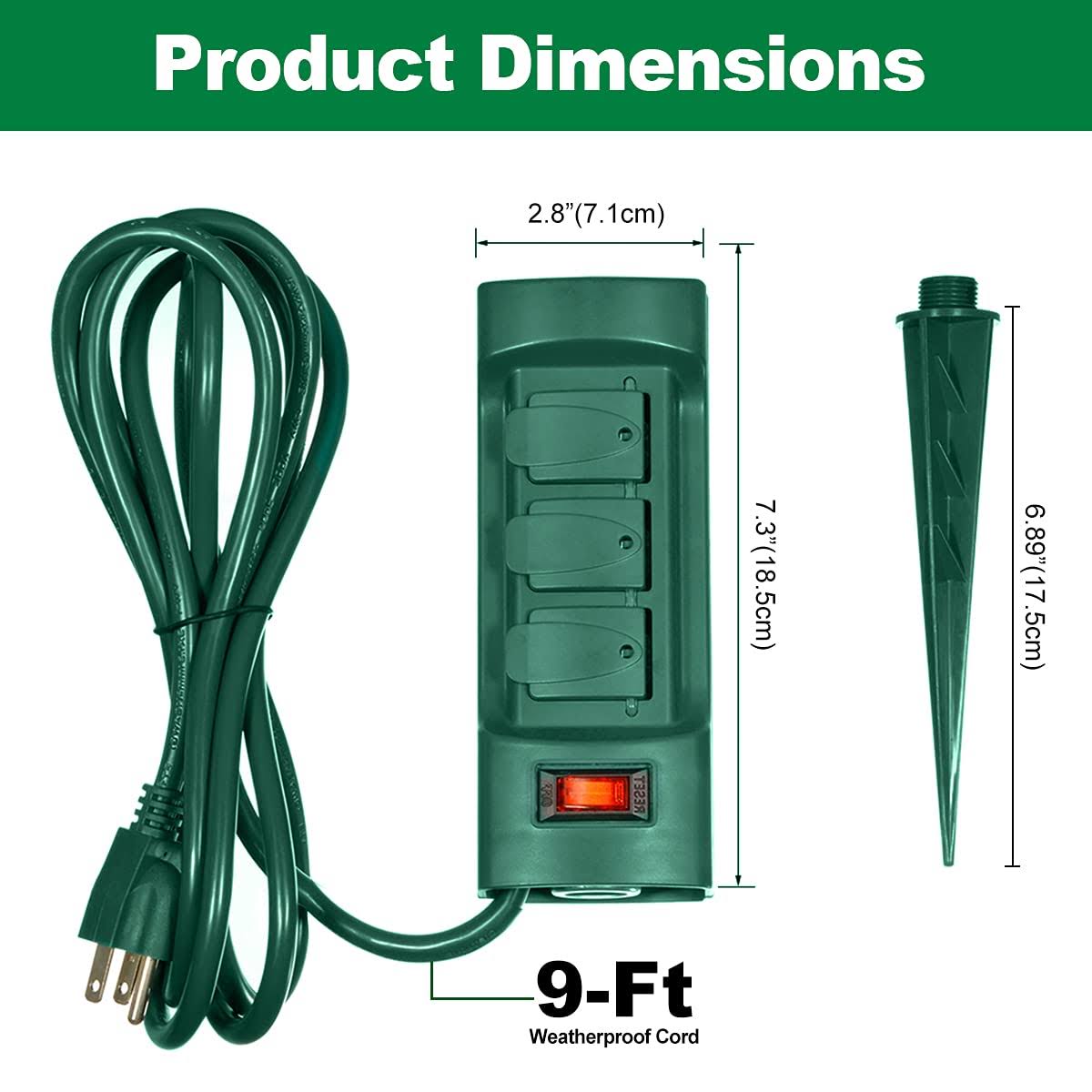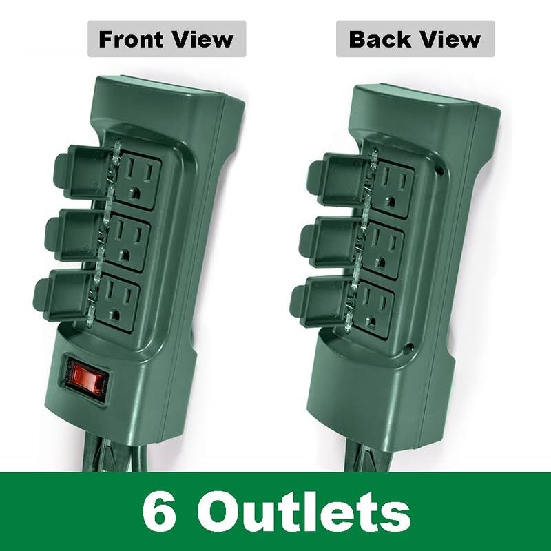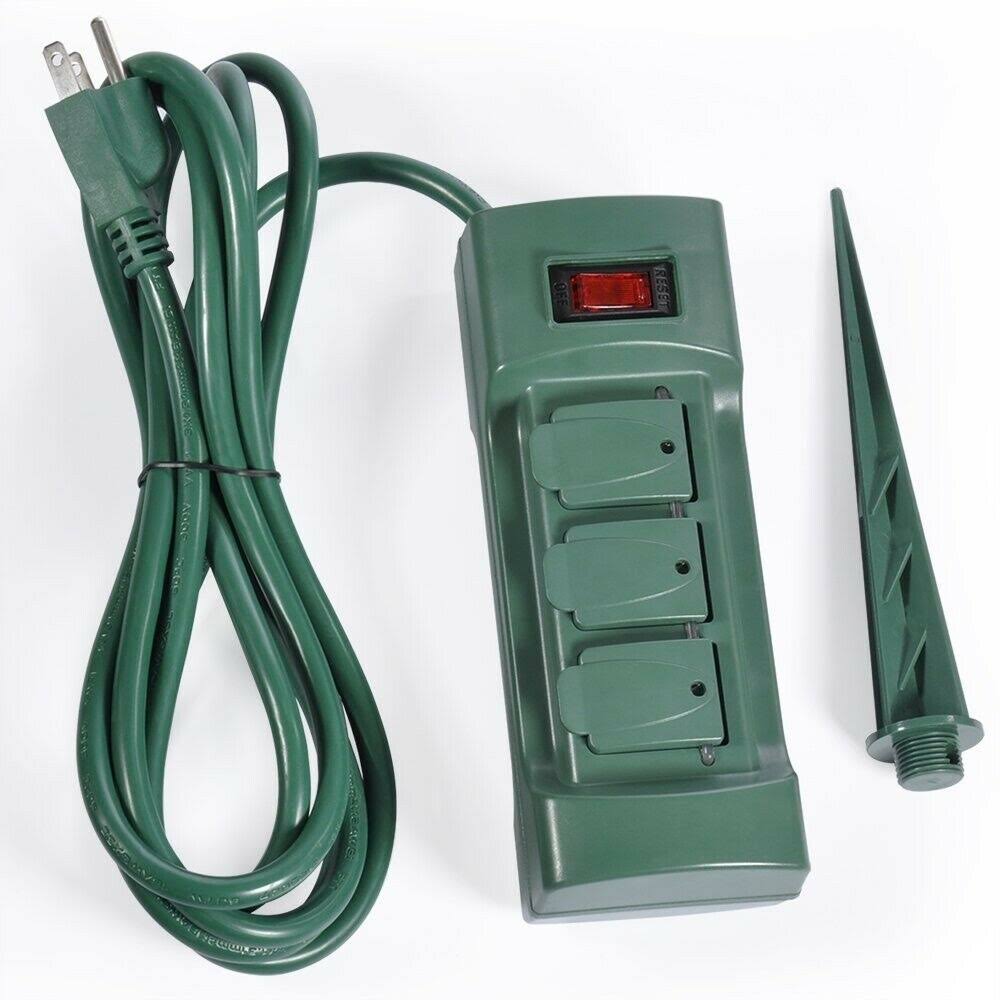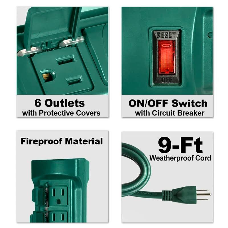 BESTTEN 6 Outlet Outdoor Yard Power Stake with Cover and on Off Switch, 9 Foot