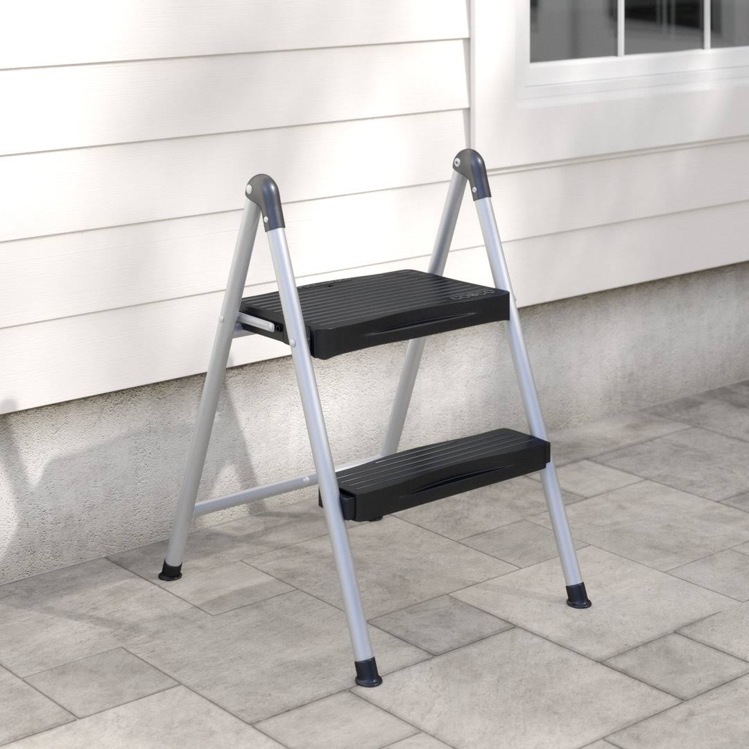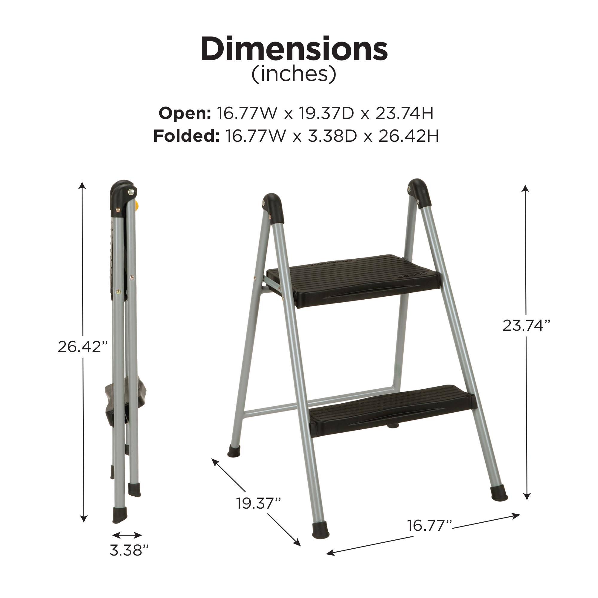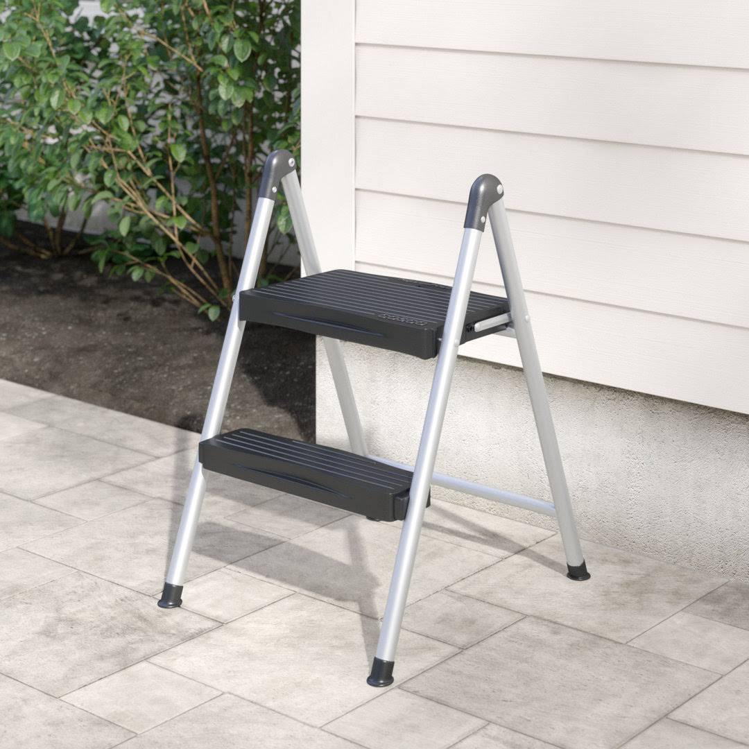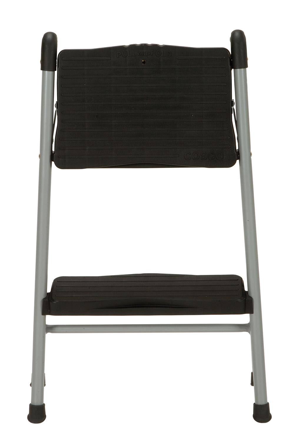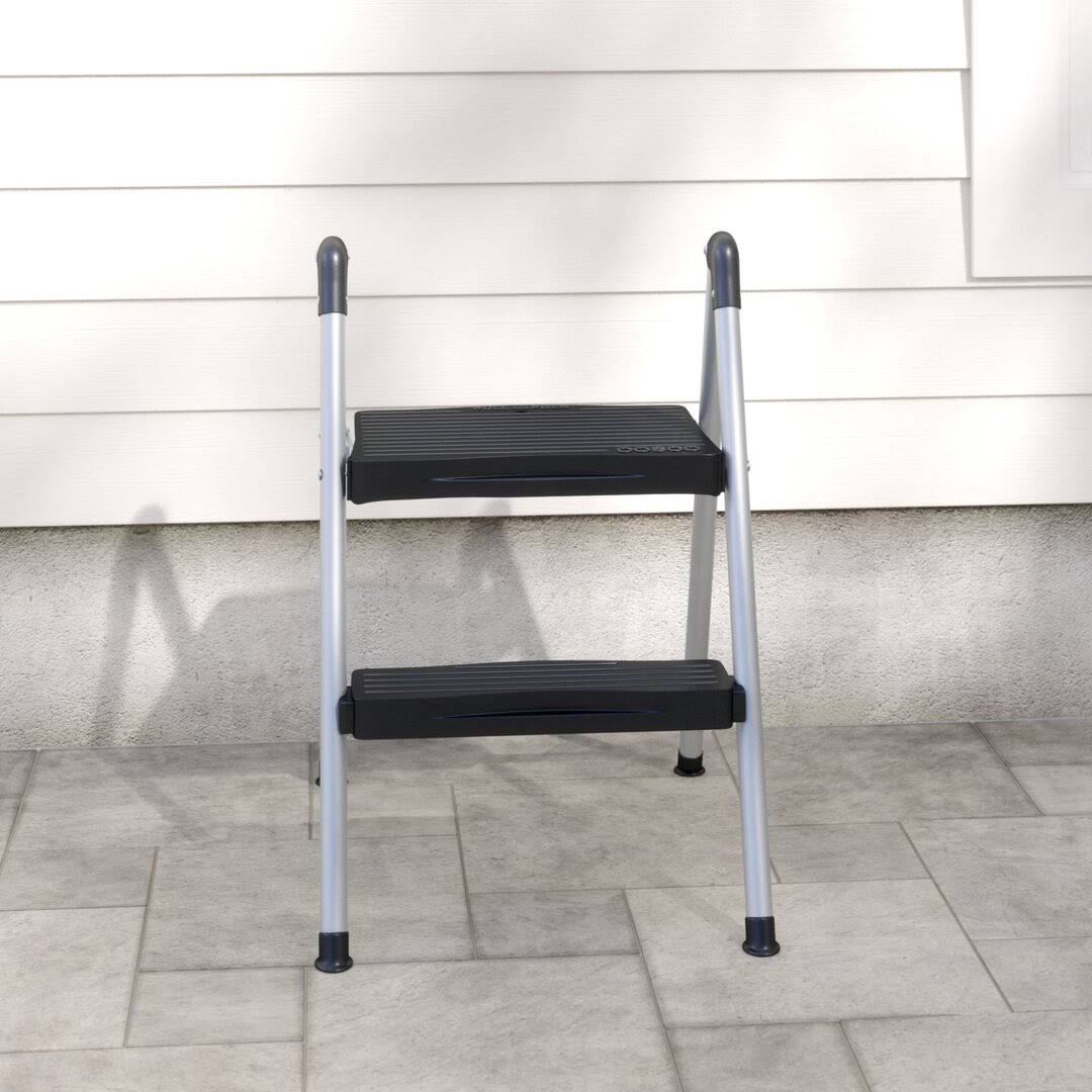 Cosco Folding Step Stool 2-Step, 200lb, 16 9/10" Working Height, Platinum/Black