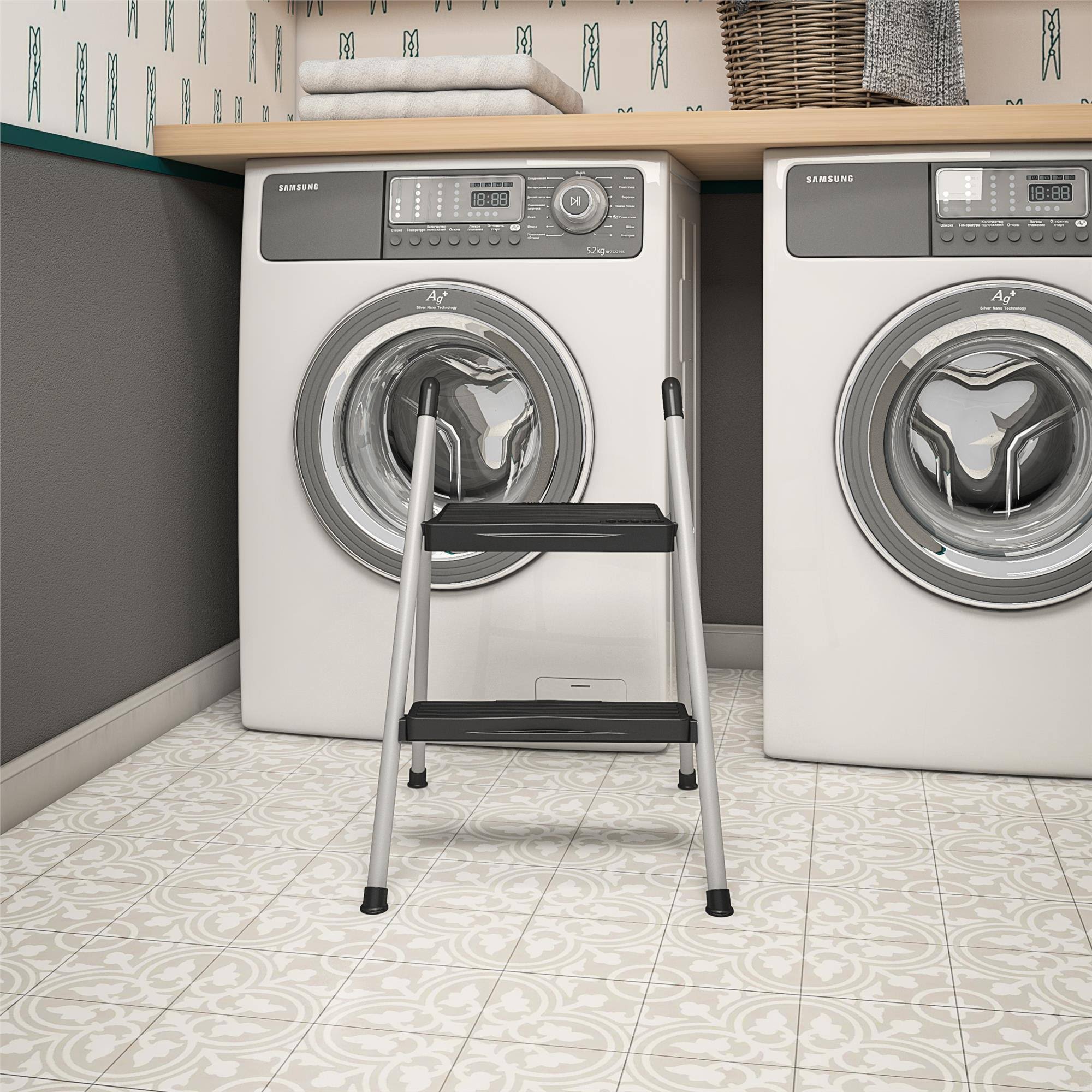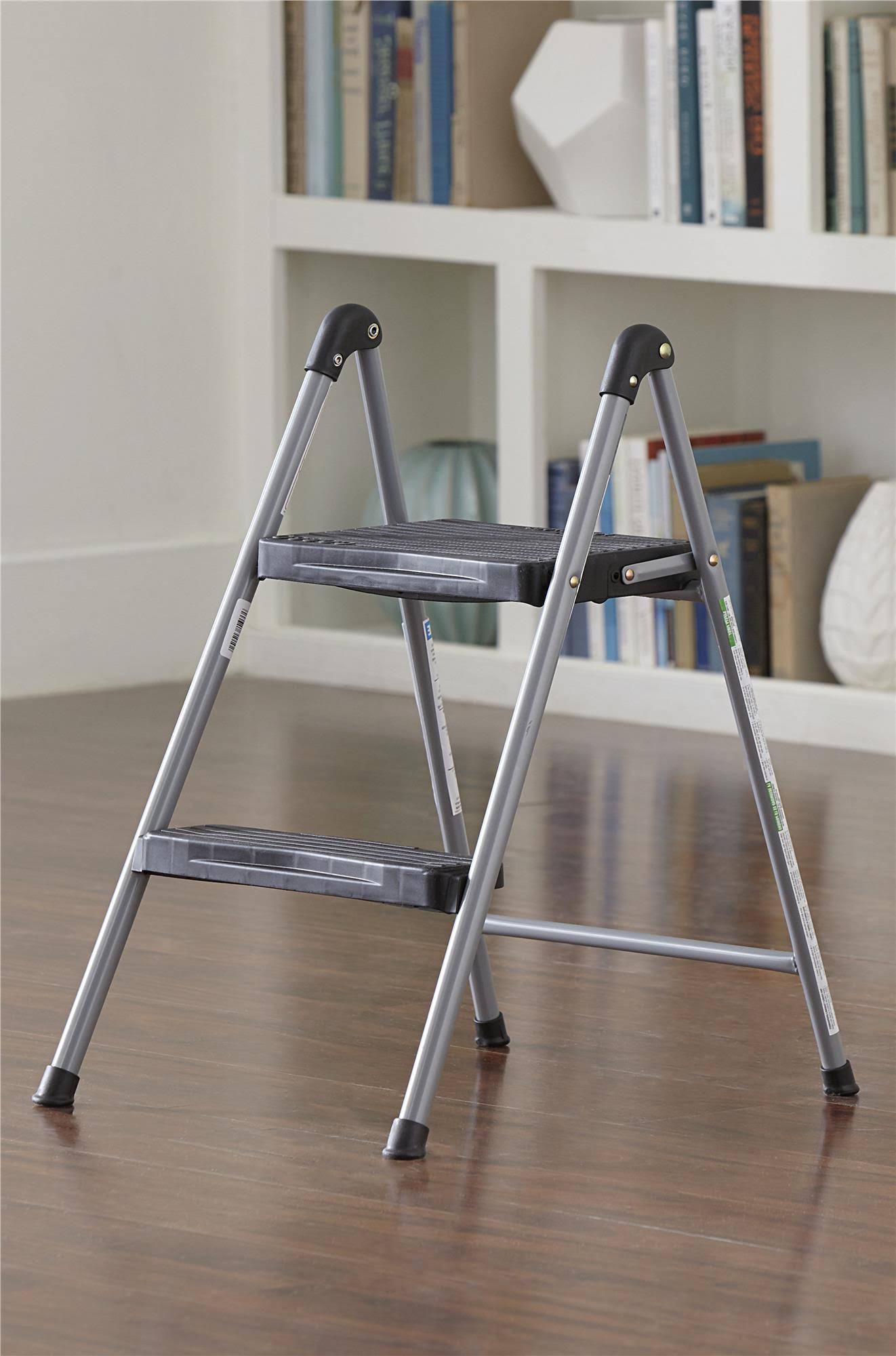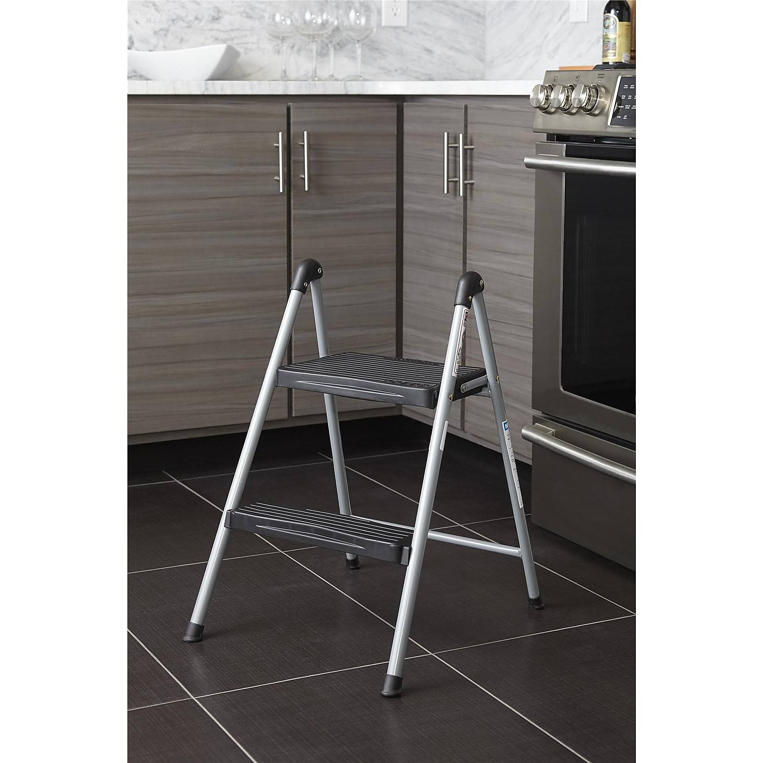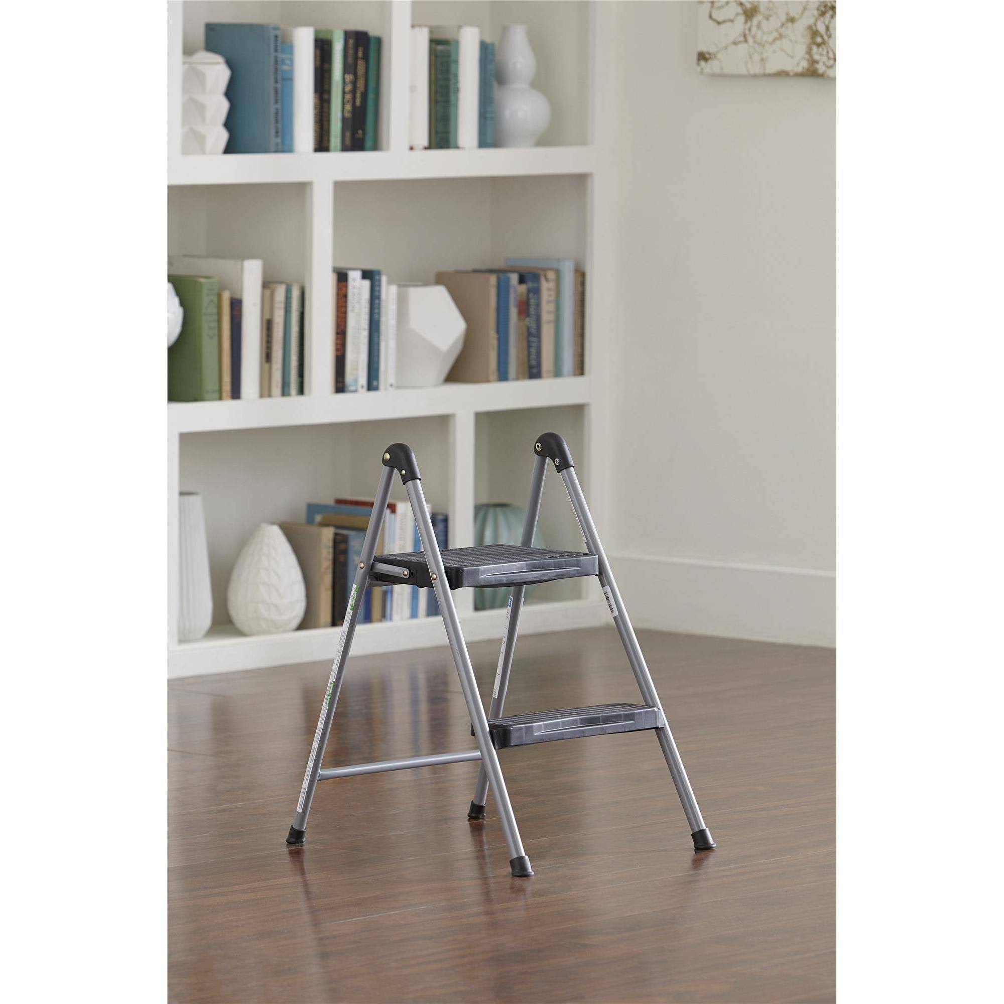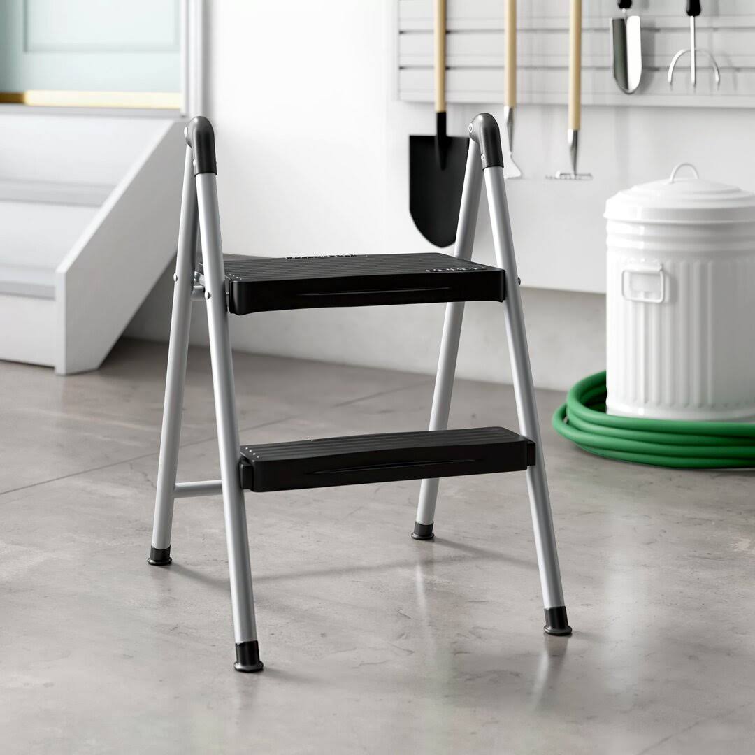 Cosco Folding Step Stool 2-Step, 200lb, 16 9/10" Working Height, Platinum/Black