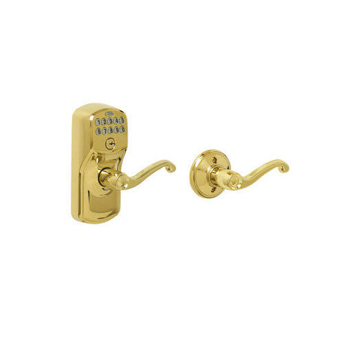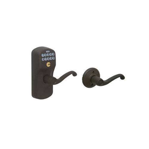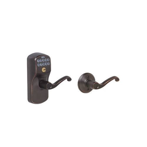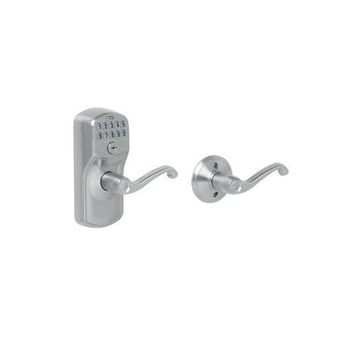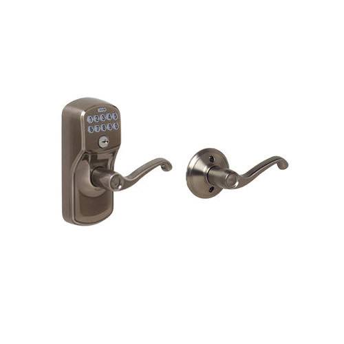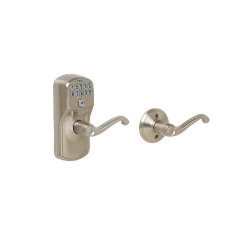 Schlage Plymouth- Keypad Entry with Auto-Lock Door Satin Nickel Flair Lever