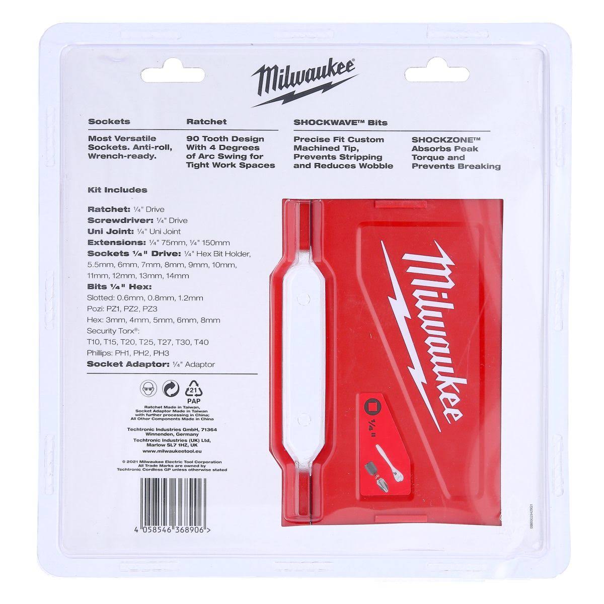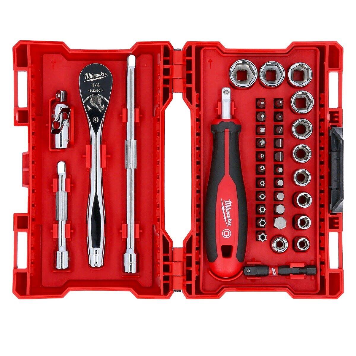 Milawaukee Ratchet, Socket and Bit Set 1/4 inch 38 Pieces