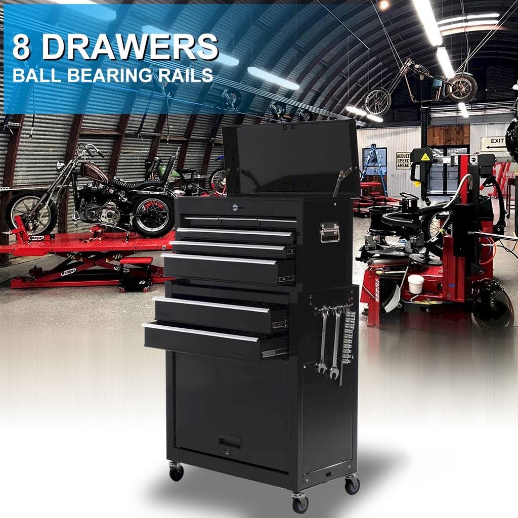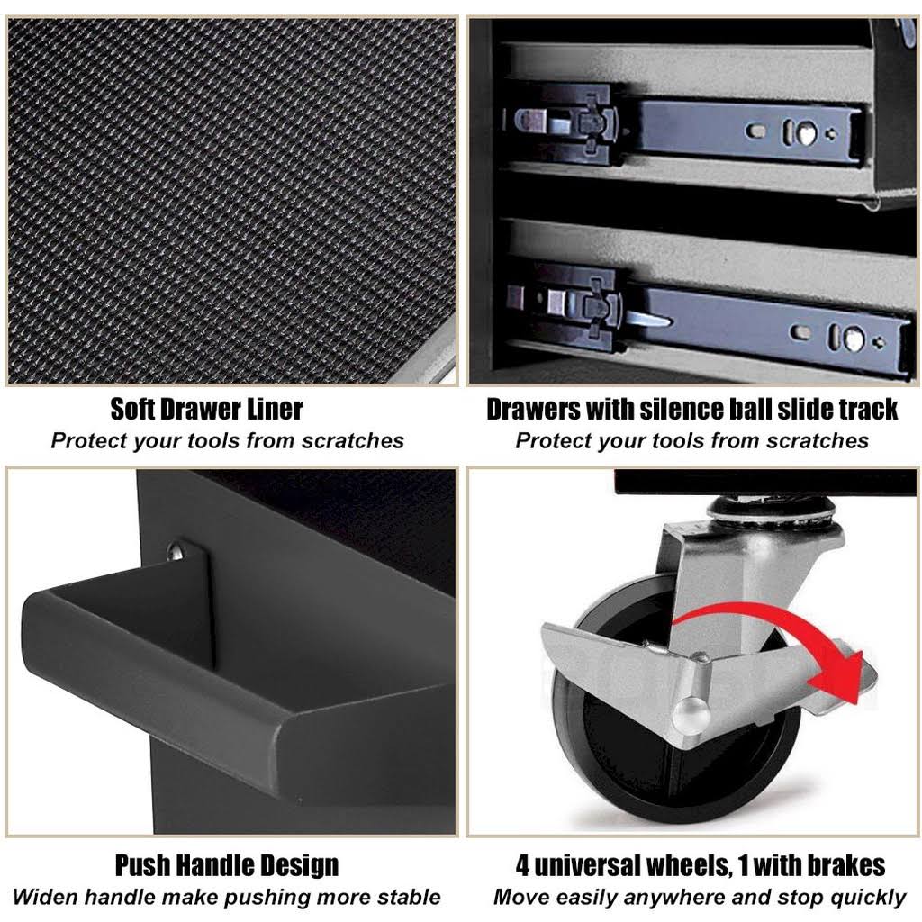 SUNY Deals 2pcs Tool Storage Box Portable Top Chest Rolling Tool Box Organizer Sliding Drawers Cabinet Keyed Locking System Toolbox Black