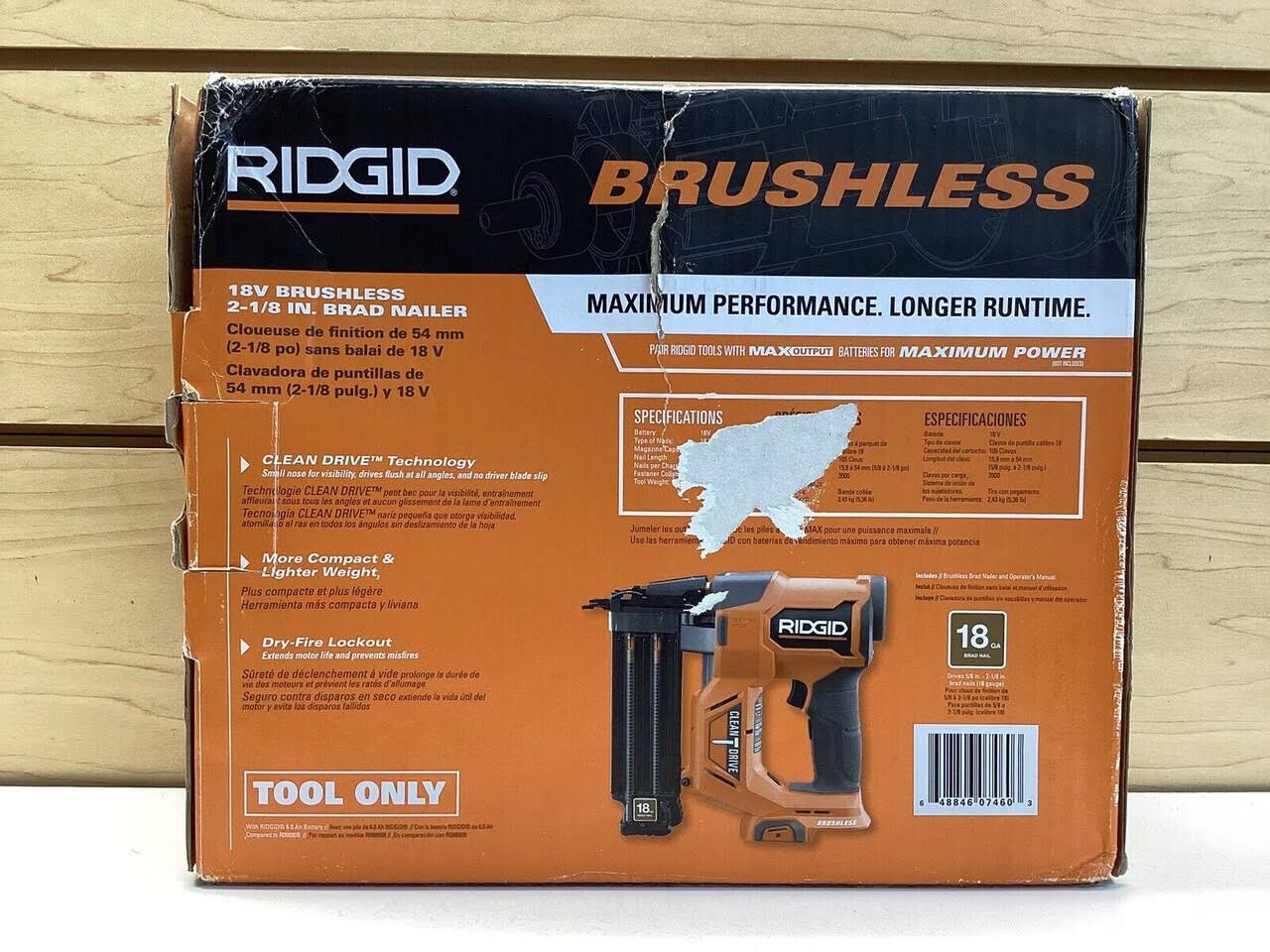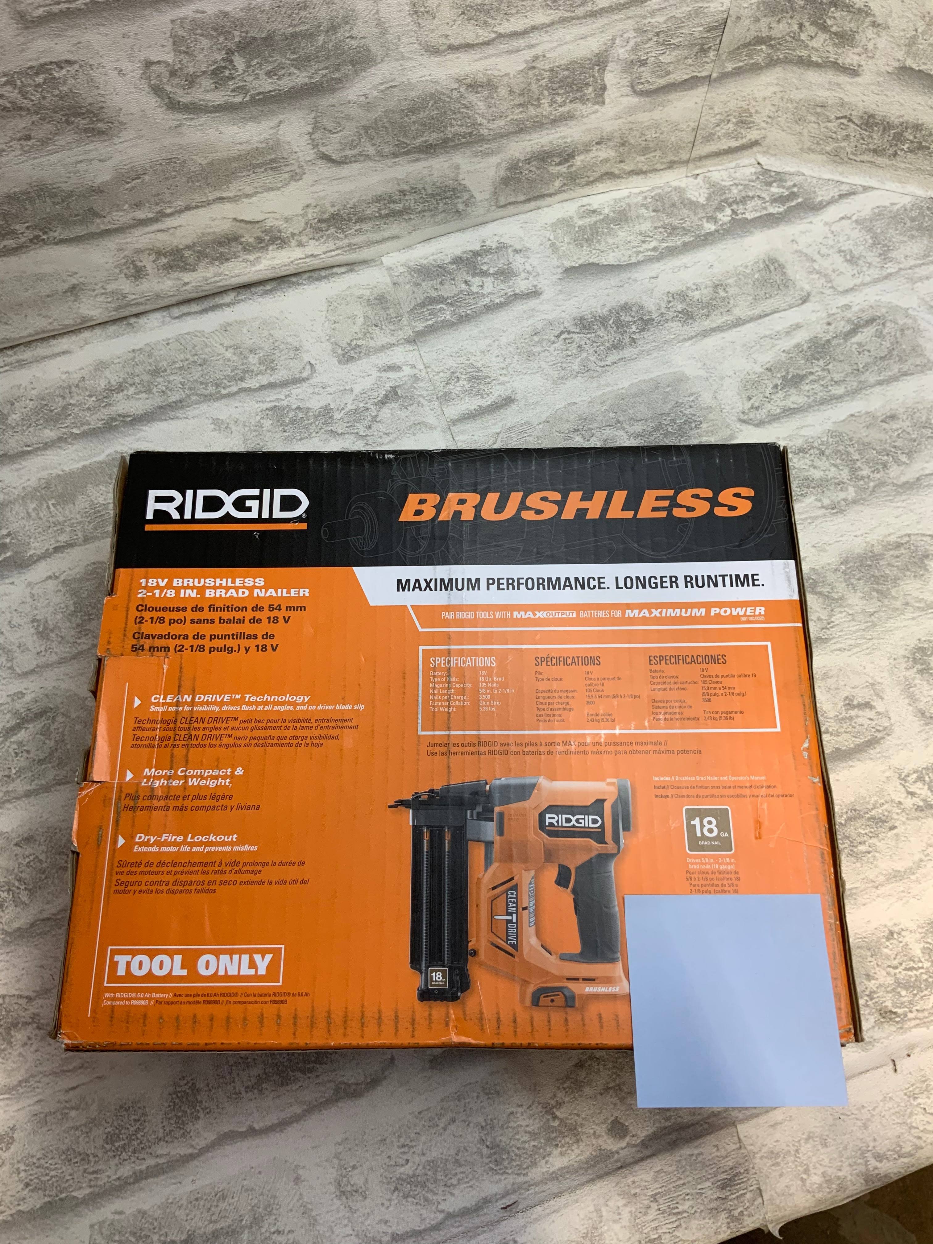 Ridgid R09891B 18V Brushless Cordless 18-Gauge 2-1/8 in. Brad Nailer