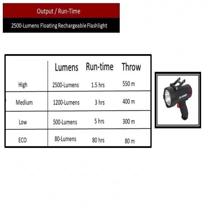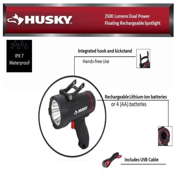 Husky 2500 Lumens Dual Power Floating Rechargeable Spotlight
