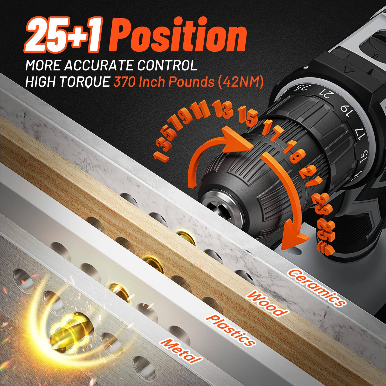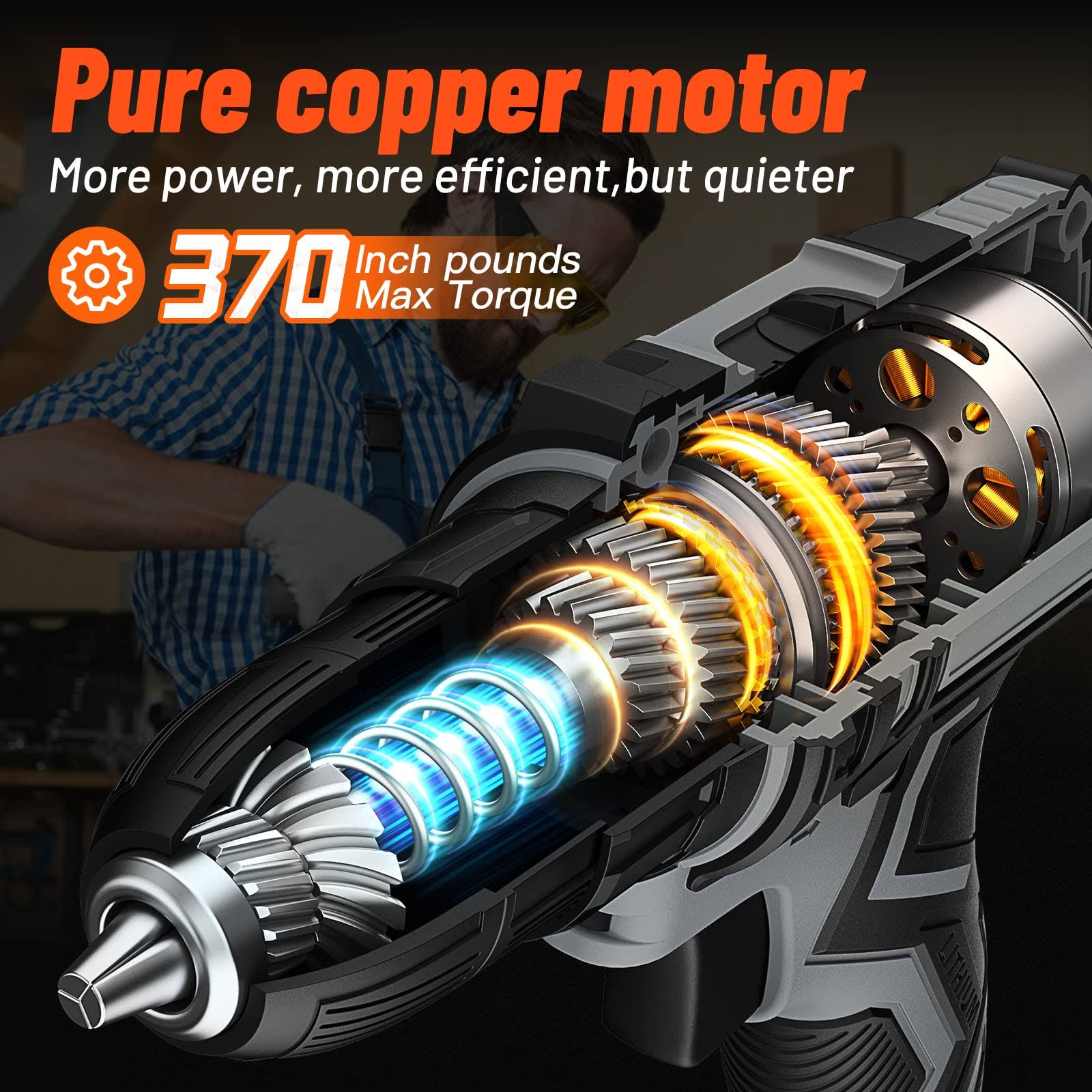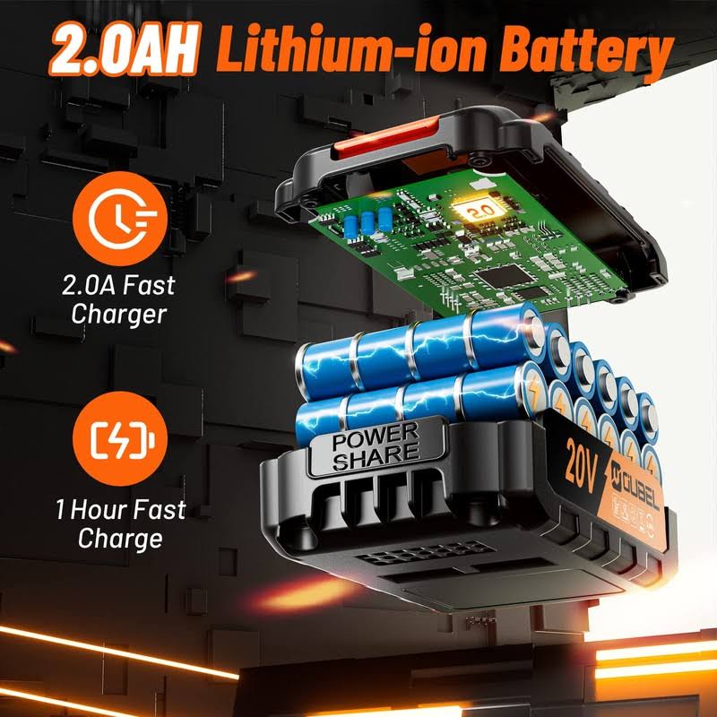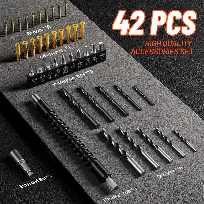Drill Set, OUBEL 20V Cordless Drill with Battery and Charger, Home Electric Power Drill Cordless, 3/8-Inch Keyless Chuck, 2 Variable Speed, 25+1