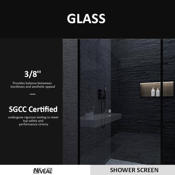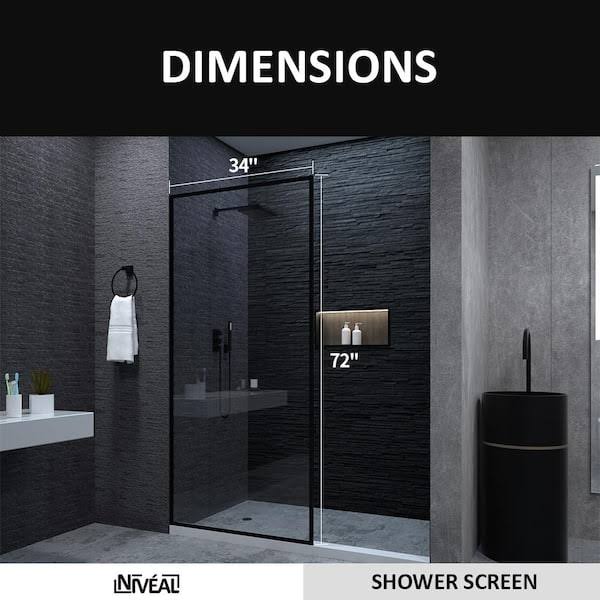 niveal Citron 34 in. W x 72 in. H Fixed Framed Shower Door in Matte Black Finish with Clear Glass