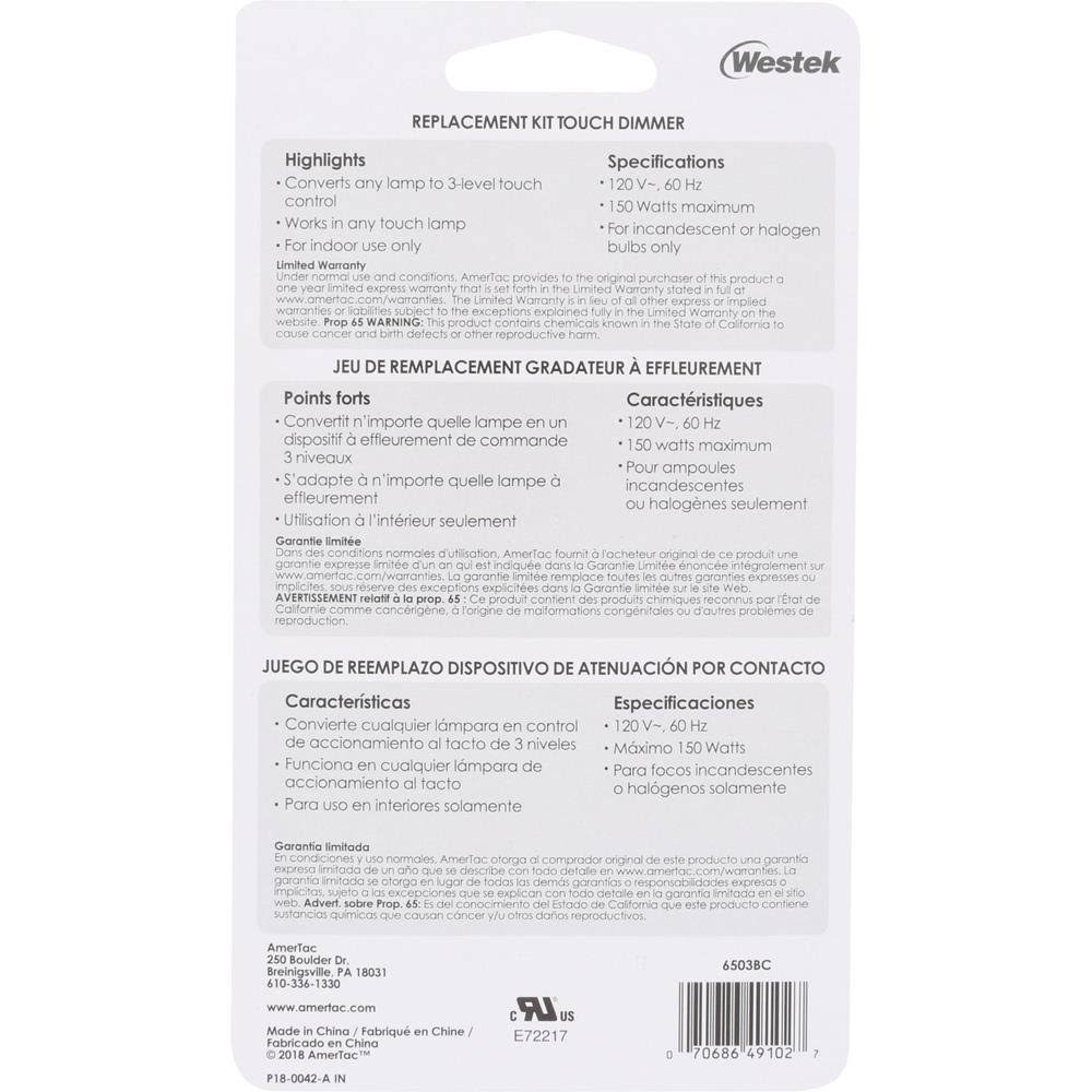 Westek 6503BC 150W 3-Level Wire-In Replacement Dimmer Black
