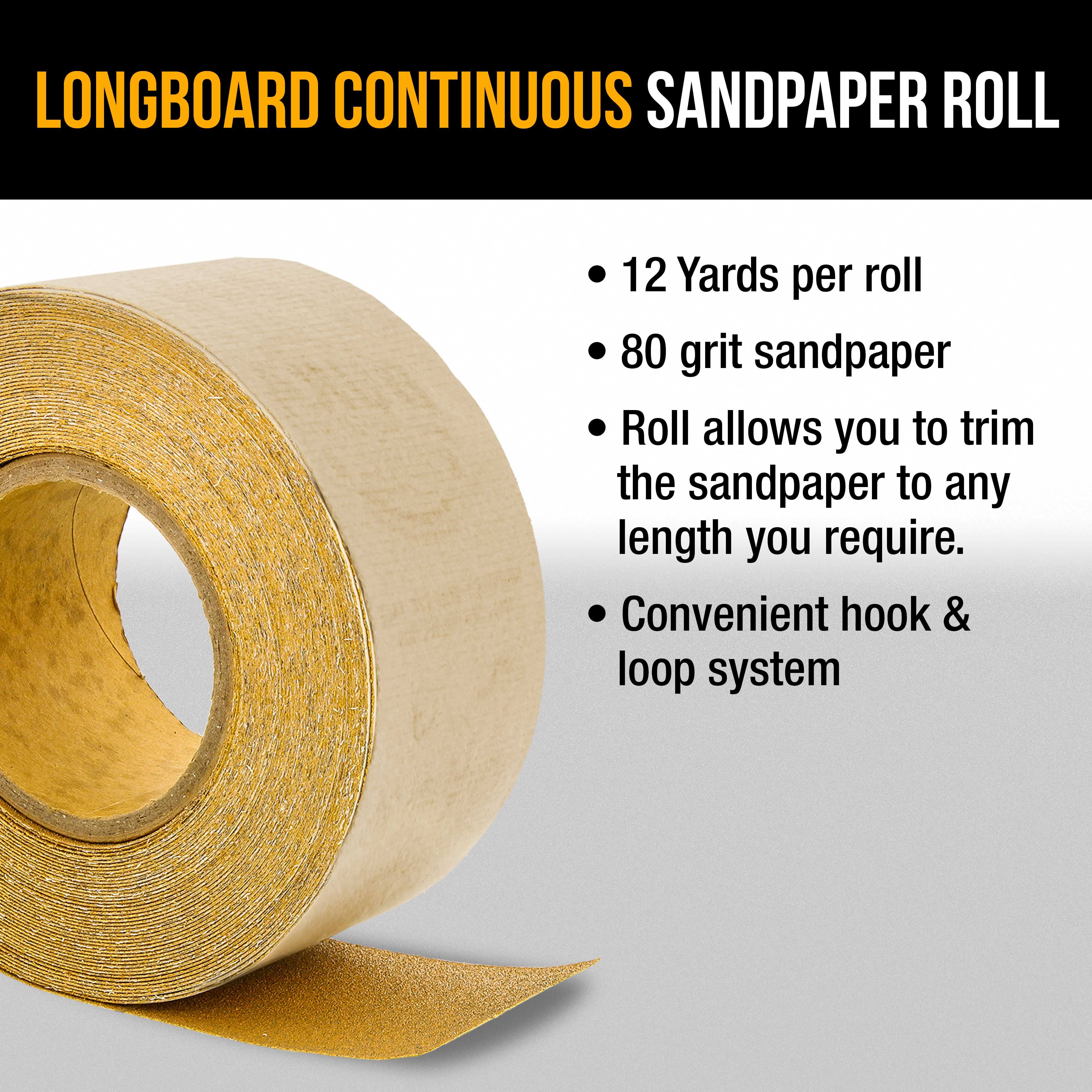 Dura-Gold Premium- 80 Grit Gold- Hook & Loop Backing Longboard Continuous Sandpaper Roll, 2-3/4" Wide, 12 Yards Long- for