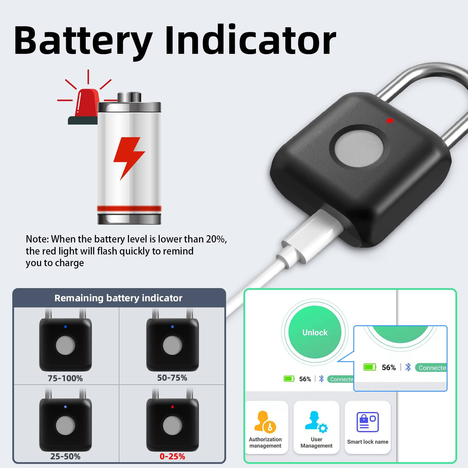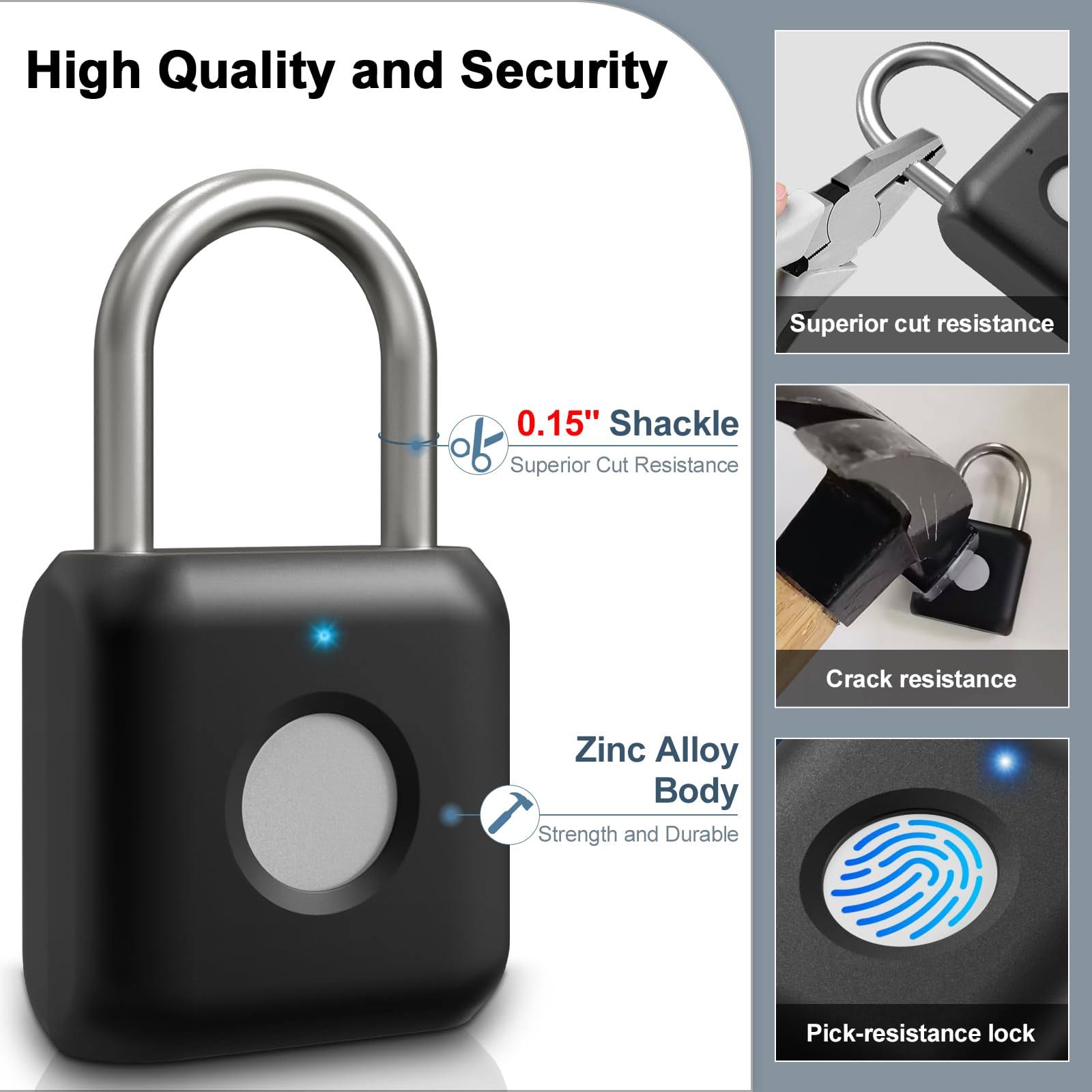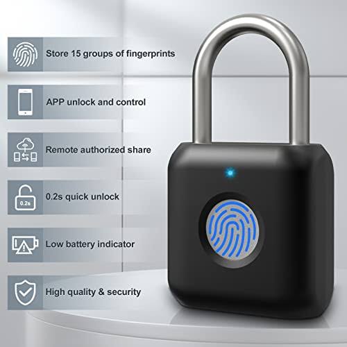 Fingerprint Padlock, Pothunder Padlock, Locker Lock, Combination Lock, Fingerprint Lock with App Unlock, USB Rechargeable, Suitable for Gym Locker,