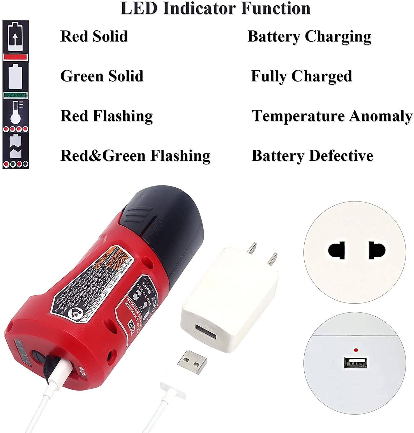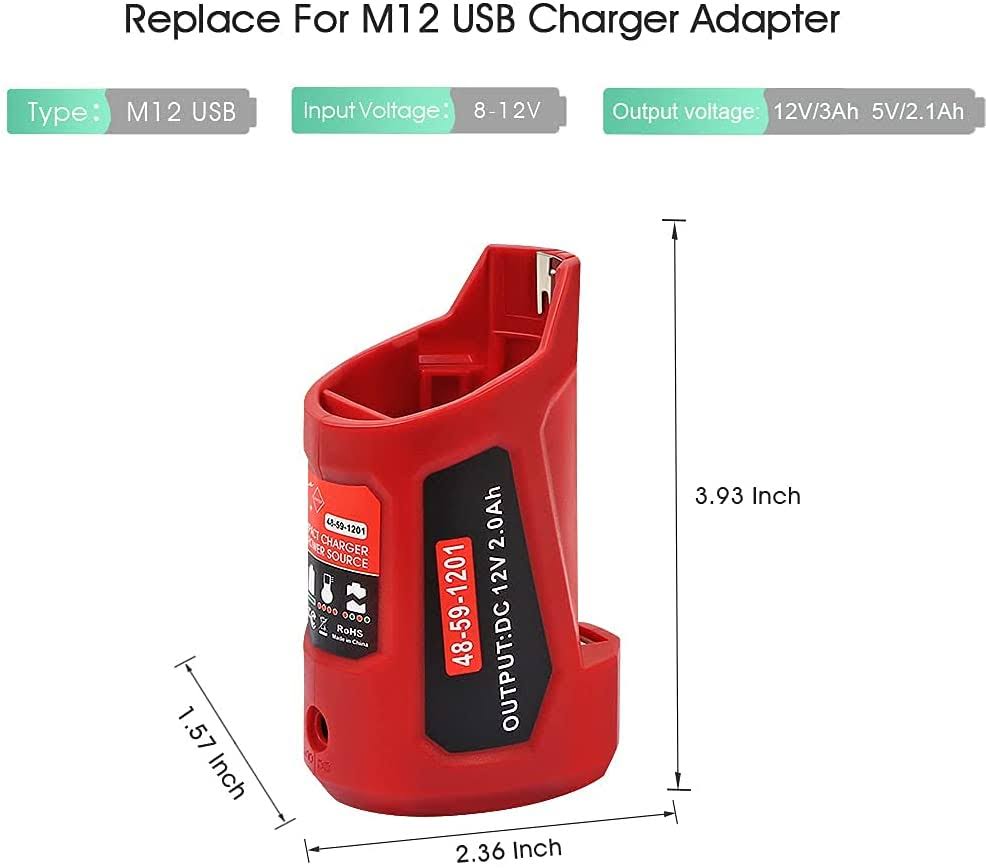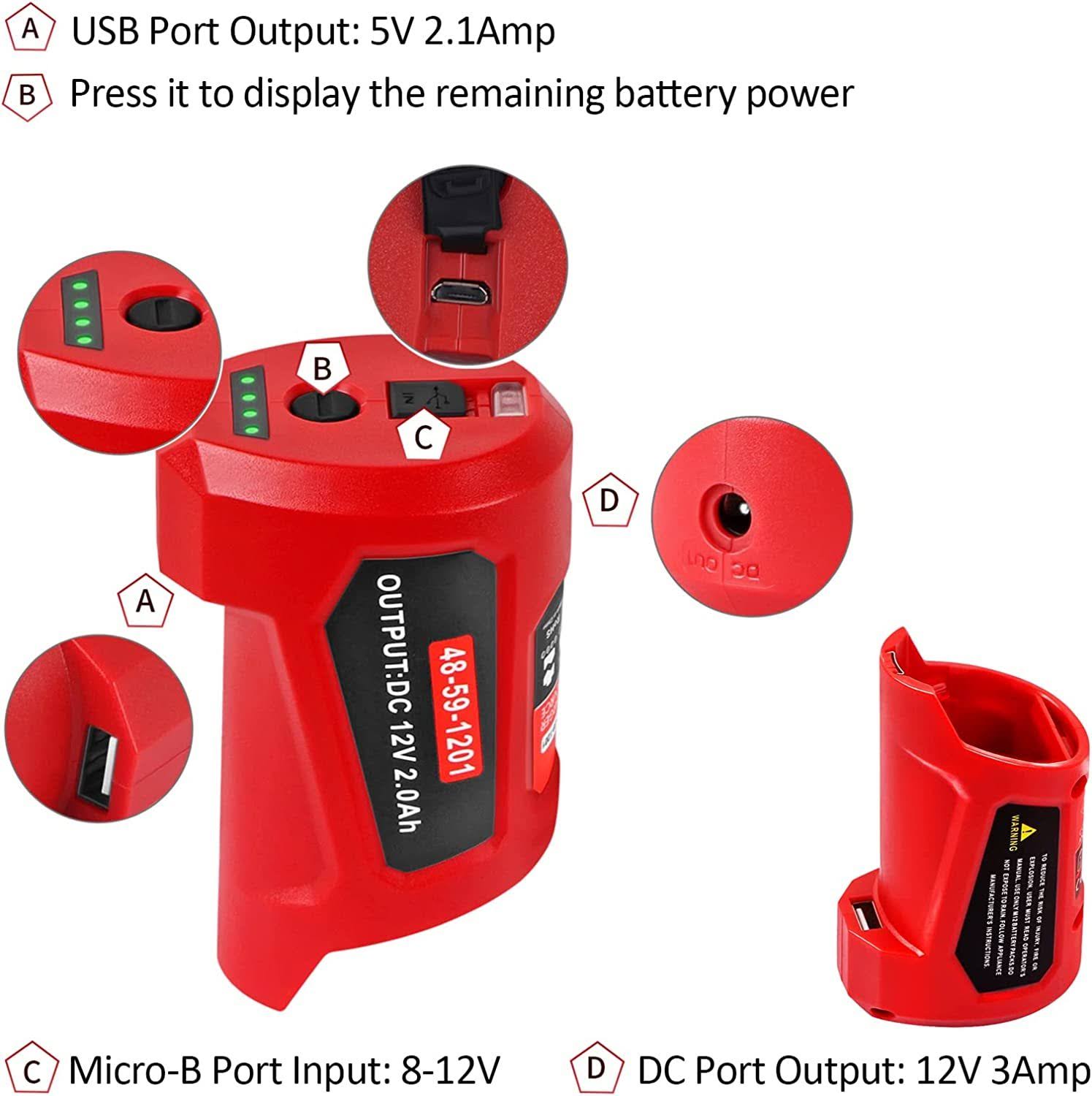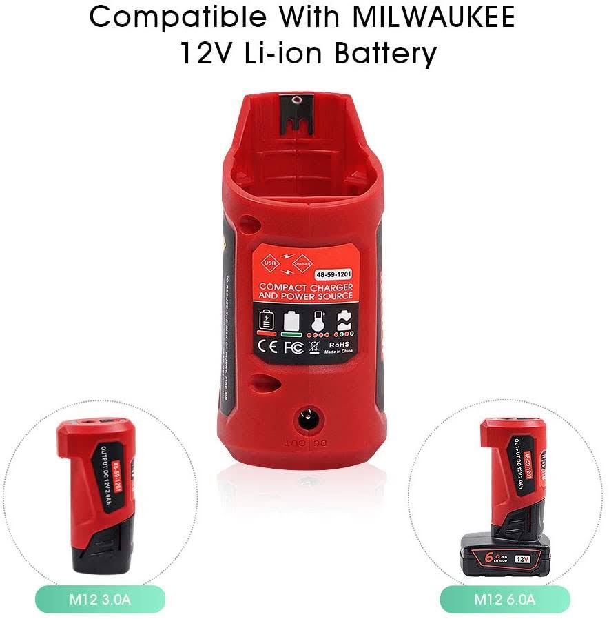 TenHutt Multifunction 12V USB Power Source Replacement for Milwaukee M12 12V Battery Charger Adapter Compatible with Milwaukee Heated Jacket 45-59-12