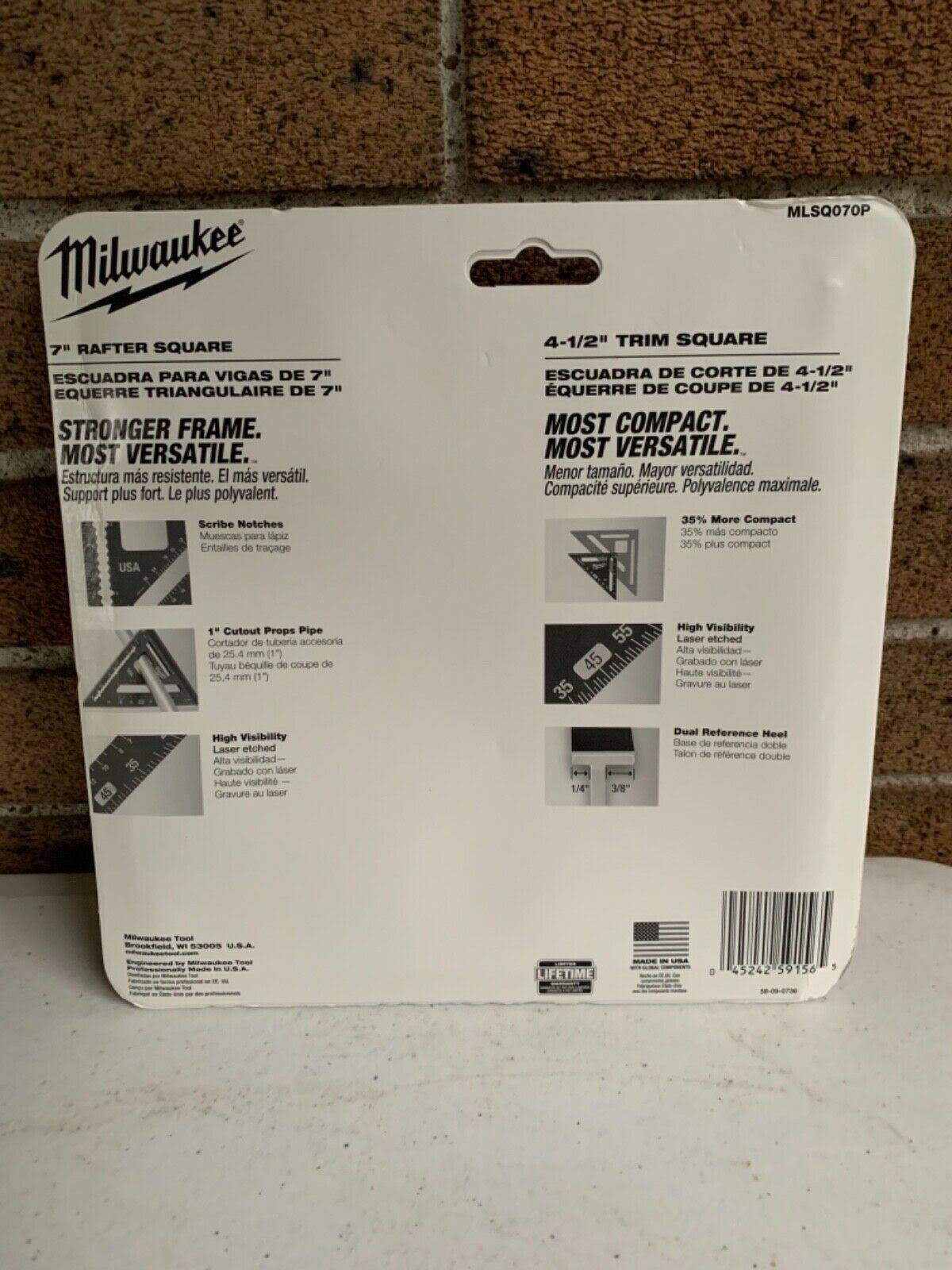 Milwaukee MLSQ070P 7" Rafter Square and 4-1/2" Trim Square Set