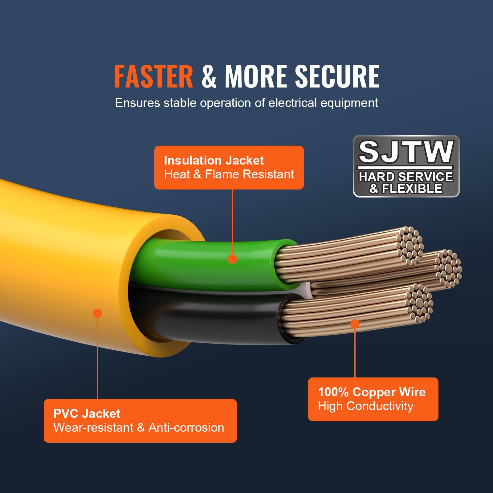 VEVOR 15-Amp Generator Extension Cord, 25 Feet, 125V 1875W Heavy Duty Generator Outdoor Power Cord, NEMA 5-15p/5-15r STJW Flexi