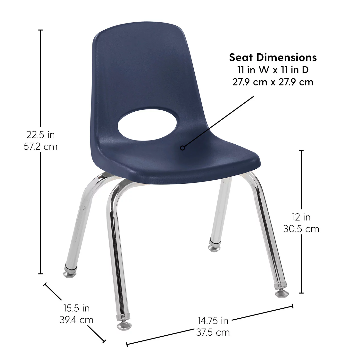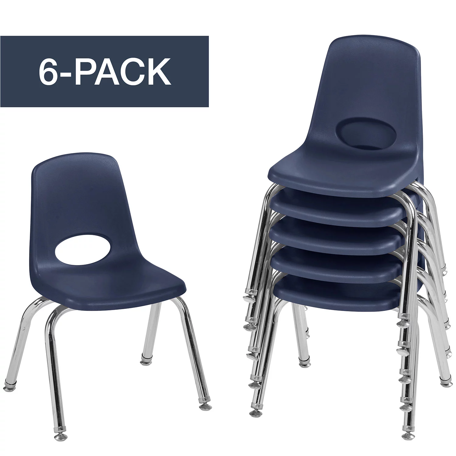FDP 12″ School Stack Chair. Stacking Student Seat with Chromed Steel Legs and Ball Glides; for in-Home Learning or Classroom - Navy (6-Pack). 10359-NV