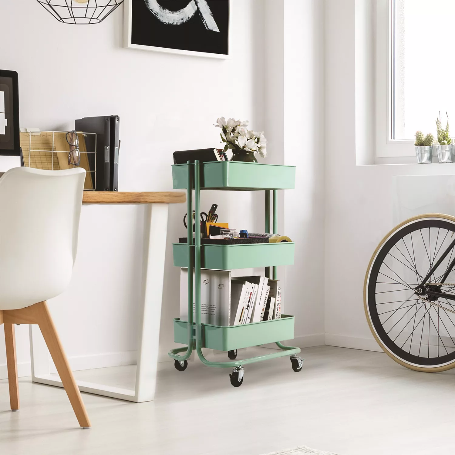 Seville Classics 3-Tier UltraDurable Commerical-Grade Heavy-Duty NSF-Certified Service Utility Storage Cart. 16.7″ W. Green
