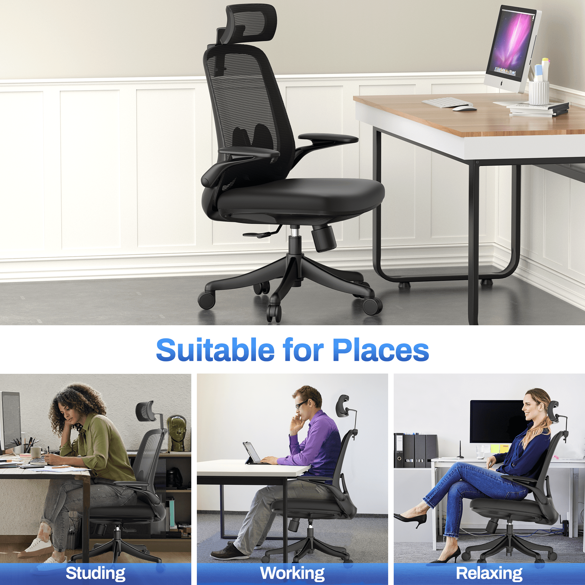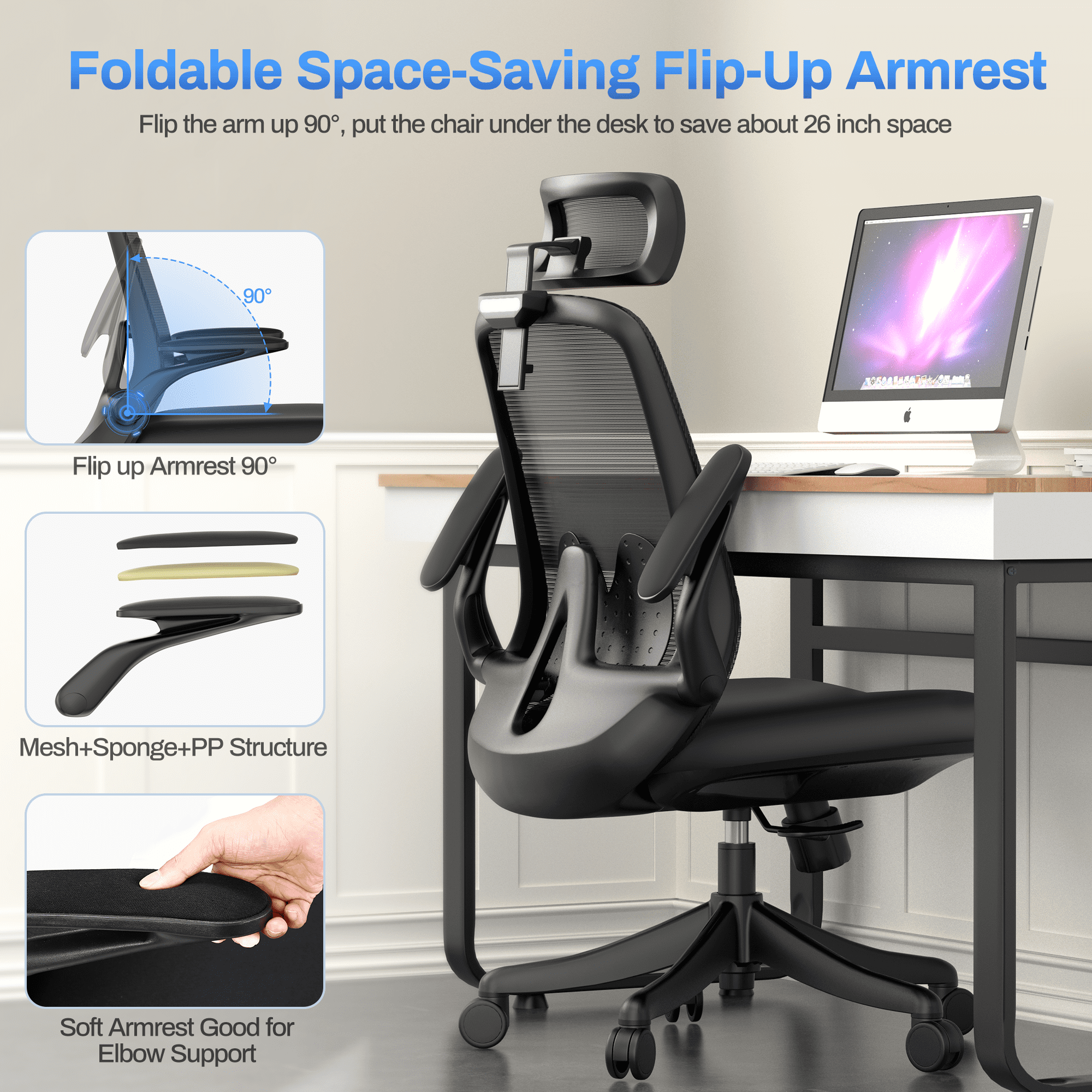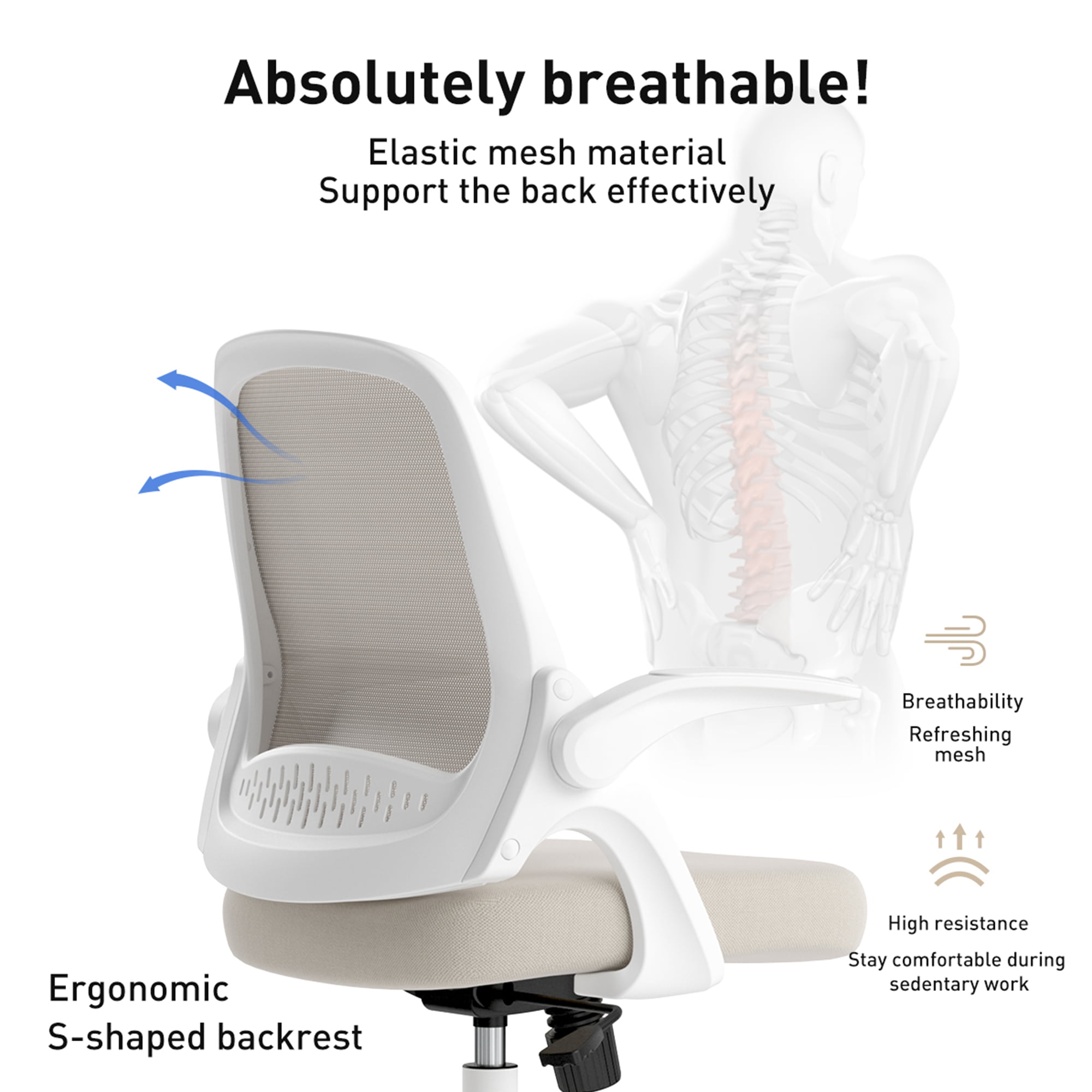Ergonomic Office Chair. Coolhut Breathable Mesh Desk Chair with Headrest and Flip-up Arms (White)
