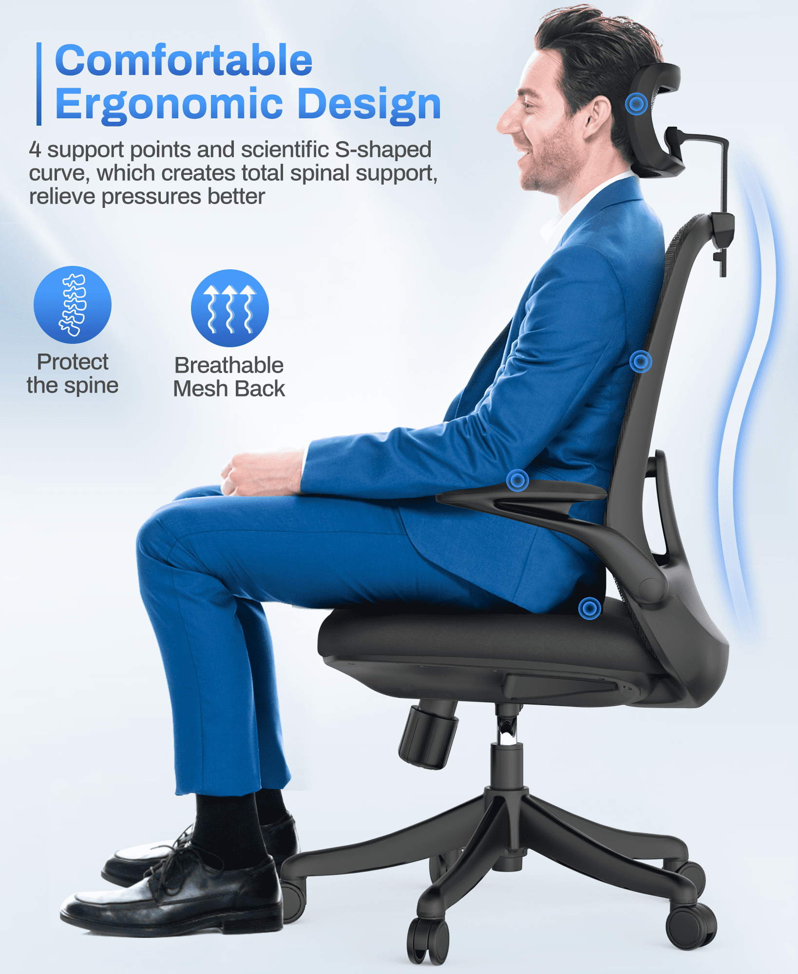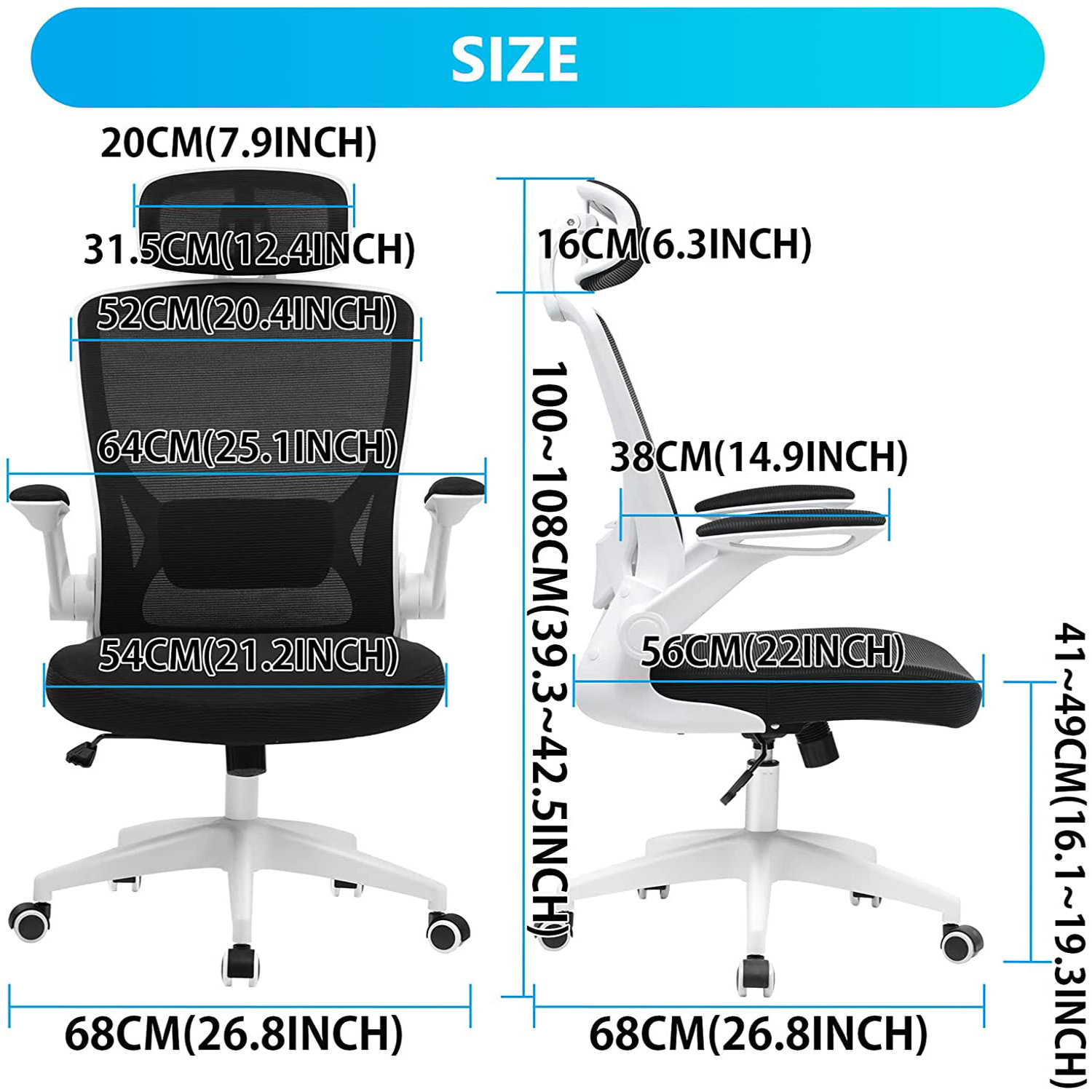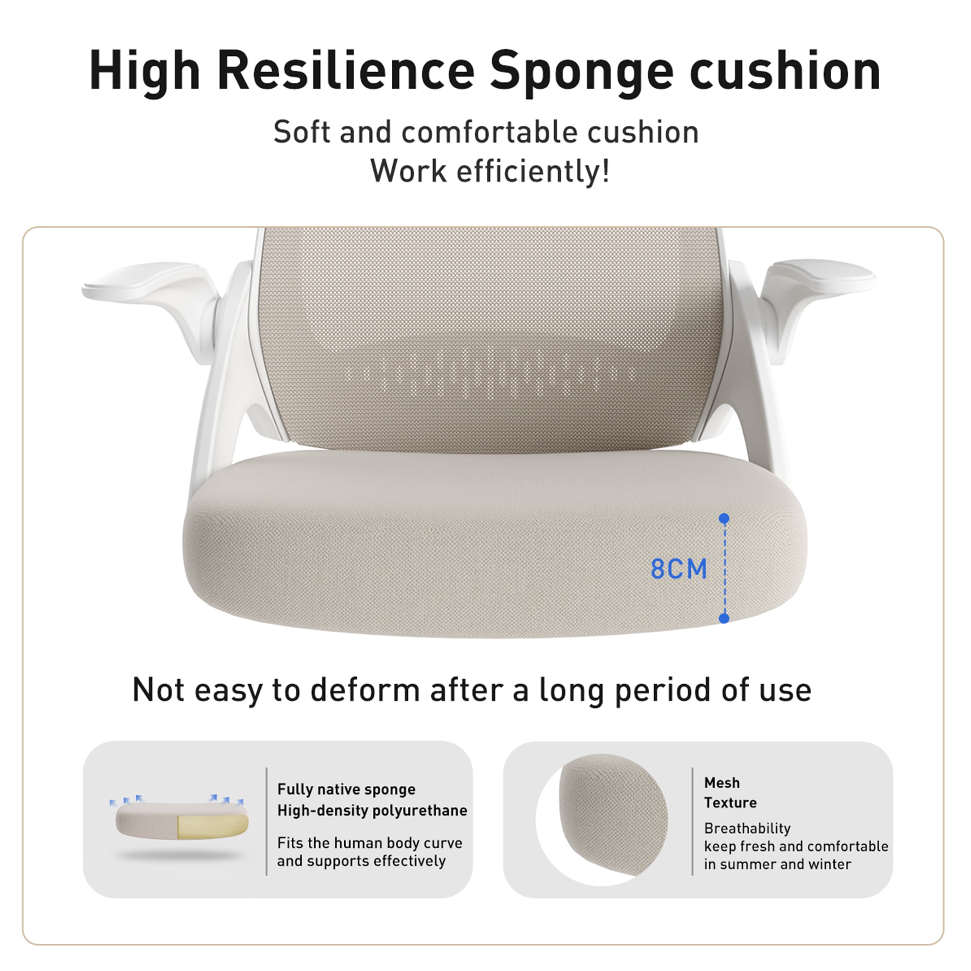Ergonomic Office Chair. Coolhut Breathable Mesh Desk Chair with Headrest and Flip-up Arms (White)