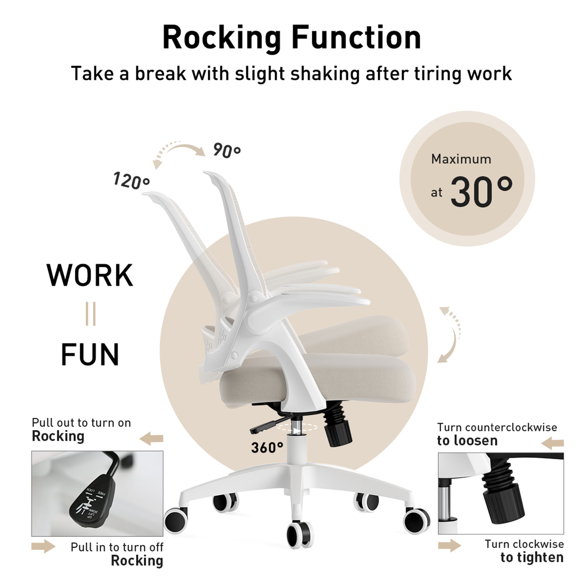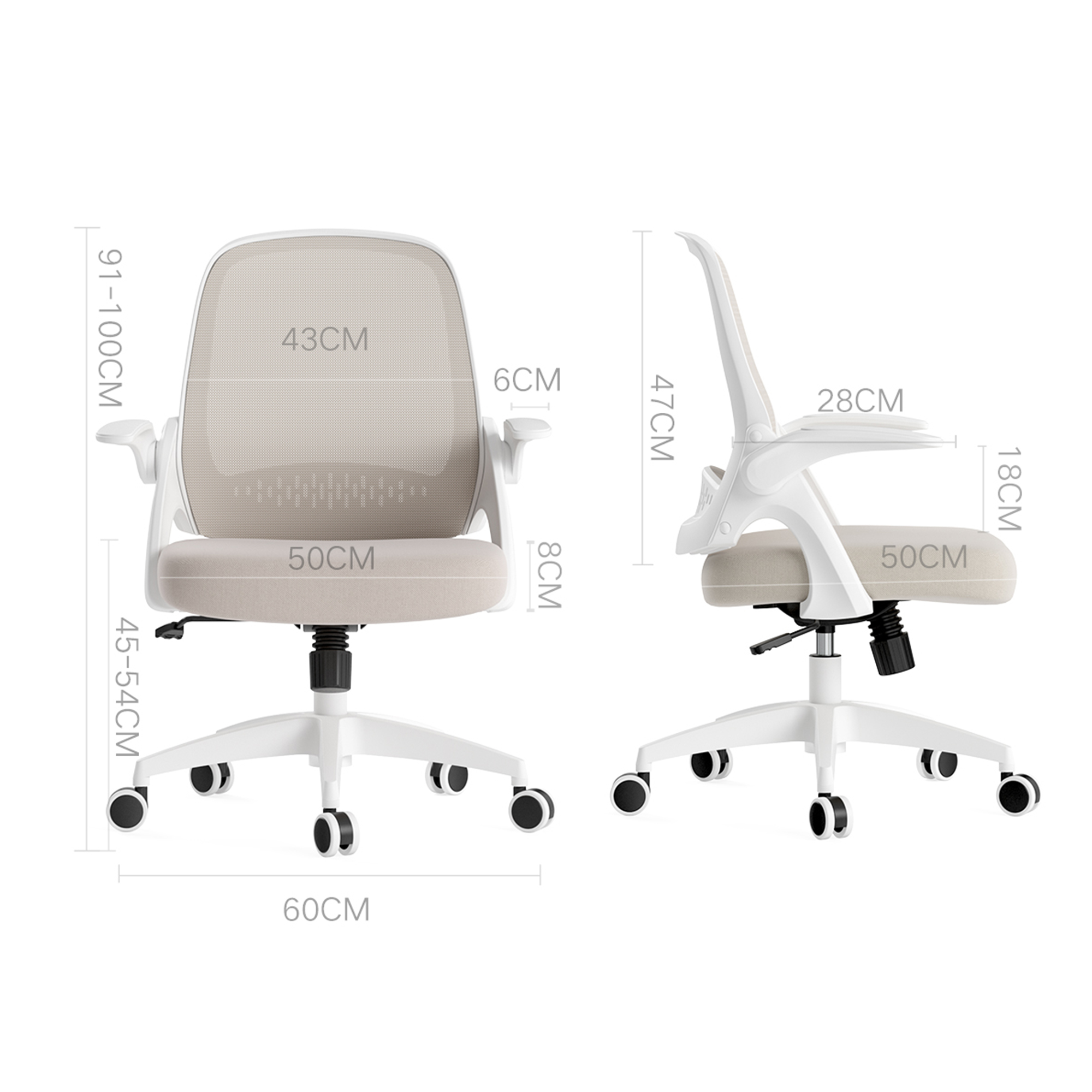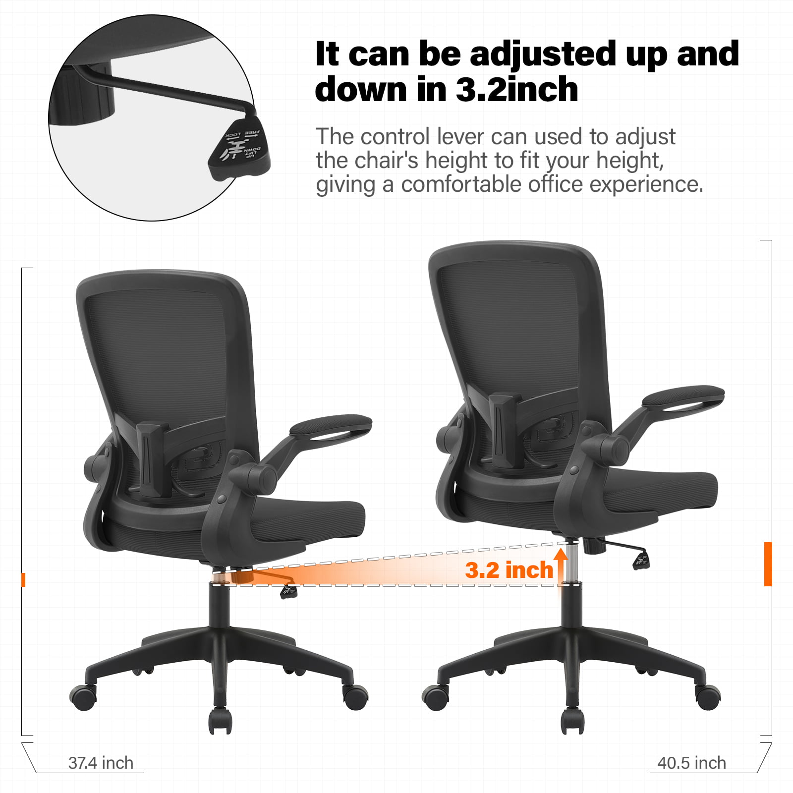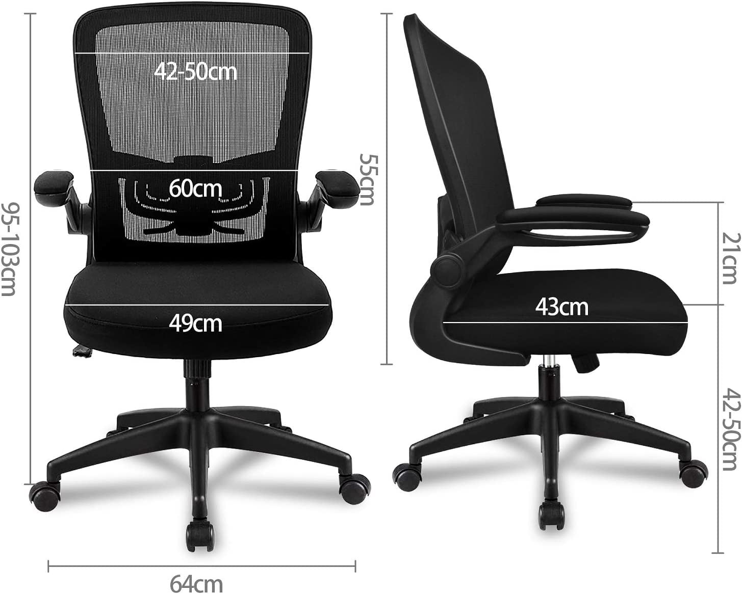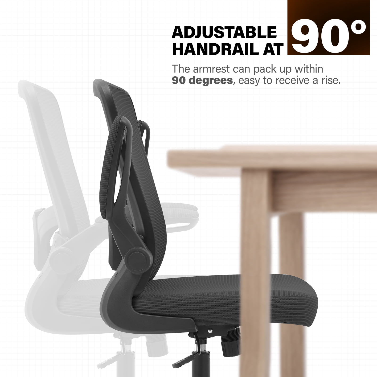 Hbada Office Task Desk Chair Swivel Home Comfort Chairs with Flip-up Arms and Adjustable Height. grey