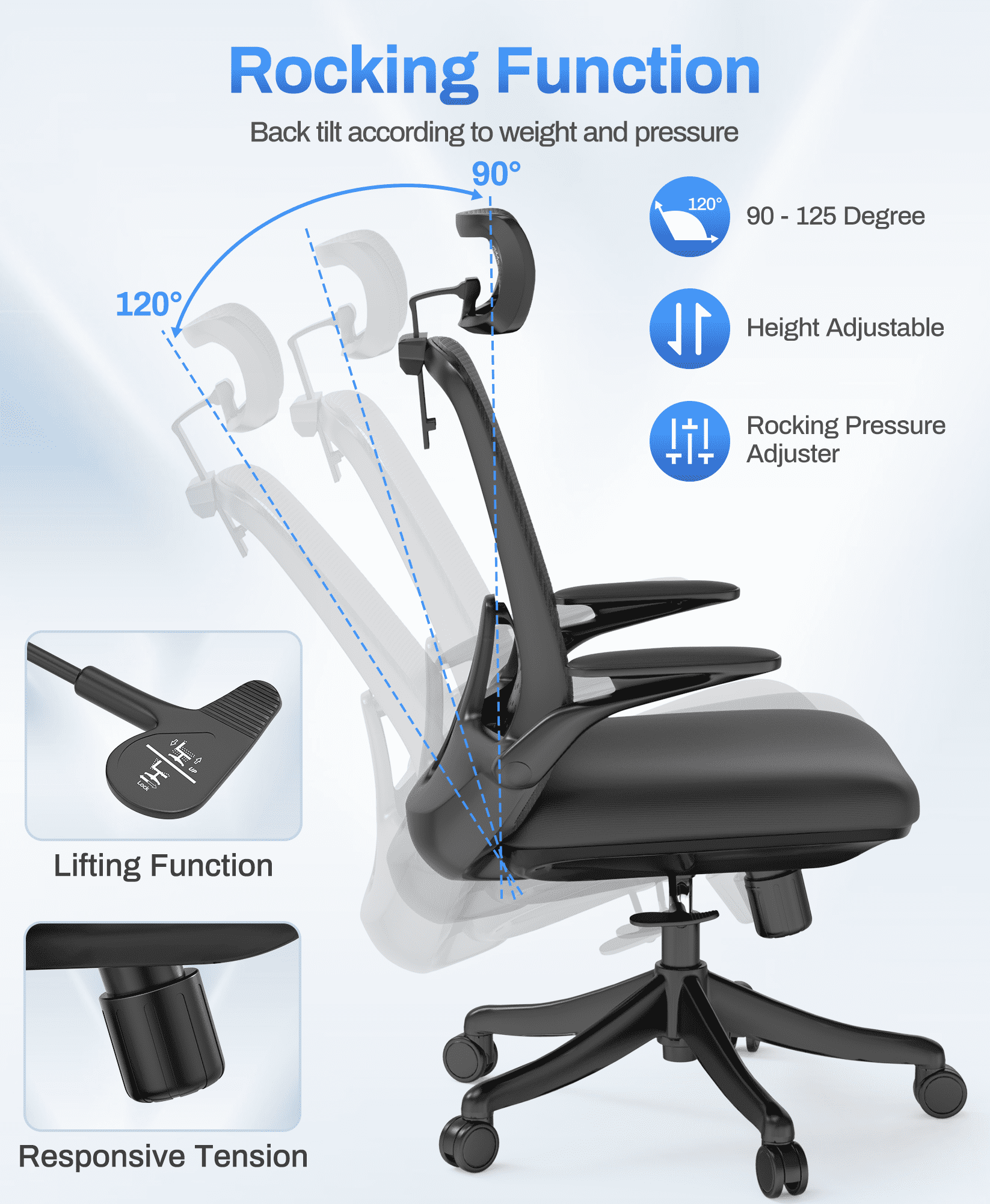 AMZFUN Ergonomic Office Chair Desk Chair with Adjustable Height and Lumbar Support (Black)