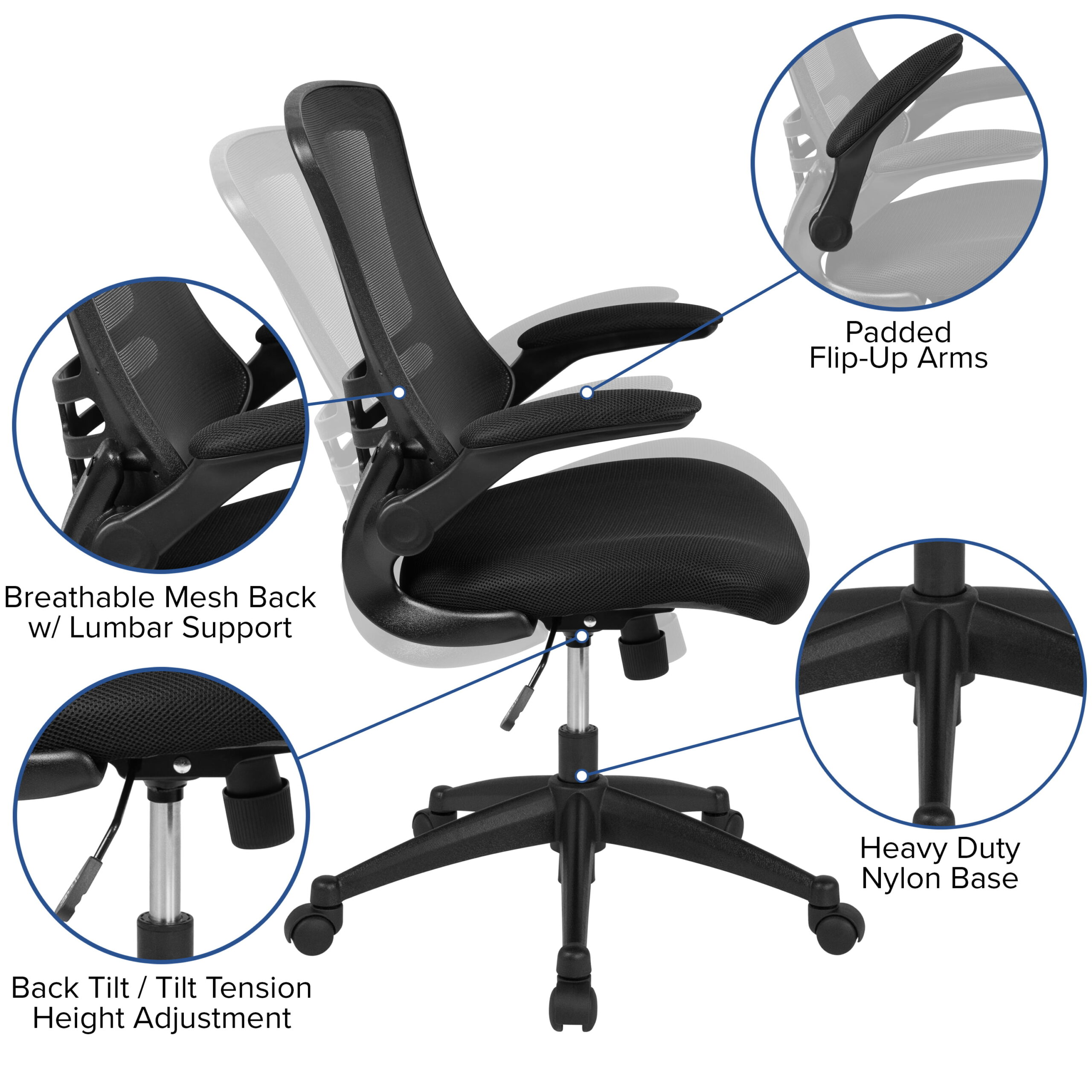 Flash Furniture Kelista Mid-Back Black Mesh Swivel Ergonomic Task Office Chair with Flip-Up Arms. BIFMA Certified