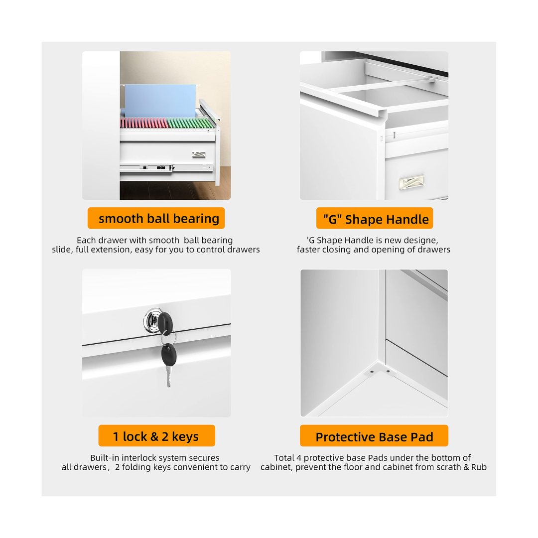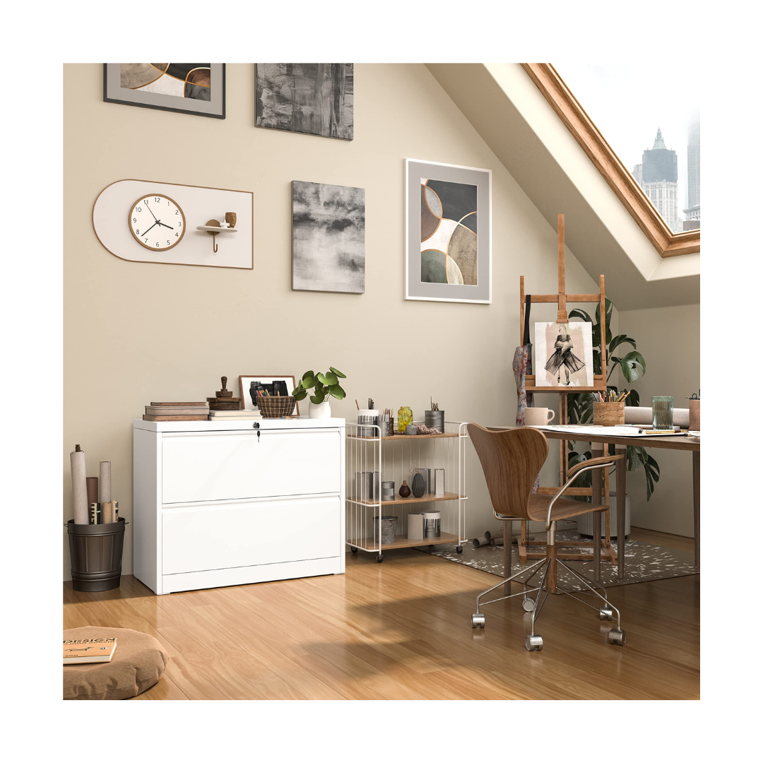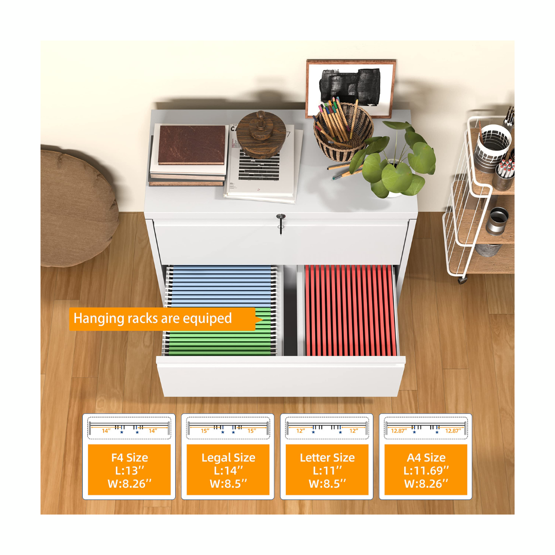 Bonusall Lateral File Cabinet 2 Drawer. Metal Lateral Filing Cabinet with Lock - White