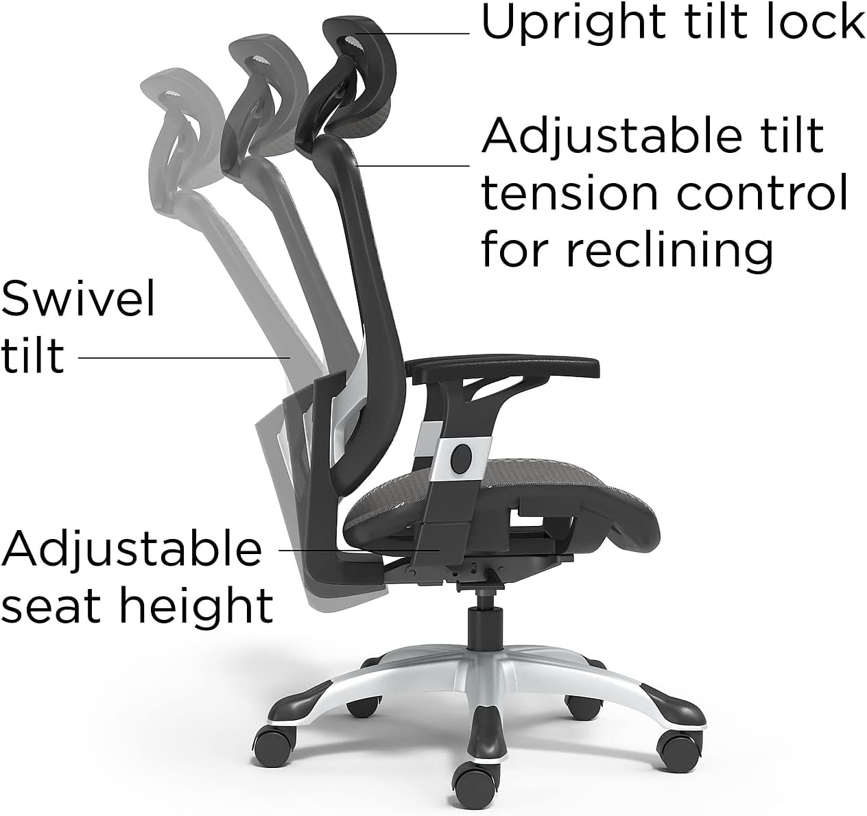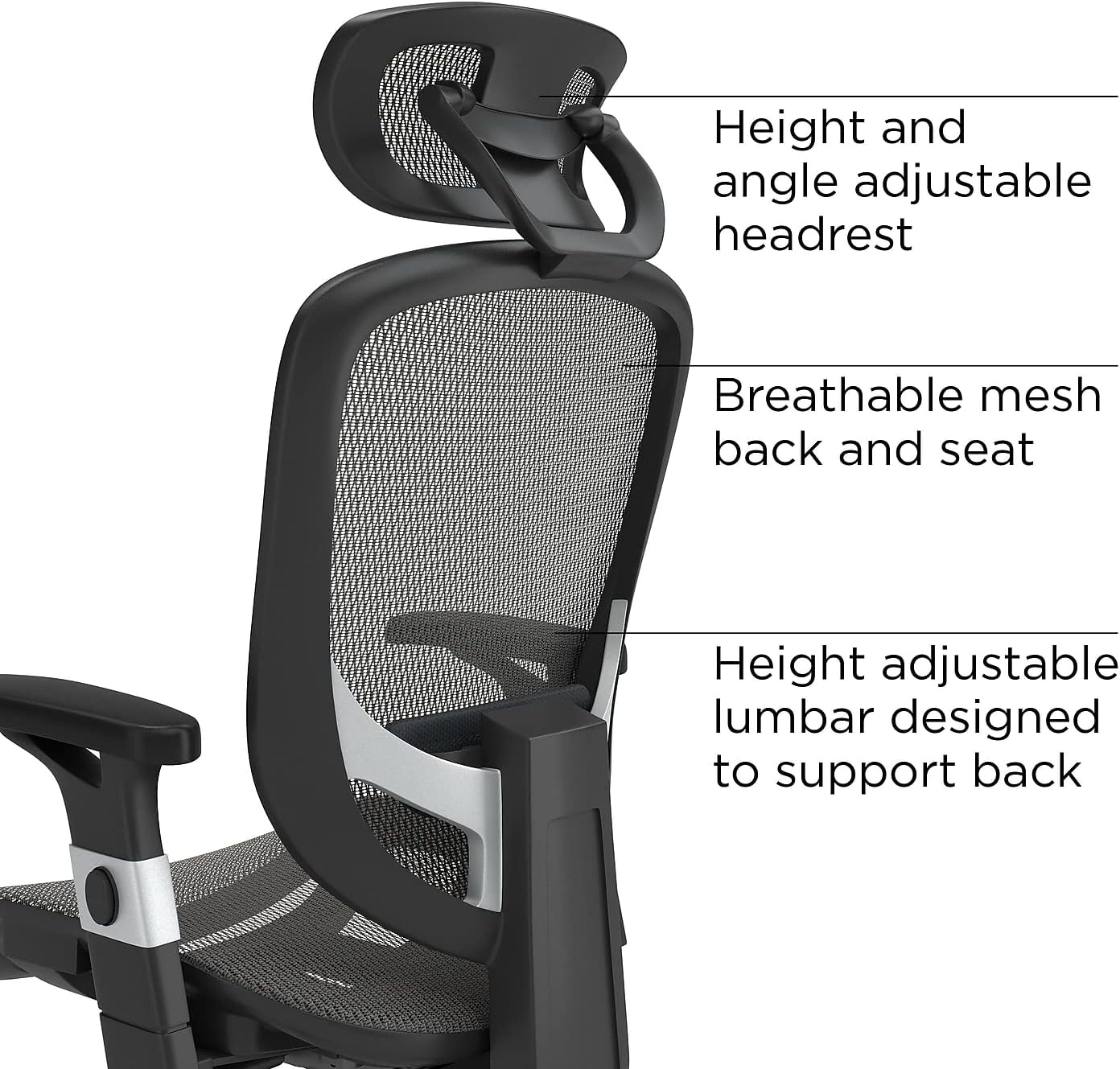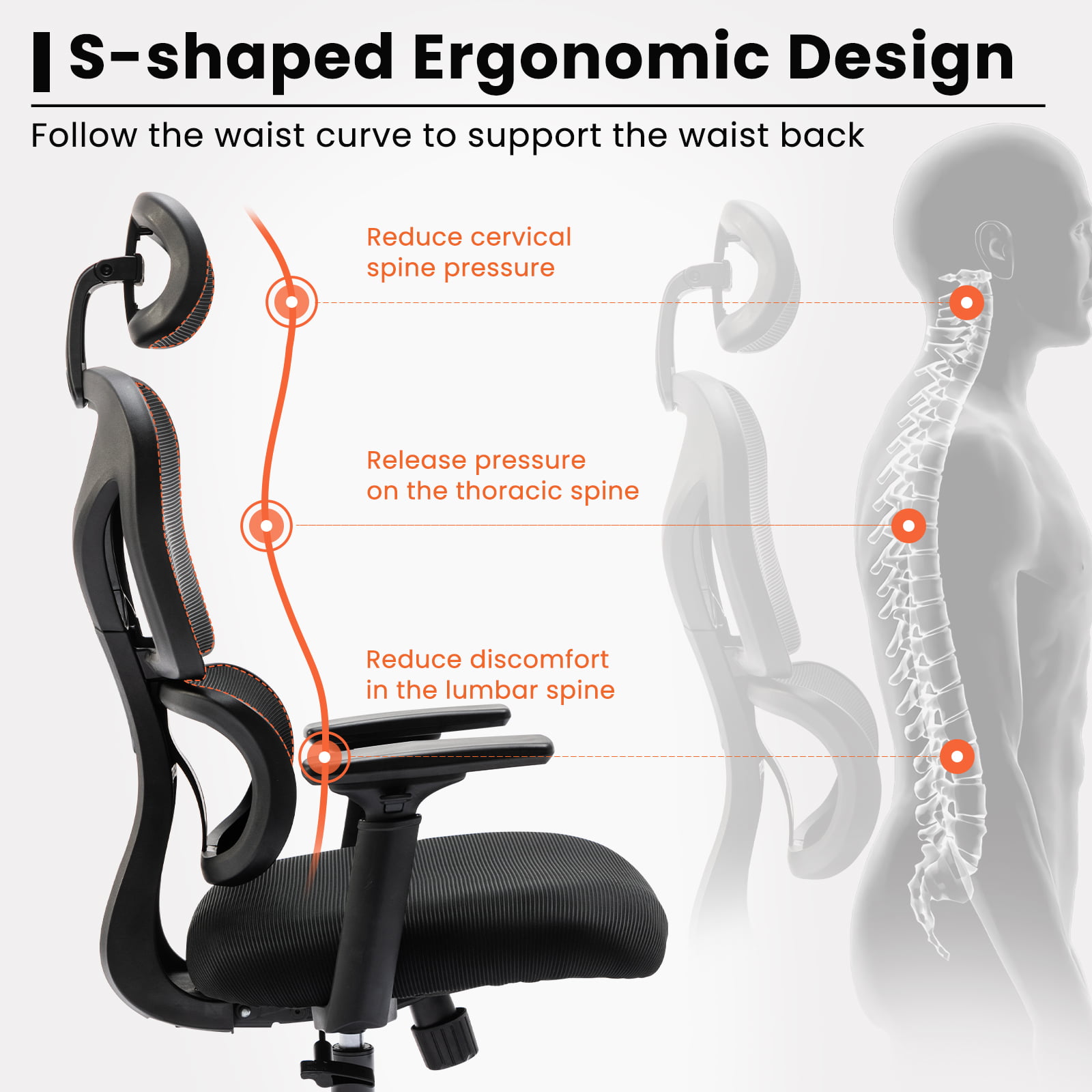 Coolhut Ergonomic Office Chair. High Back Adjustable Computer Desk Chair with Lumbar Support. 300lb. Black