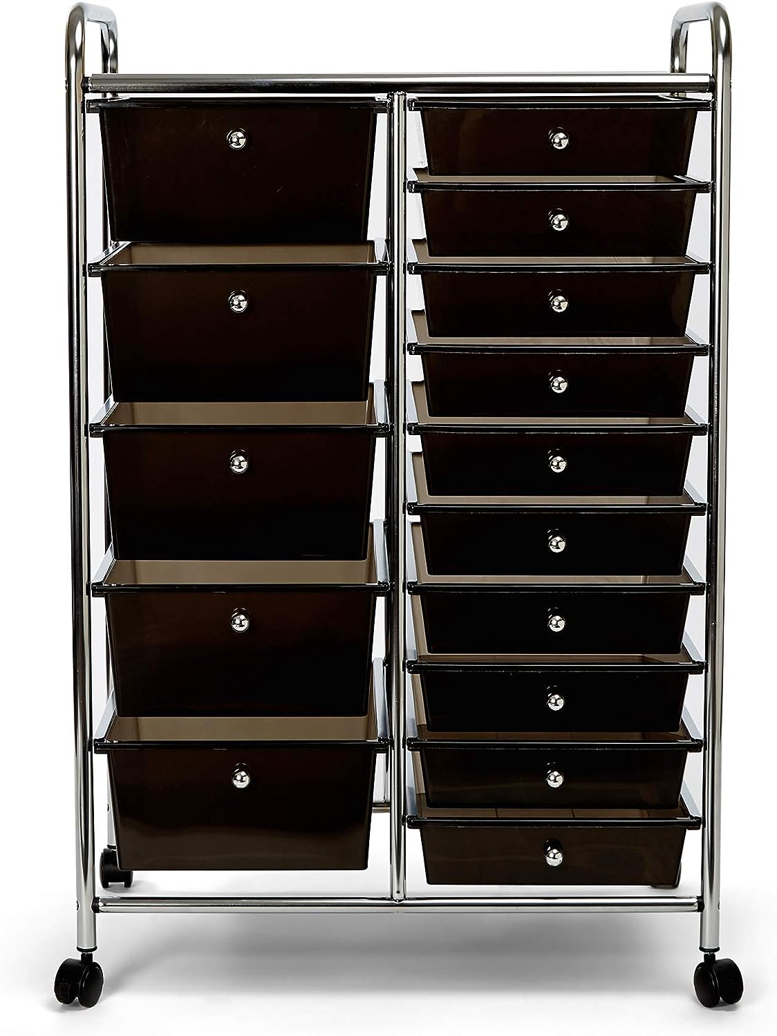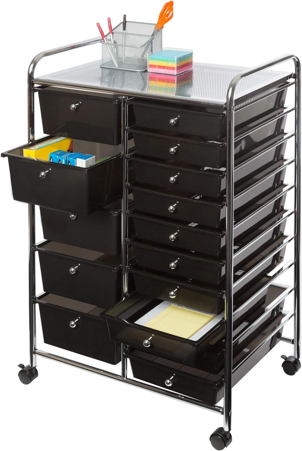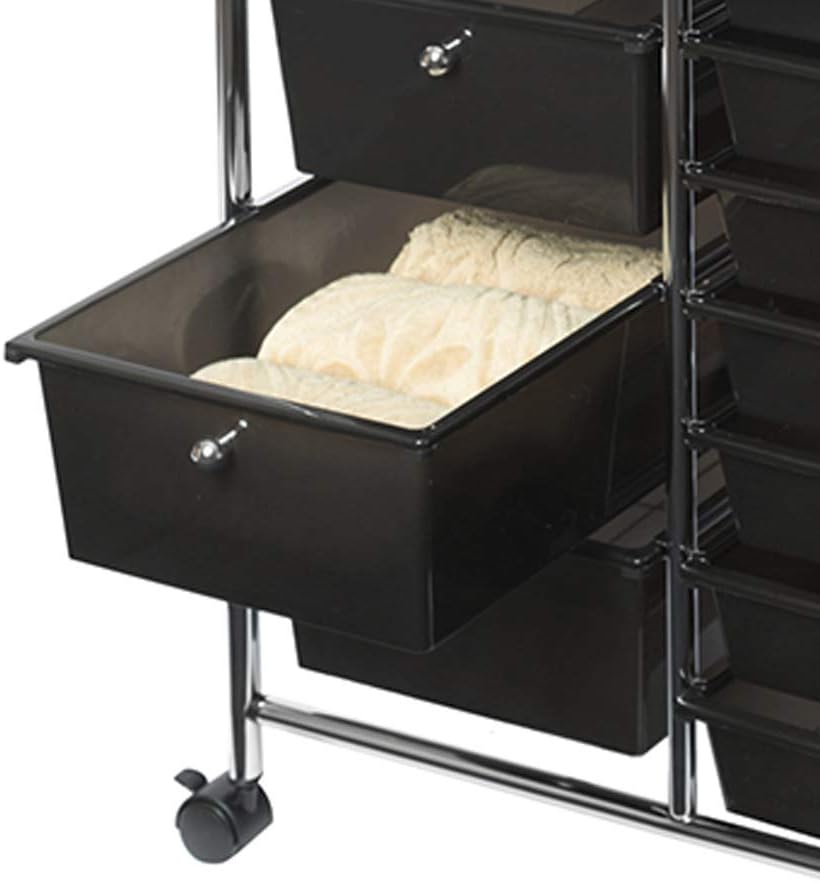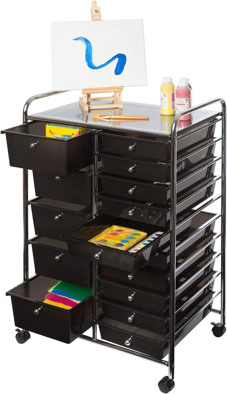 Seville Classics Rolling Utility Organizer Storage Cart for Home Office. School. Classroom. Scrapbook. Hobby. Craft. 15 Drawer. Black