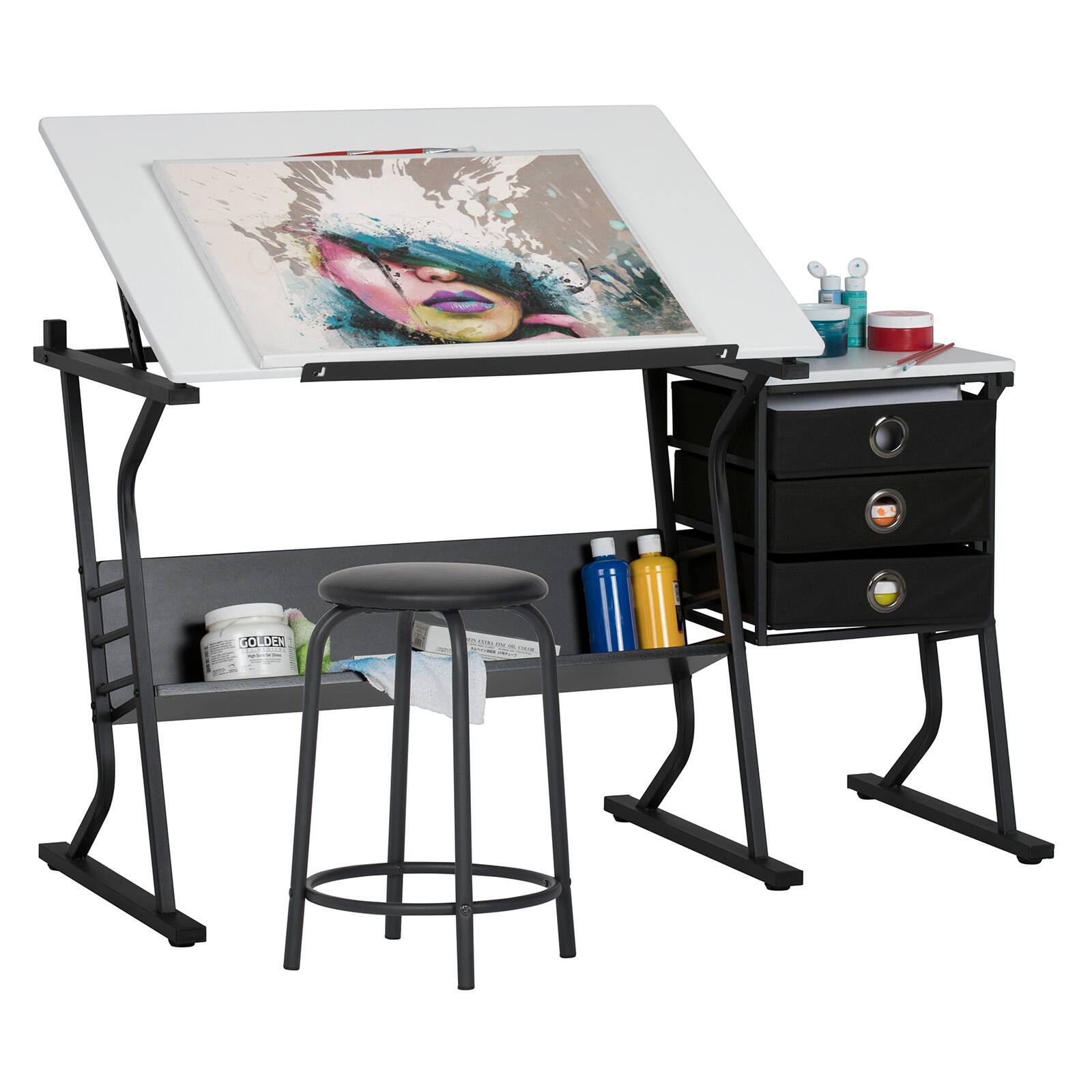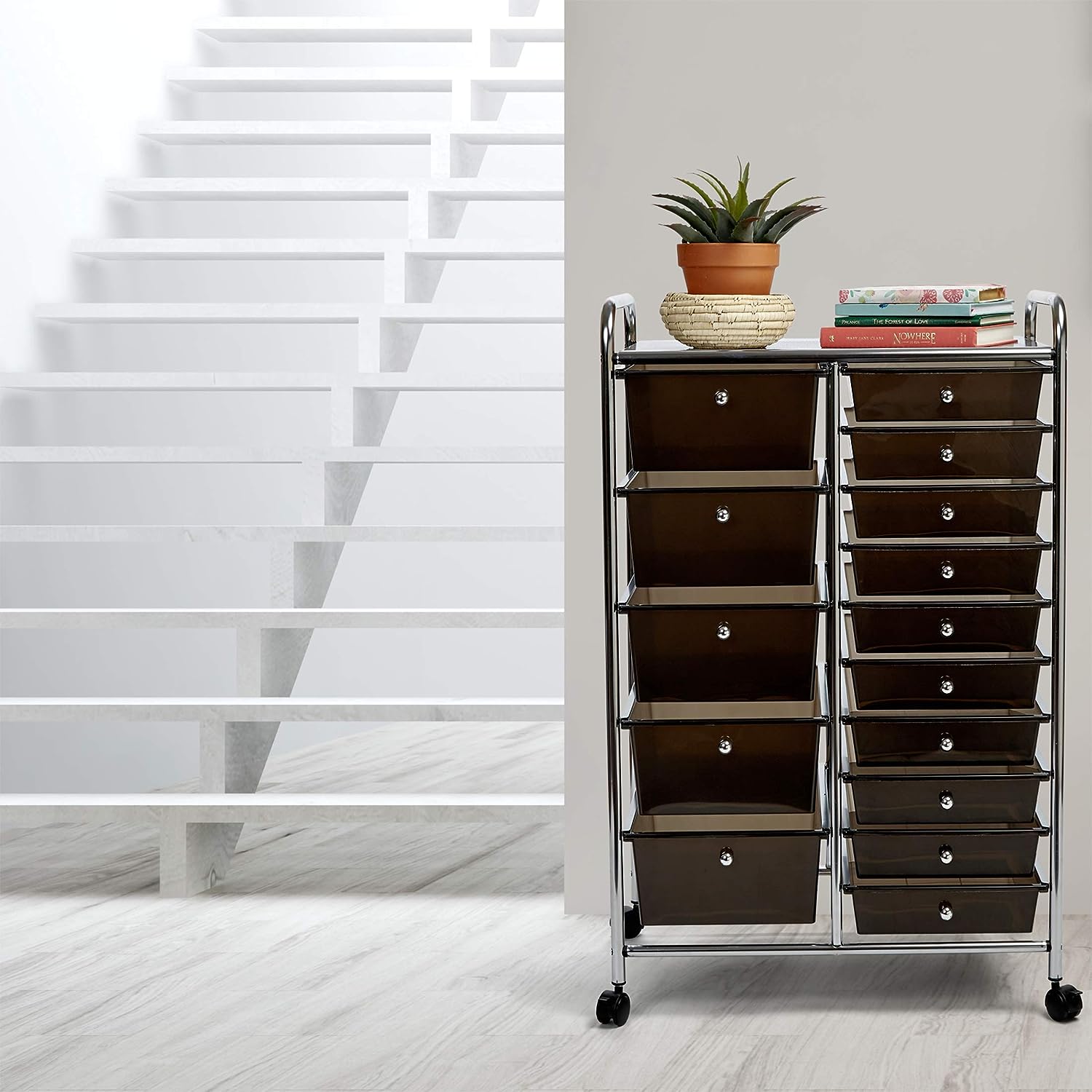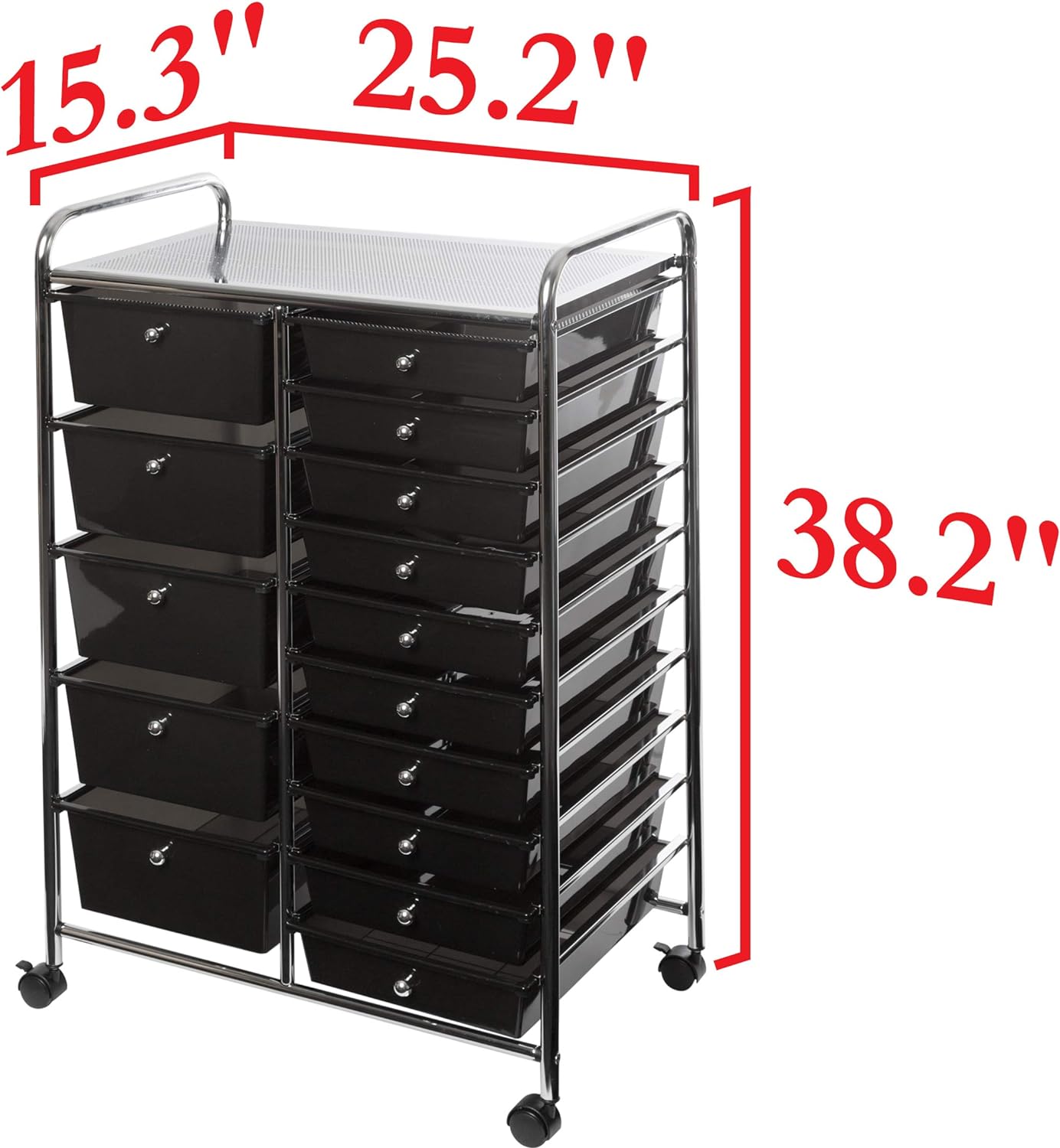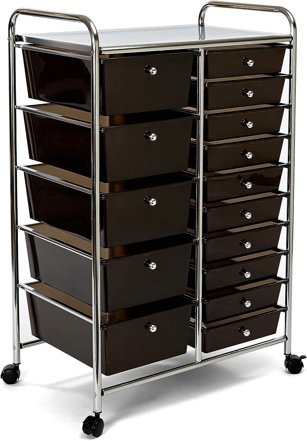 Seville Classics Rolling Utility Organizer Storage Cart for Home Office. School. Classroom. Scrapbook. Hobby. Craft. 15 Drawer. Black