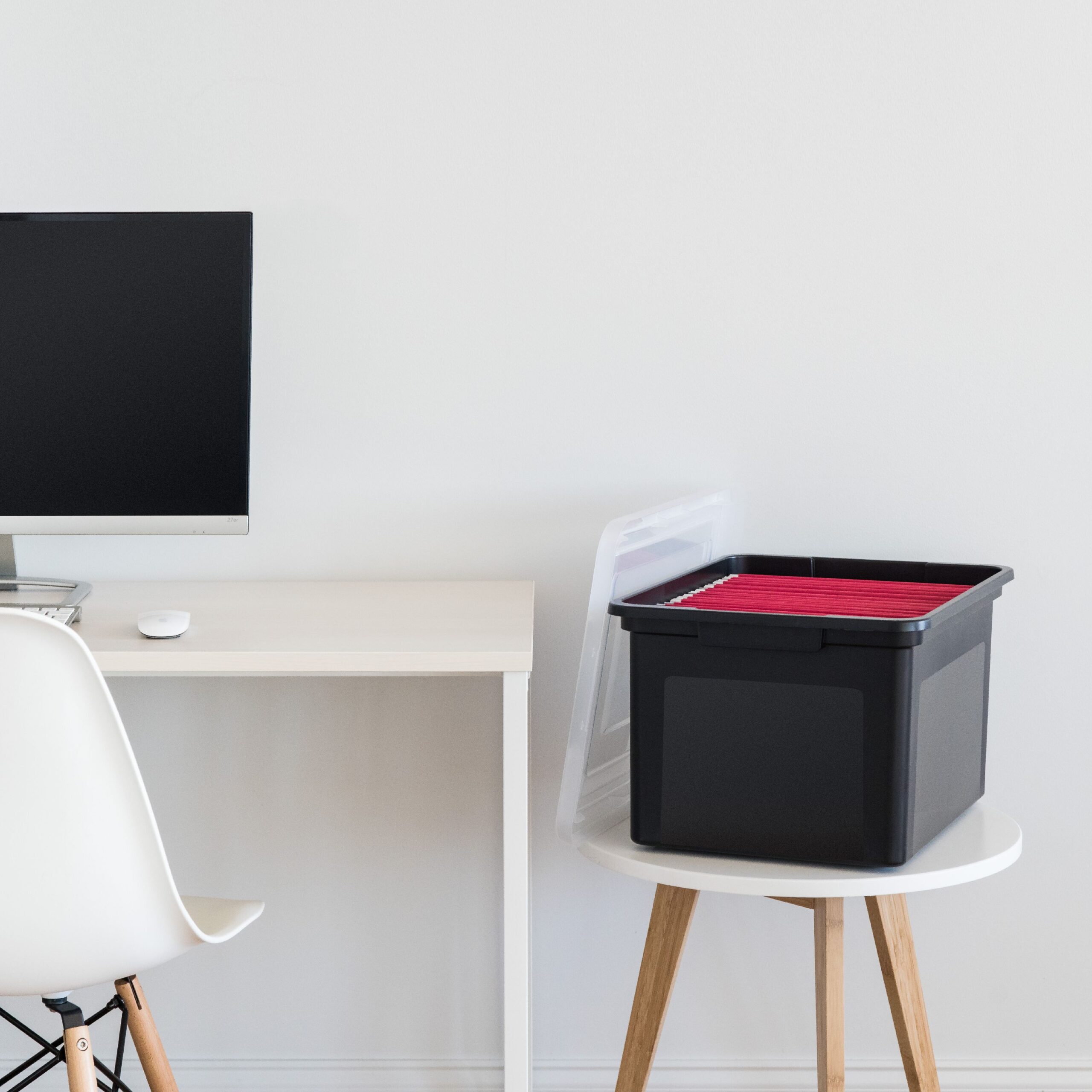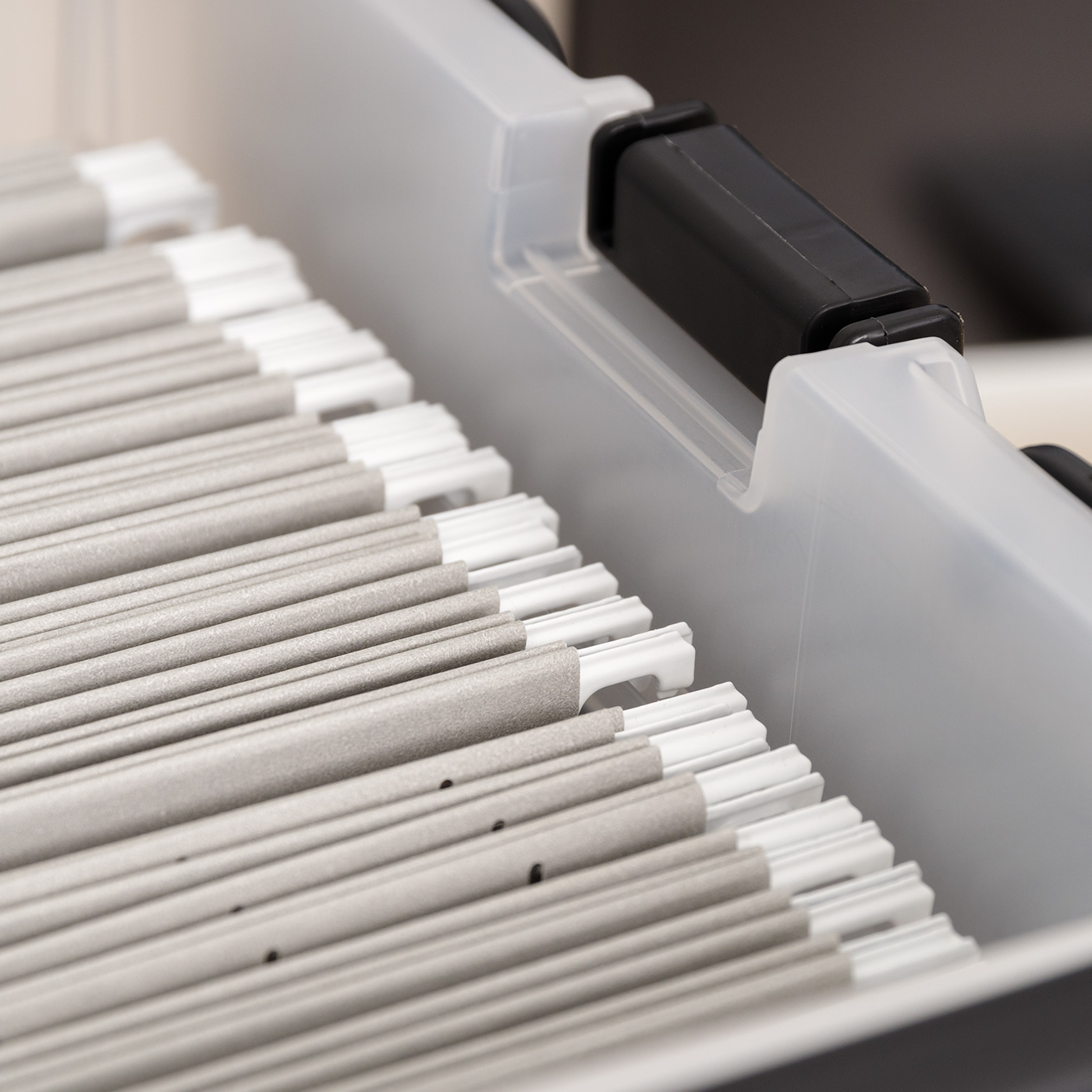 IRIS USA Letter Size Portable Wing-Lid File Box with Handles. Black Lid. Clear Body. Set of 4