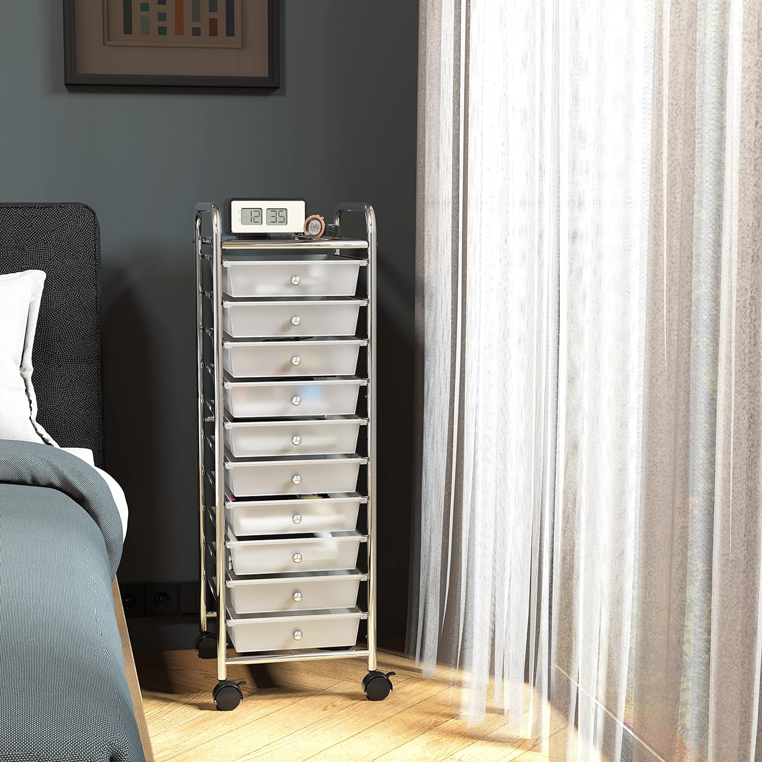 Honey-Can-Do Rolling Storage Cart and Organizer with 12 Plastic Drawers