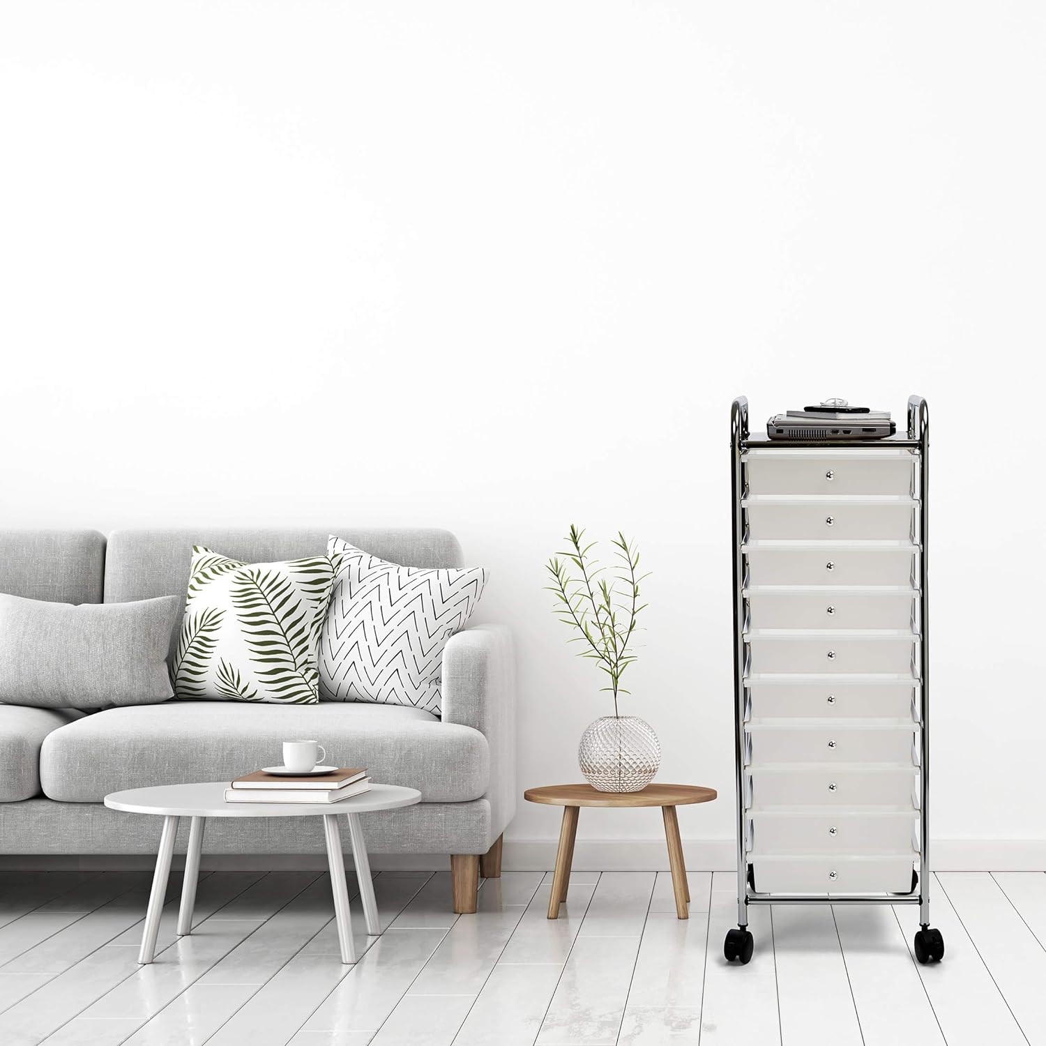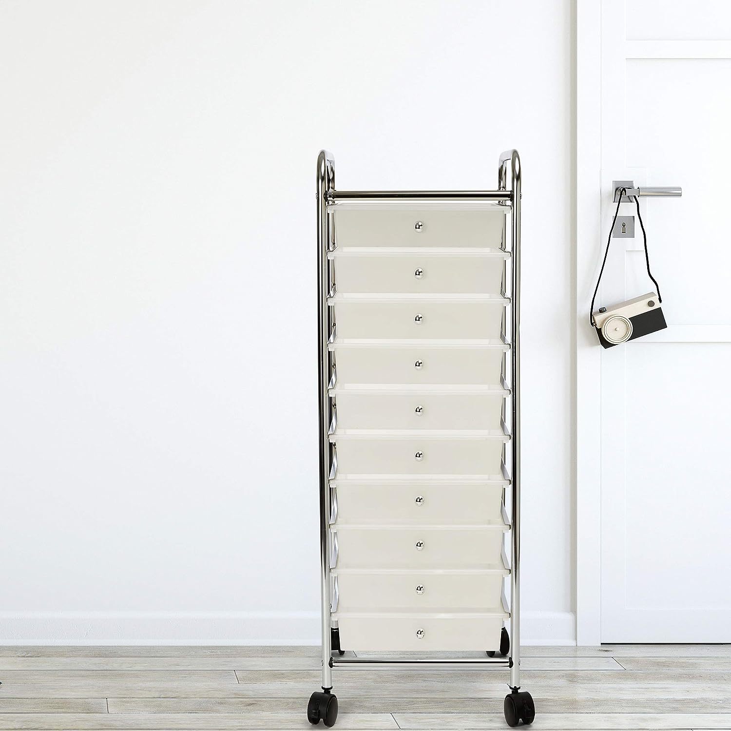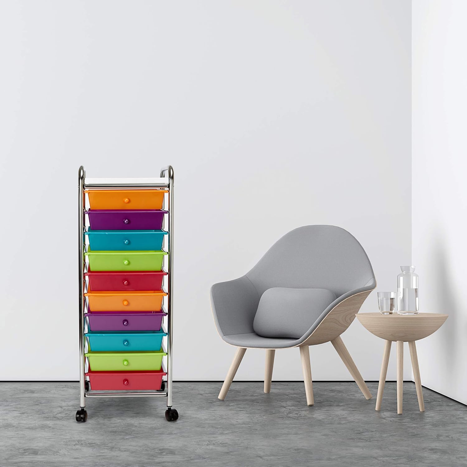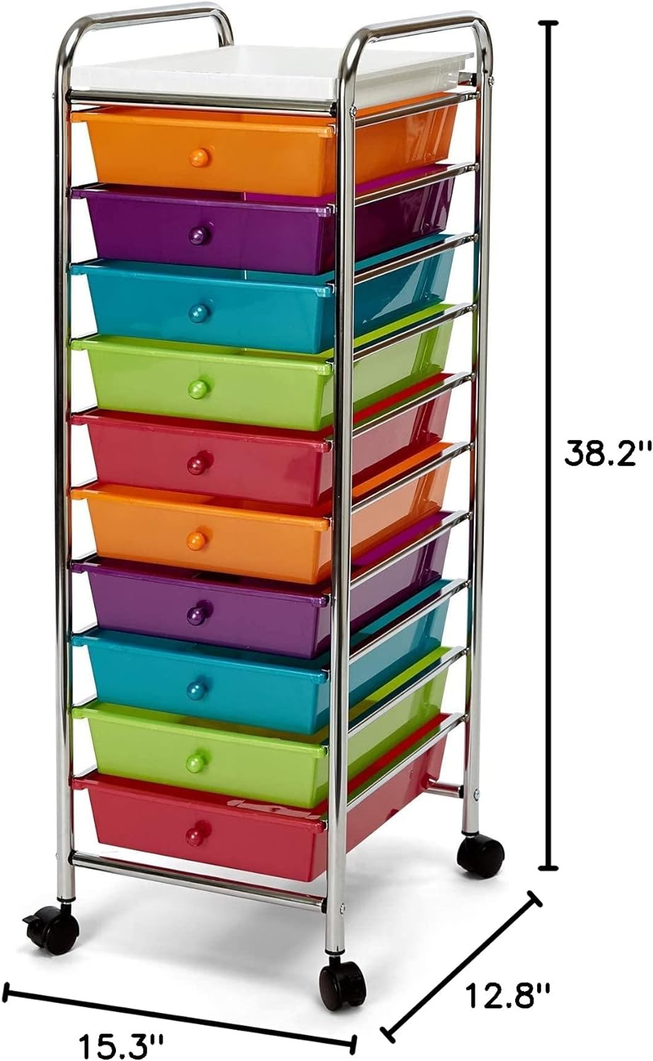 Seville Classics 10-Drawer Multipurpose Mobile Rolling Utility Storage Organizer with Tray Cart. Multicolor (Pearl)