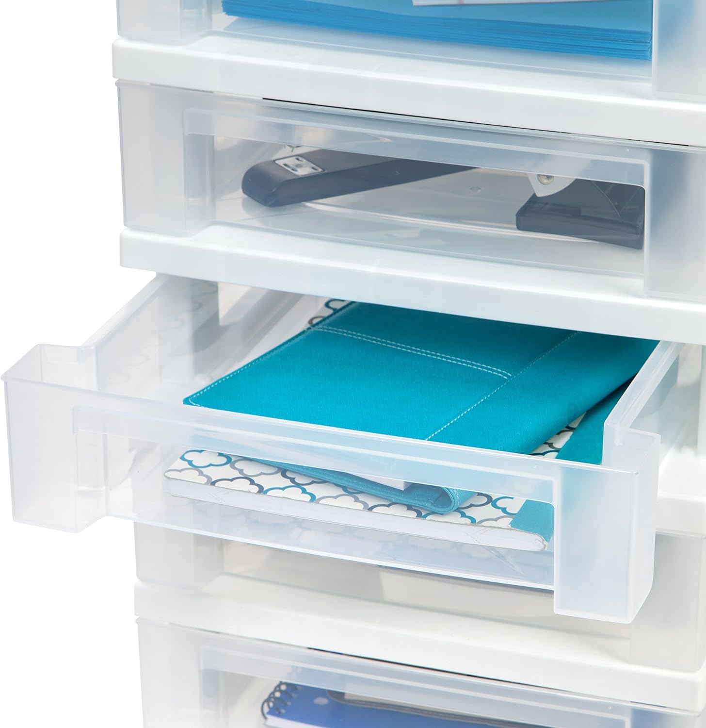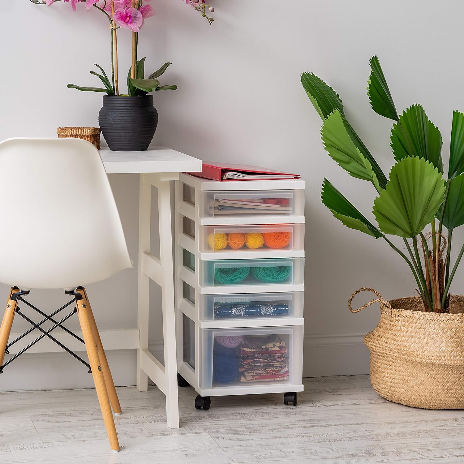 IRIS USA Craft Plastic Organizers and Storage. Rolling Storage Cart for Classroom Supplies. Storage Organizer for Art Supplies. Drawer Top Organizer for Small Parts. 5 Drawers. White