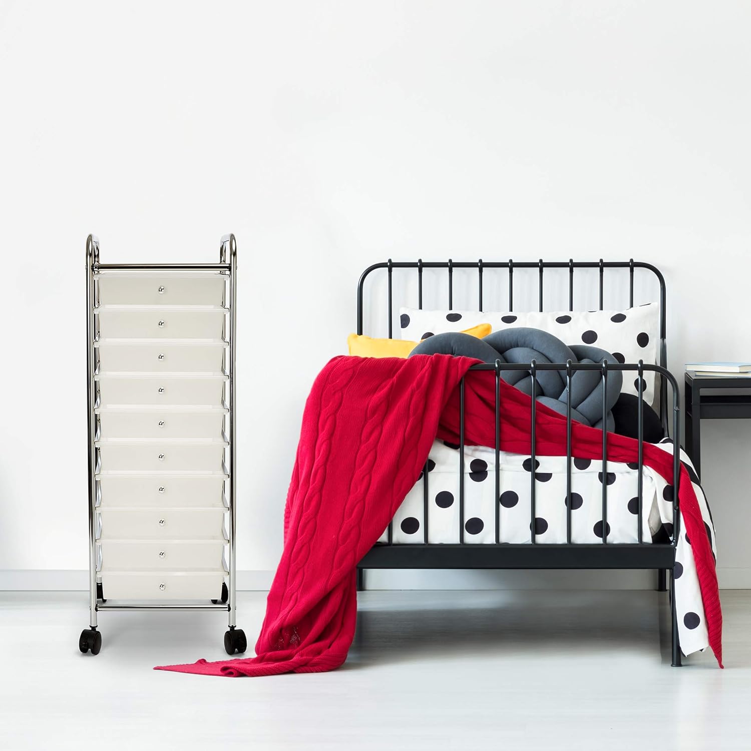 IRIS USA 10 Drawer Rolling Storage Cart with Drawers with Organizer Top. Black