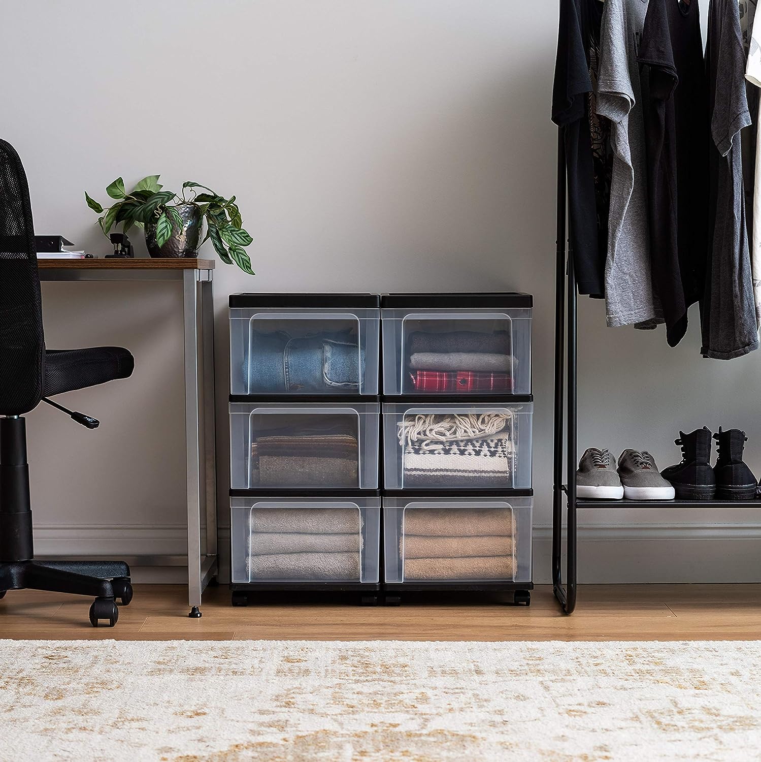 IRIS USA 2 Pack 3 Drawer Plastic Organizers and Storage. 4 Drawer. Black