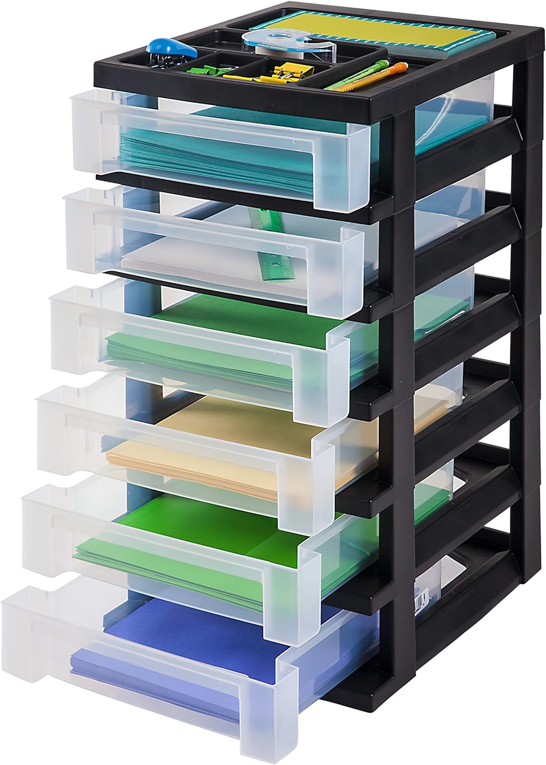 IRIS OHYAMA USA Craft Organizers and Storage. Rolling Storage Cart for Classroom Supplies. Storage Organizer for Art Supplies. Drawer Top Organizer for Small Parts. 6 Drawers. Black