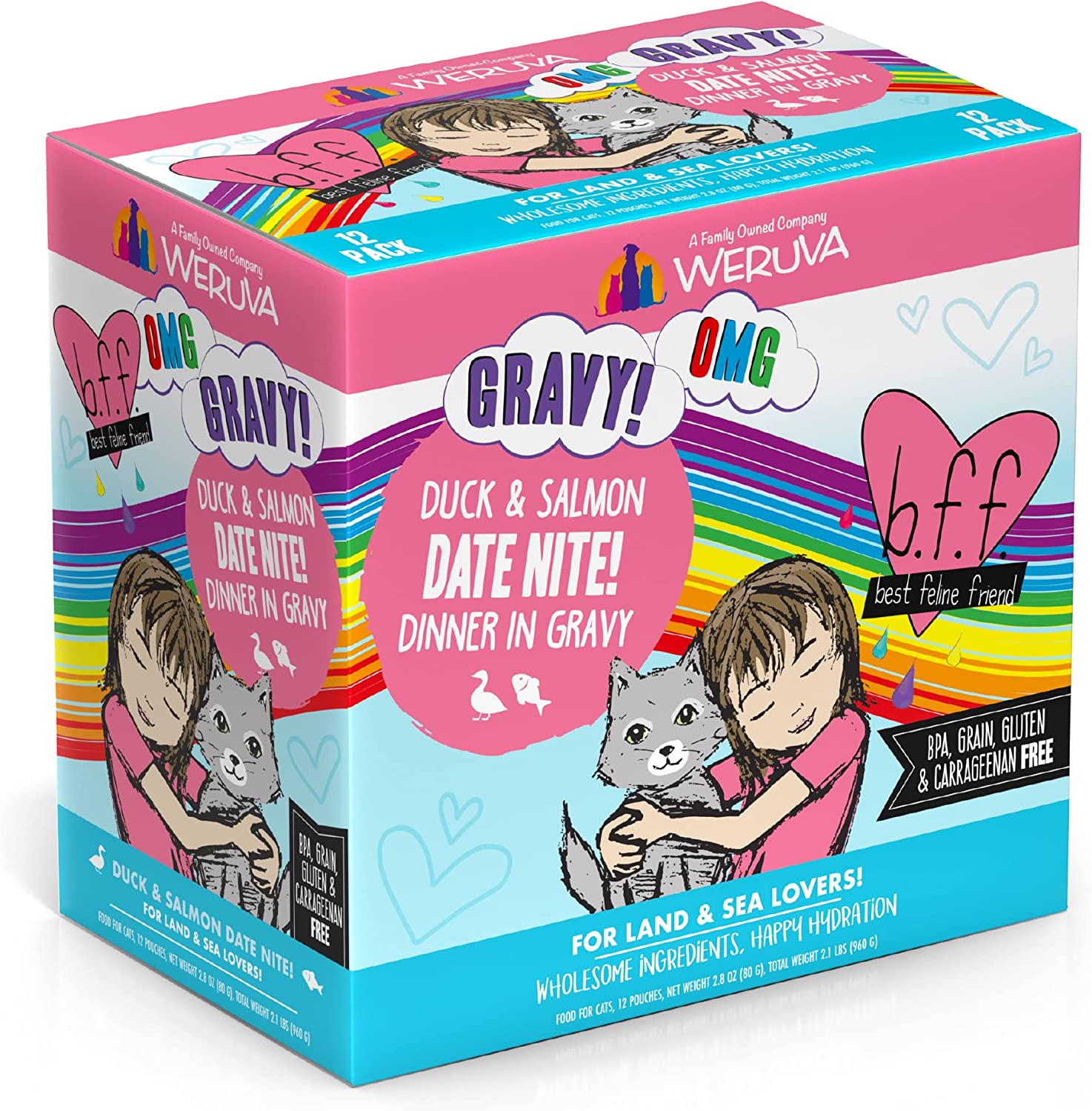 Weruva B.F.F. Omg - Best Feline Friend Oh My Gravy!. Date Nite! With Duck & Salmon In Gravy Cat Food. 2.8Oz Pouch (Pack Of 12)